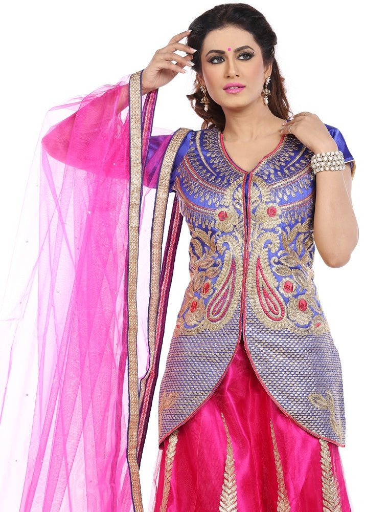Magenta Pink Embroidered Georgette Kurta Sharara Set with Heavy Thread Zari Work