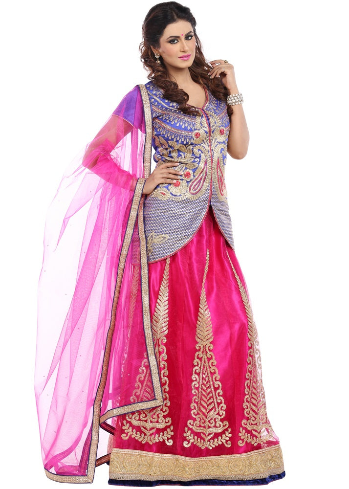 Chhabra 555 Rani Pink Sequin Embellished Crop-Top Palazzo Set with Jasmine style Cape Sleeves