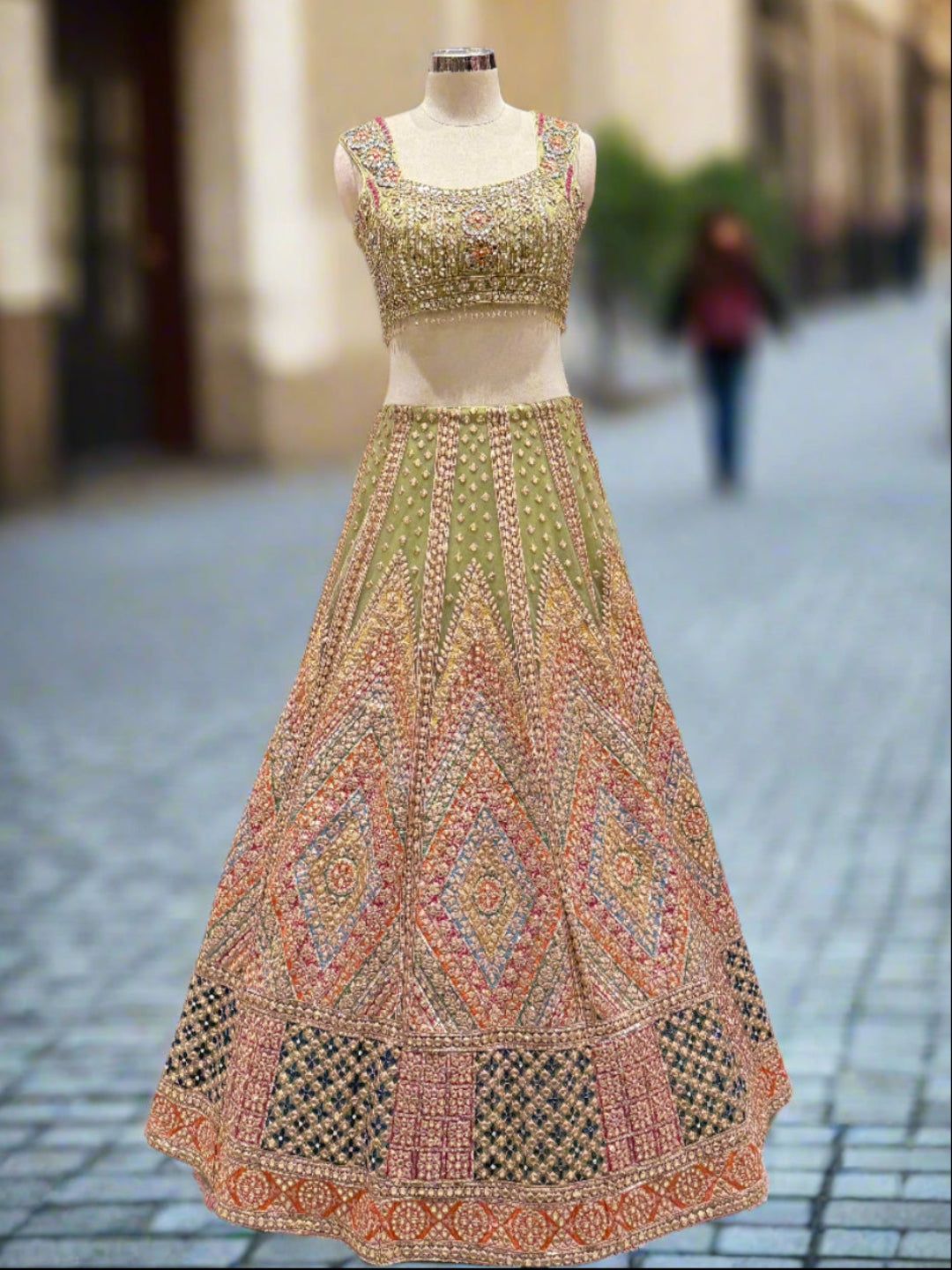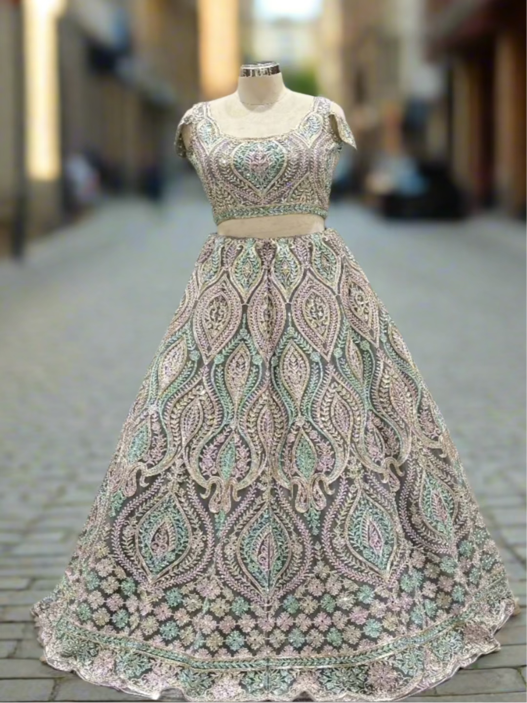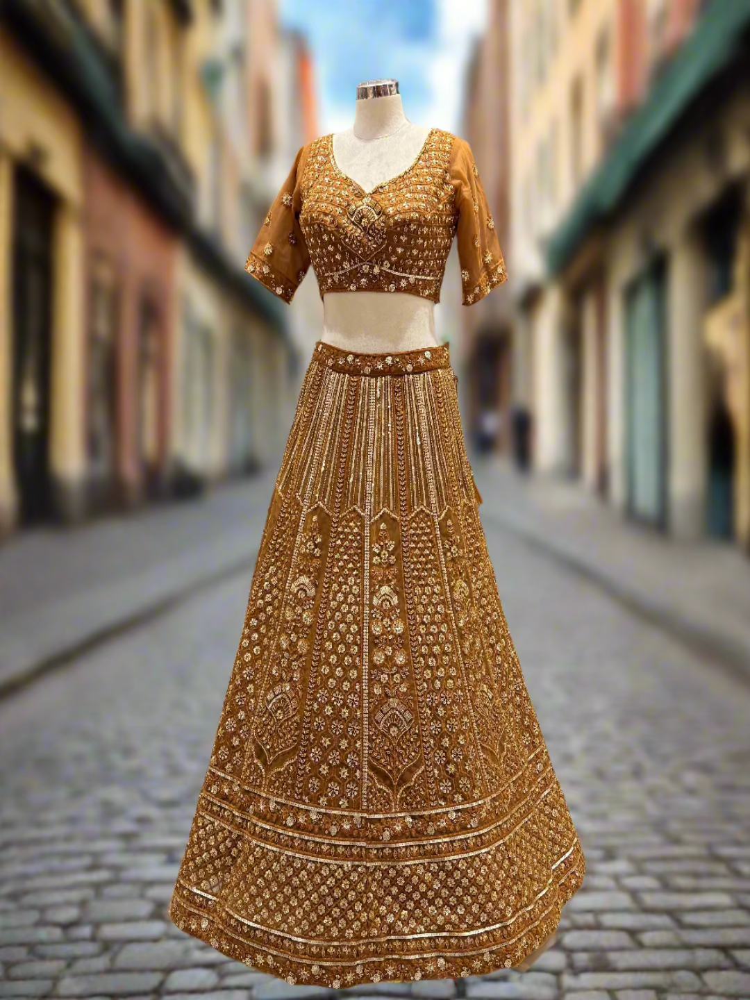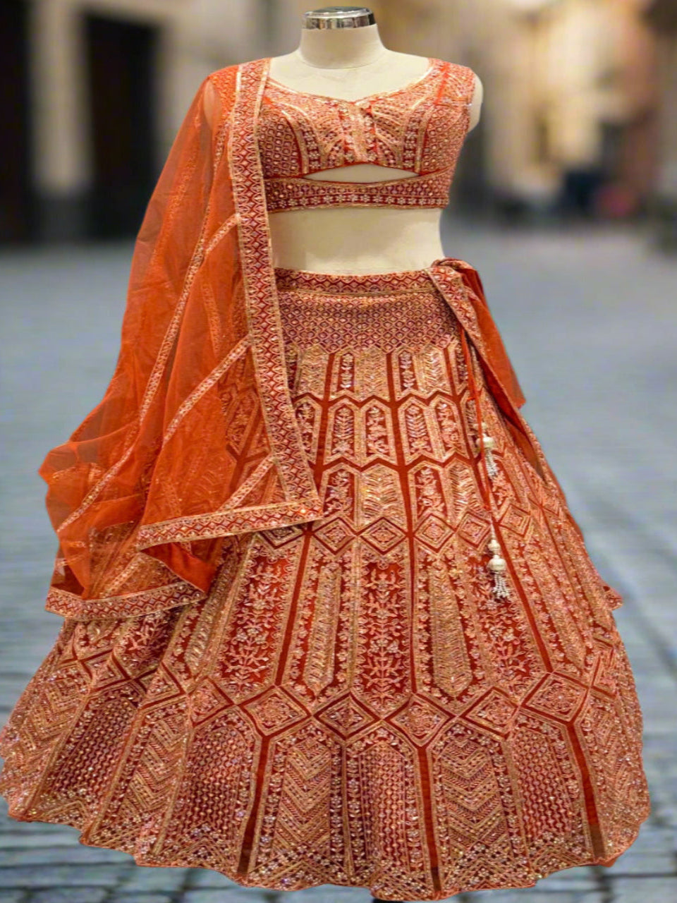 From intricately embroidered zari lehengas to contemporary mirror work and sequin lehenga sets, each piece is crafted in luxurious fabrics like silk, velvet, georgette, net, and organza. Whether you're looking for a bridal lehenga choli, a ready-to-wear lehenga for festive occasions, or a trendy Indo-western lehenga, we have something for every style and silhouette.