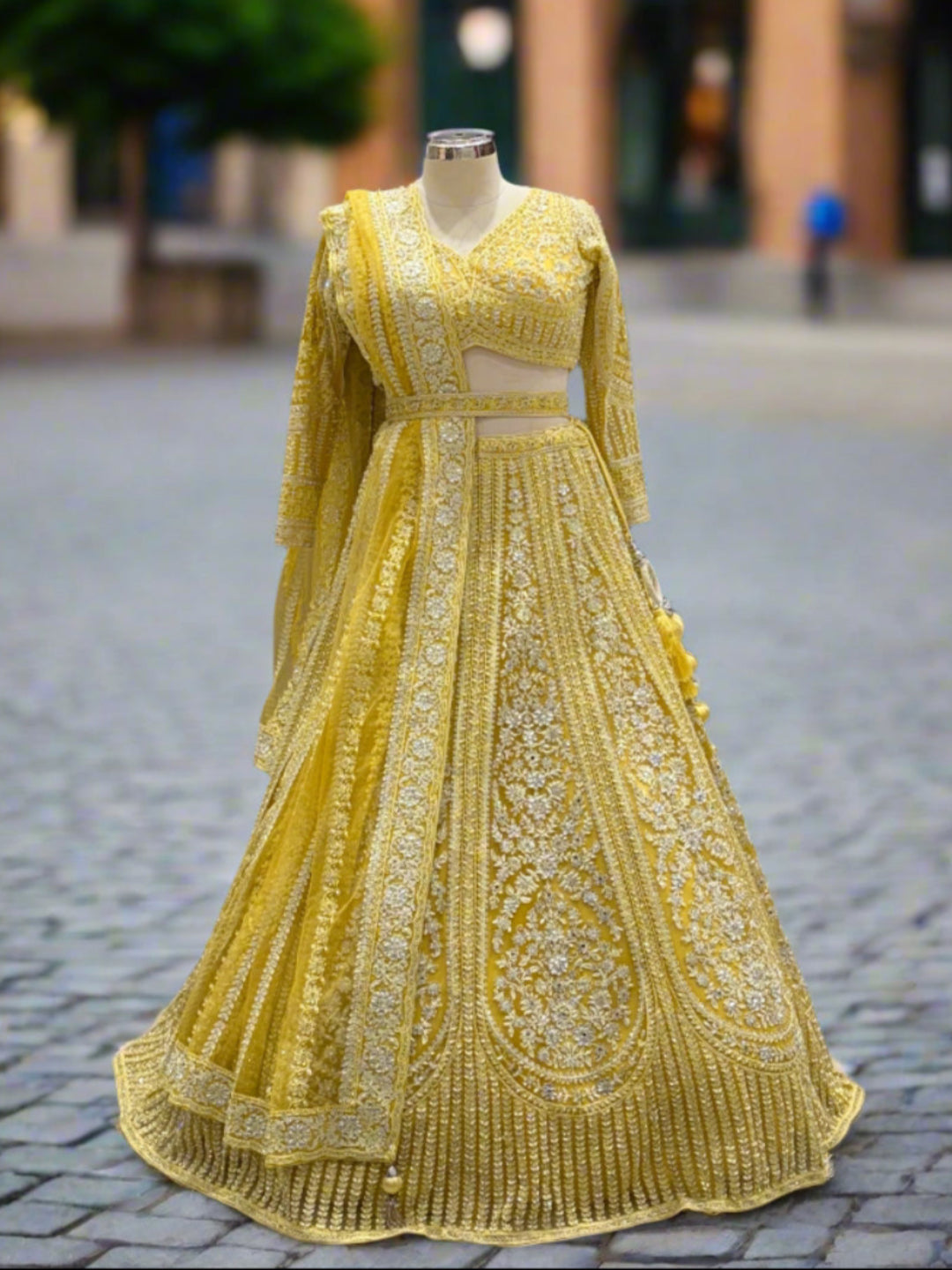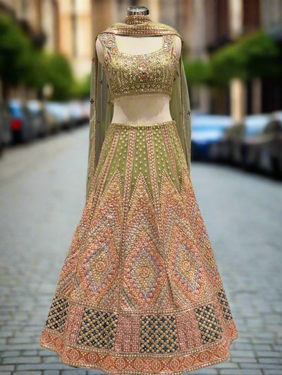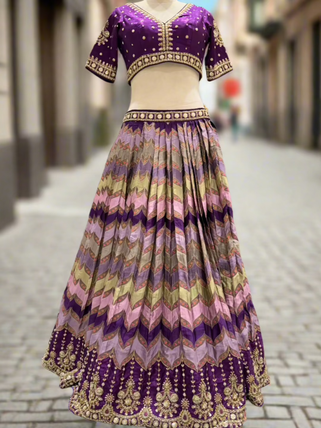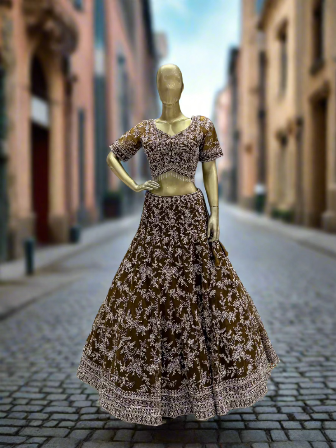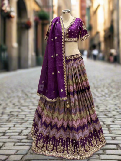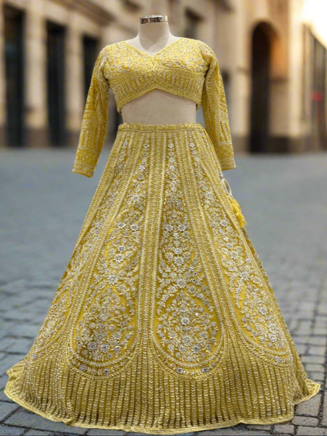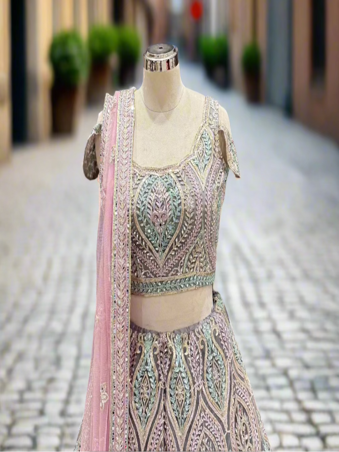 From intricately embroidered zari lehengas to contemporary mirror work and sequin lehenga sets, each piece is crafted in luxurious fabrics like silk, velvet, georgette, net, and organza. Whether you're looking for a bridal lehenga choli, a ready-to-wear lehenga for festive occasions, or a trendy Indo-western lehenga, we have something for every style and silhouette.