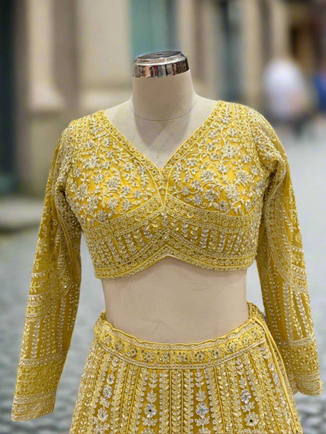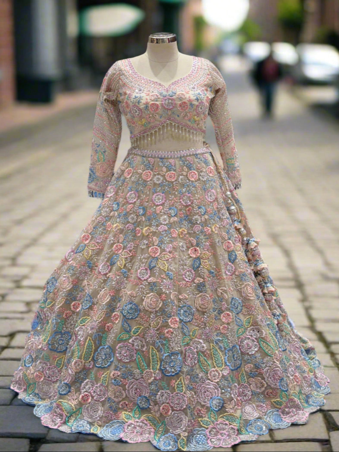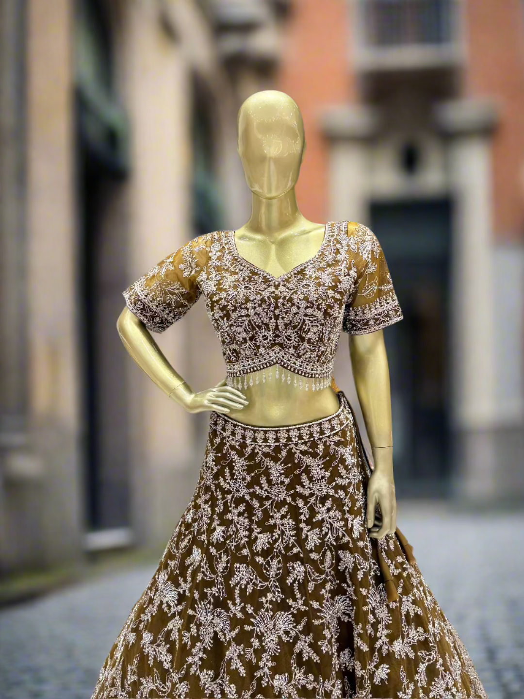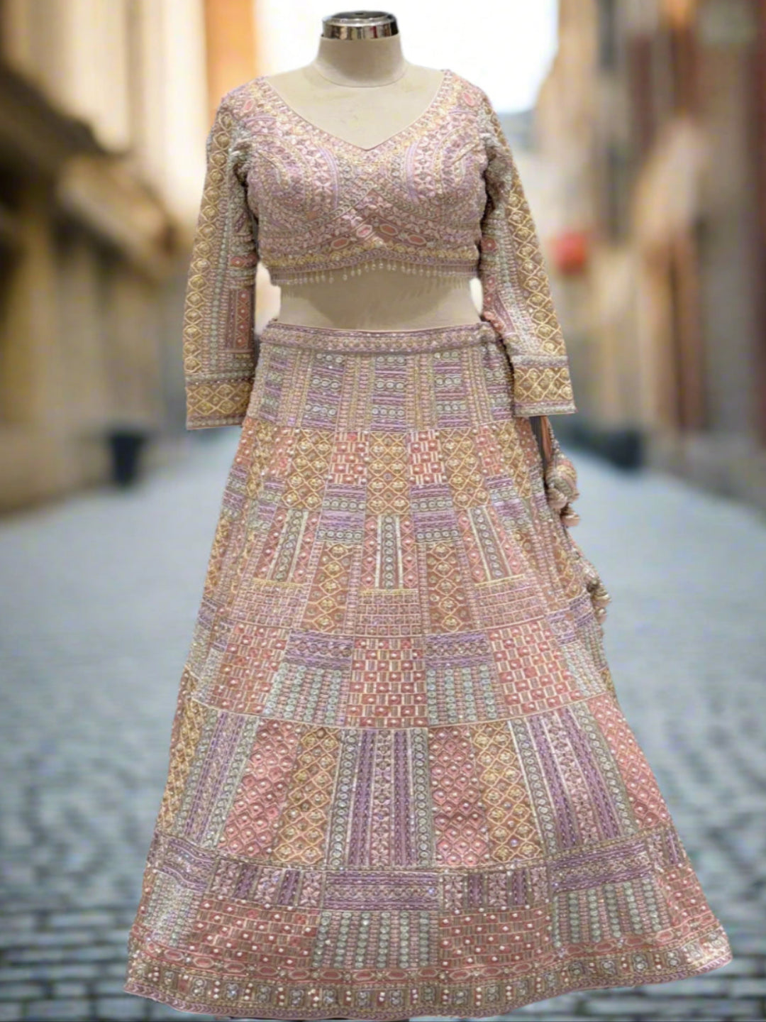 From intricately embroidered zari lehengas to contemporary mirror work and sequin lehenga sets, each piece is crafted in luxurious fabrics like silk, velvet, georgette, net, and organza. Whether you're looking for a bridal lehenga choli, a ready-to-wear lehenga for festive occasions, or a trendy Indo-western lehenga, we have something for every style and silhouette.