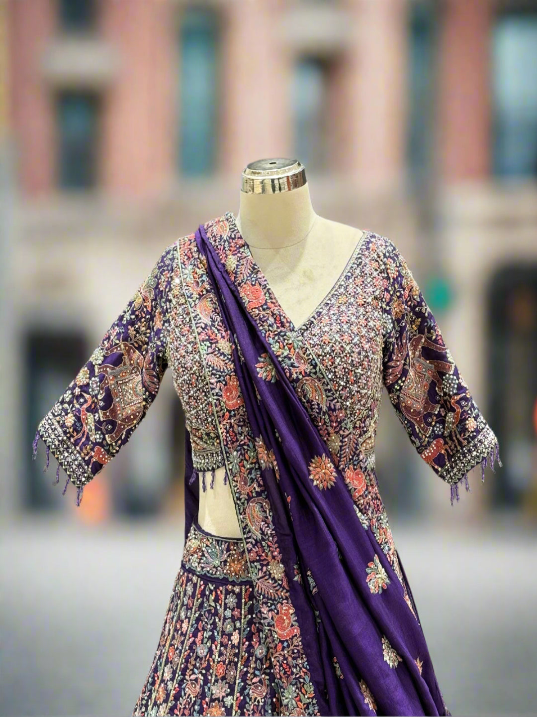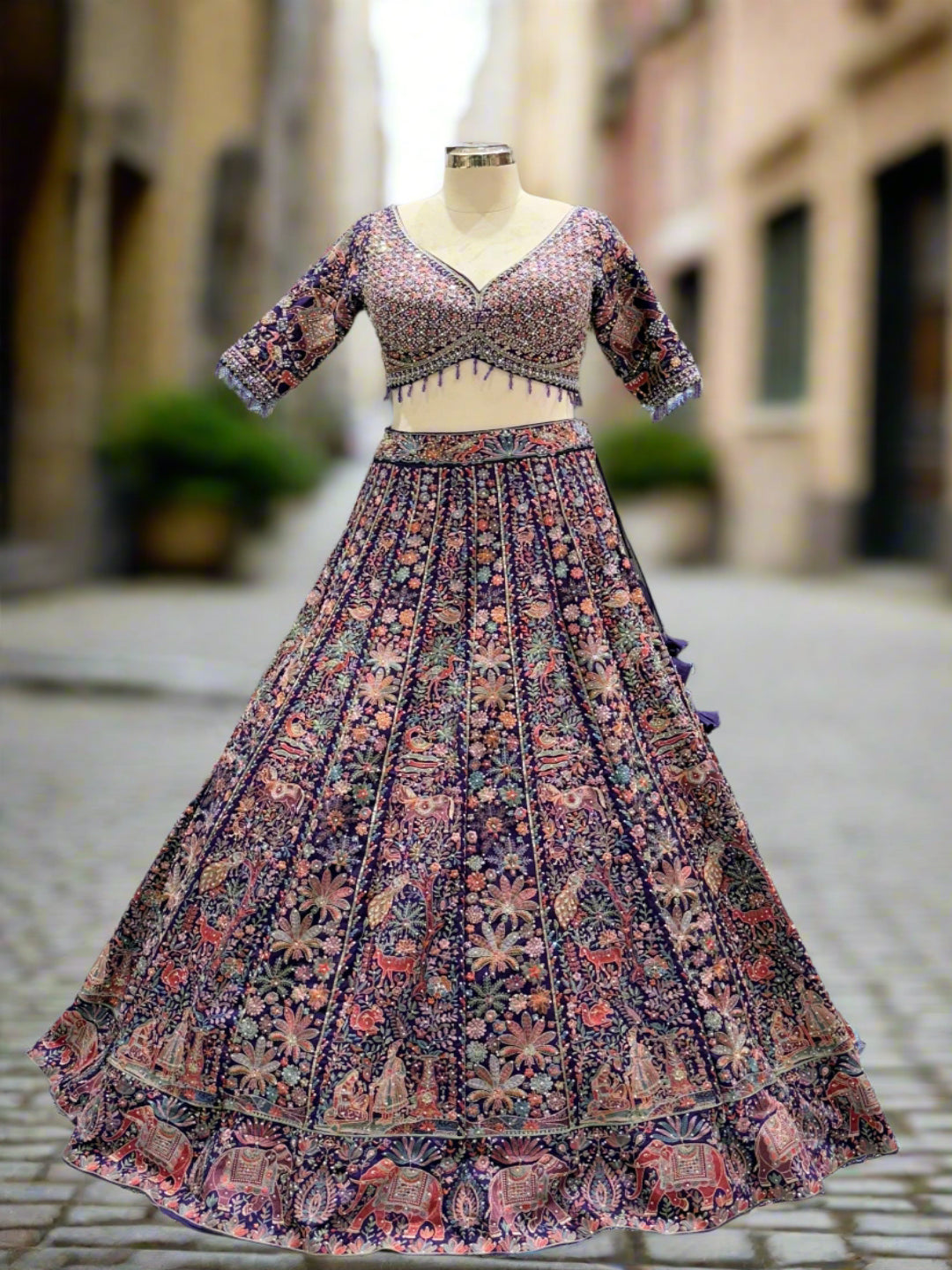 From intricately embroidered zari lehengas to contemporary mirror work and sequin lehenga sets, each piece is crafted in luxurious fabrics like silk, velvet, georgette, net, and organza. Whether you're looking for a bridal lehenga choli, a ready-to-wear lehenga for festive occasions, or a trendy Indo-western lehenga, we have something for every style and silhouette.