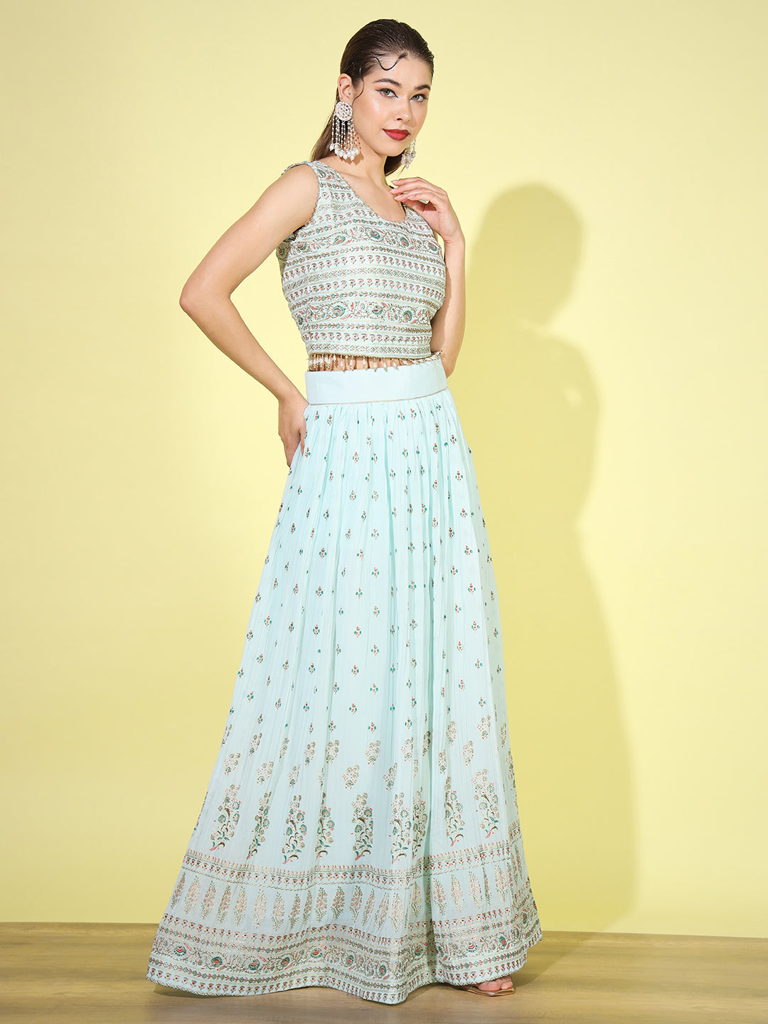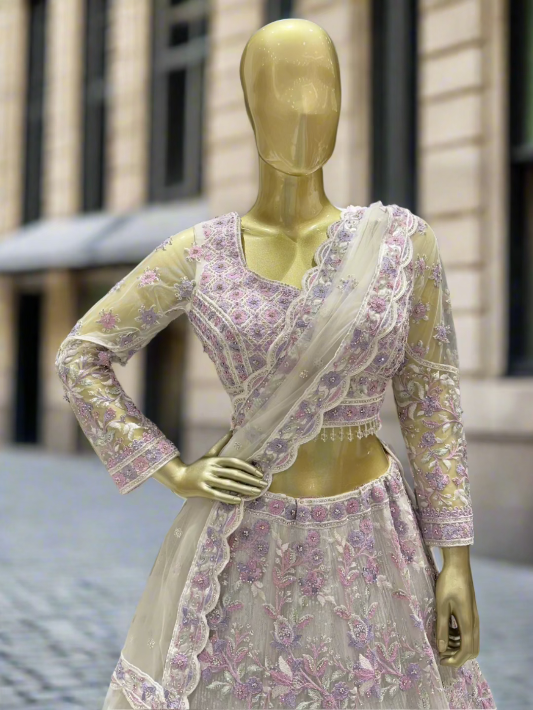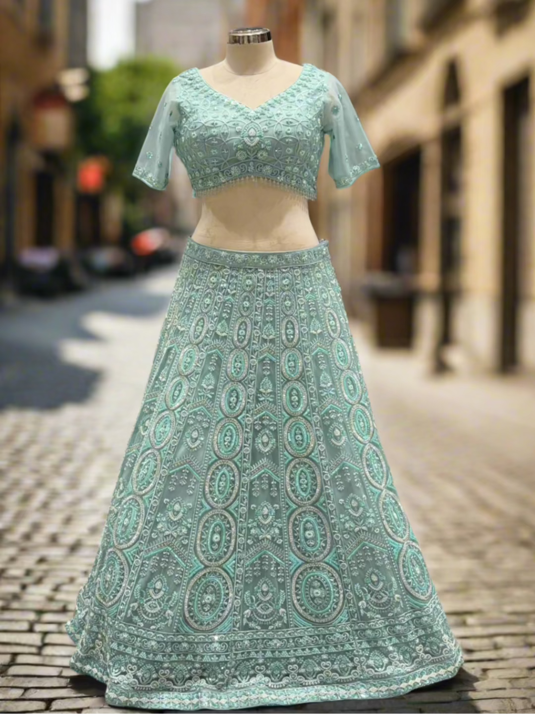 From intricately embroidered zari lehengas to contemporary mirror work and sequin lehenga sets, each piece is crafted in luxurious fabrics like silk, velvet, georgette, net, and organza. Whether you're looking for a bridal lehenga choli, a ready-to-wear lehenga for festive occasions, or a trendy Indo-western lehenga, we have something for every style and silhouette.