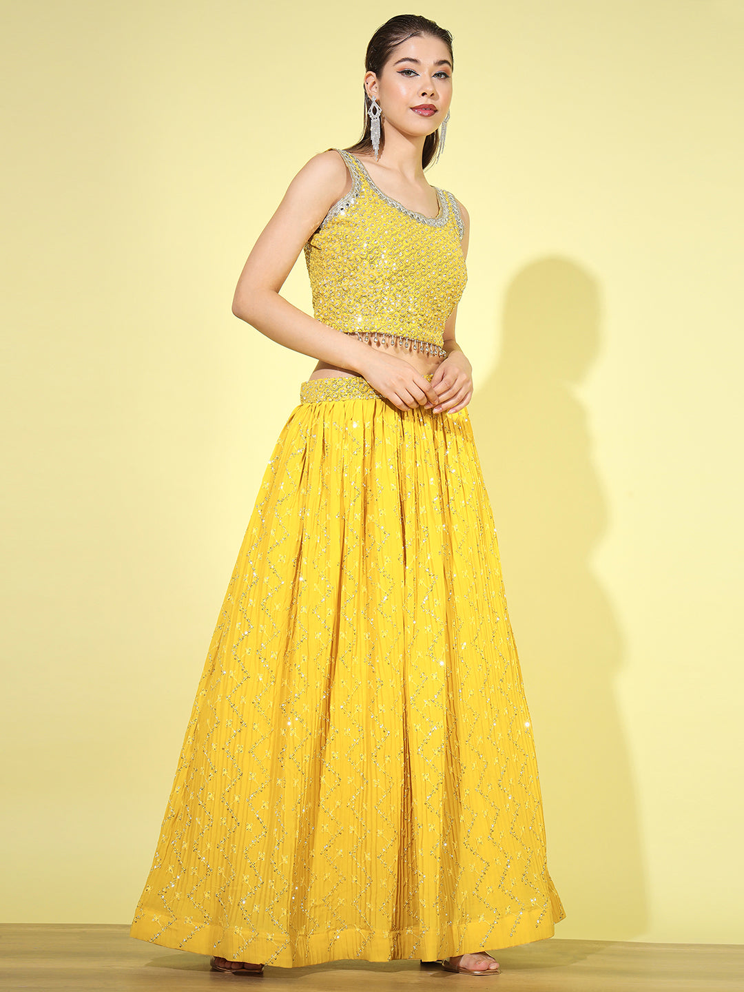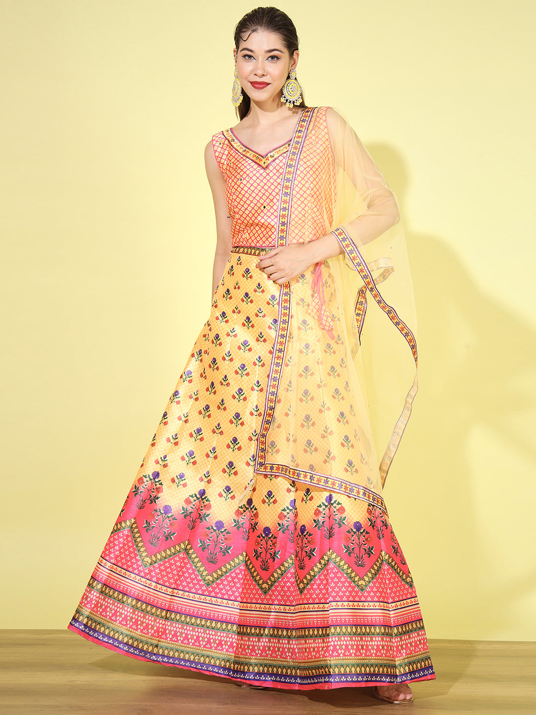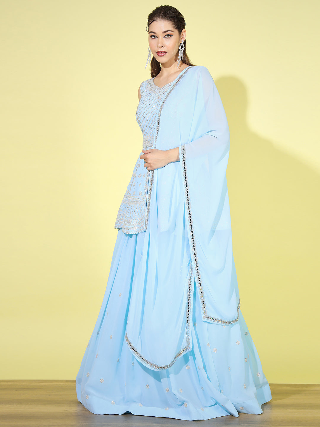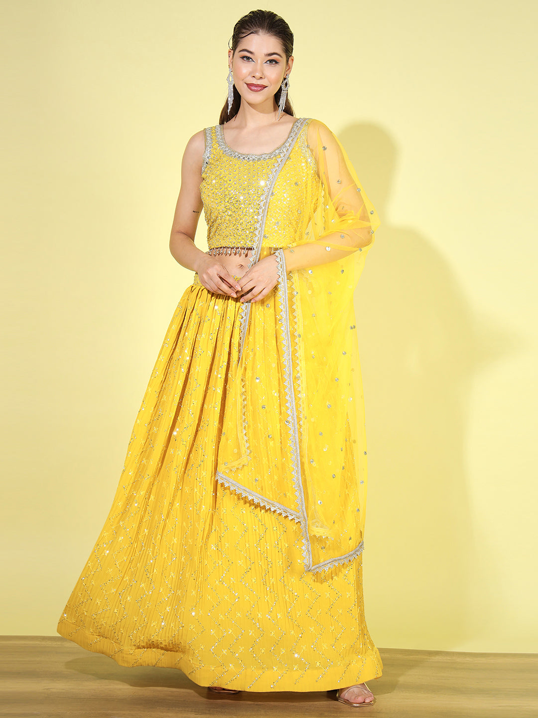 From intricately embroidered zari lehengas to contemporary mirror work and sequin lehenga sets, each piece is crafted in luxurious fabrics like silk, velvet, georgette, net, and organza. Whether you're looking for a bridal lehenga choli, a ready-to-wear lehenga for festive occasions, or a trendy Indo-western lehenga, we have something for every style and silhouette.