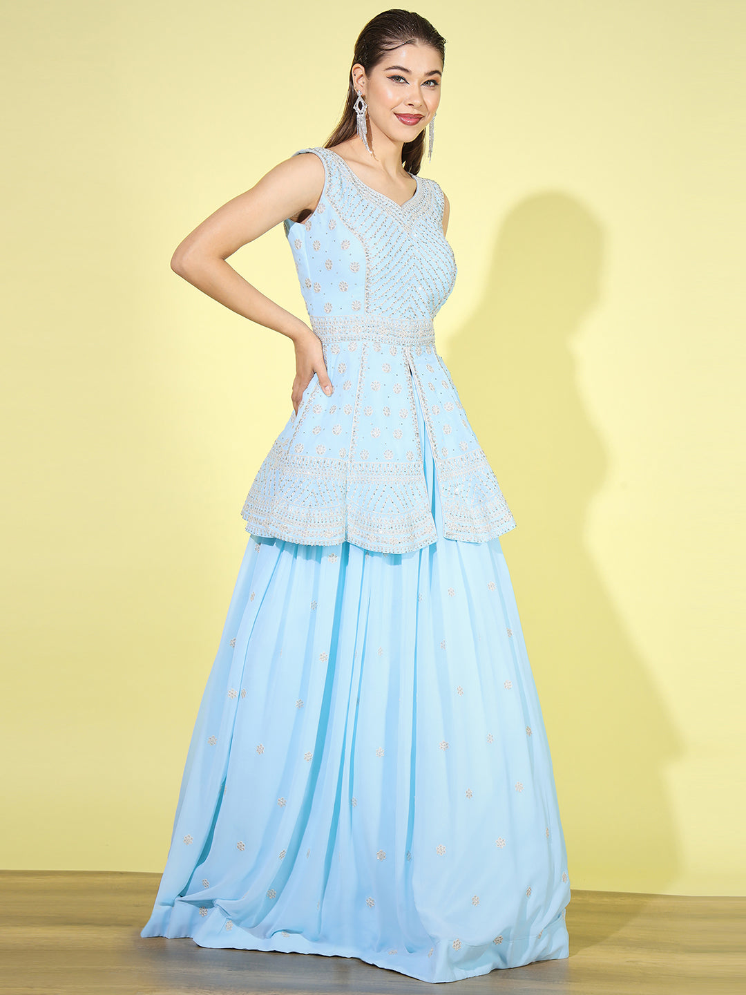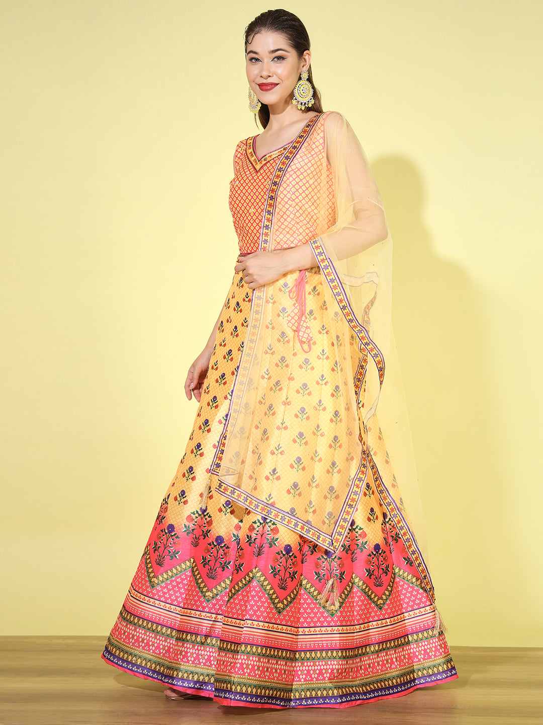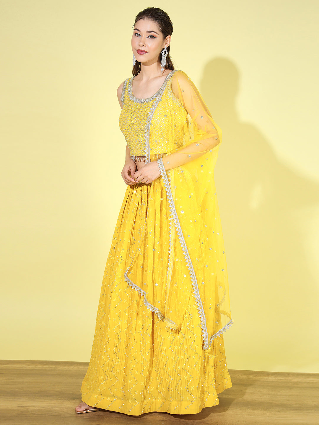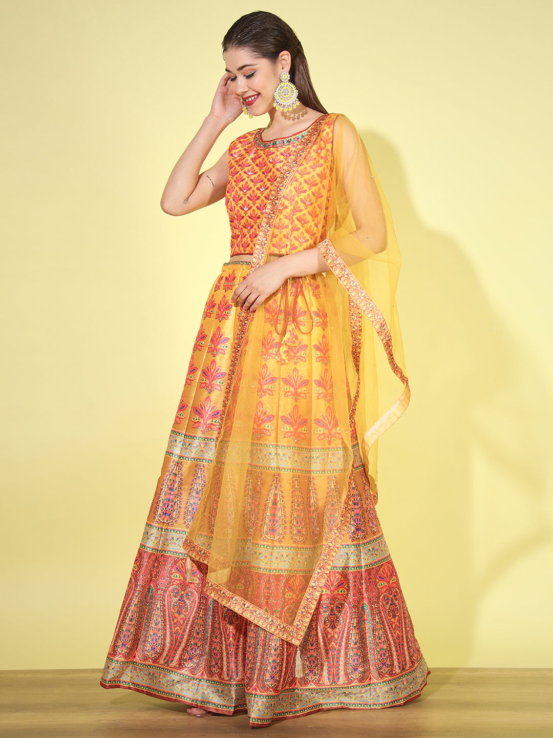 From intricately embroidered zari lehengas to contemporary mirror work and sequin lehenga sets, each piece is crafted in luxurious fabrics like silk, velvet, georgette, net, and organza. Whether you're looking for a bridal lehenga choli, a ready-to-wear lehenga for festive occasions, or a trendy Indo-western lehenga, we have something for every style and silhouette.