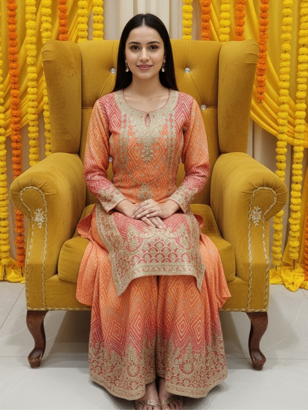 Get ready to celebrate with color, tradition, and contemporary flair in our exclusive collection of Mehendi ceremony outfits for women. From lively green lehengas and printed sharara sets to elegant embroidered anarkalis, Indo-western dresses, and flowy sarees, our range is designed to make your Mehendi night unforgettable.
