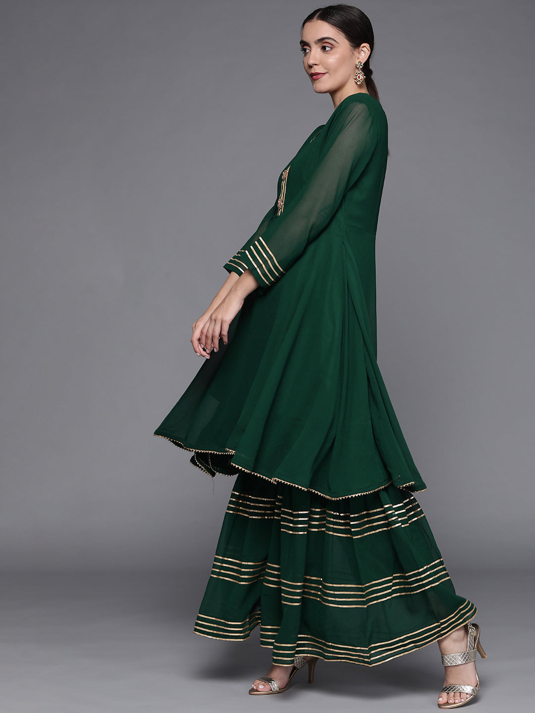 Crafted in breathable fabrics like georgette, chiffon, and cotton, these Mehendi function dresses feature mirror work, floral prints, gota patti, and playful tassels for the perfect festive vibe. Whether you're the bride, bridesmaid, or guest, find the ideal Mehendi outfit that lets you dance, pose, and enjoy rituals in style.