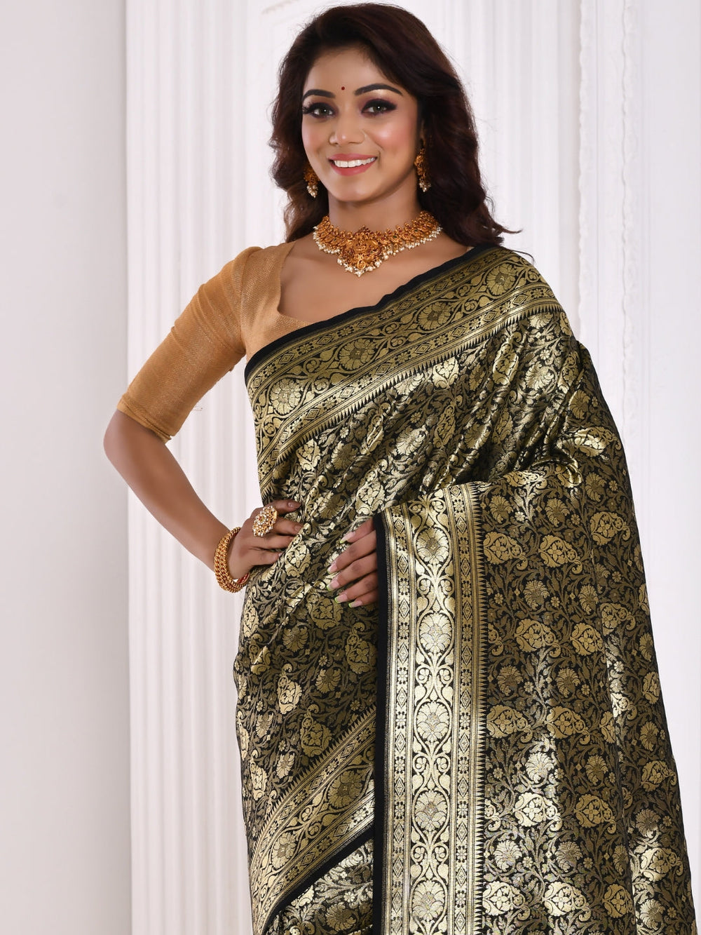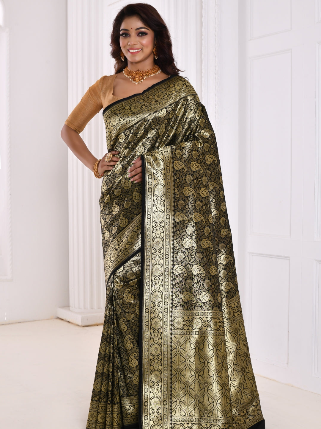 NeemZari Silk Saree with Paisley Pattern Wea…