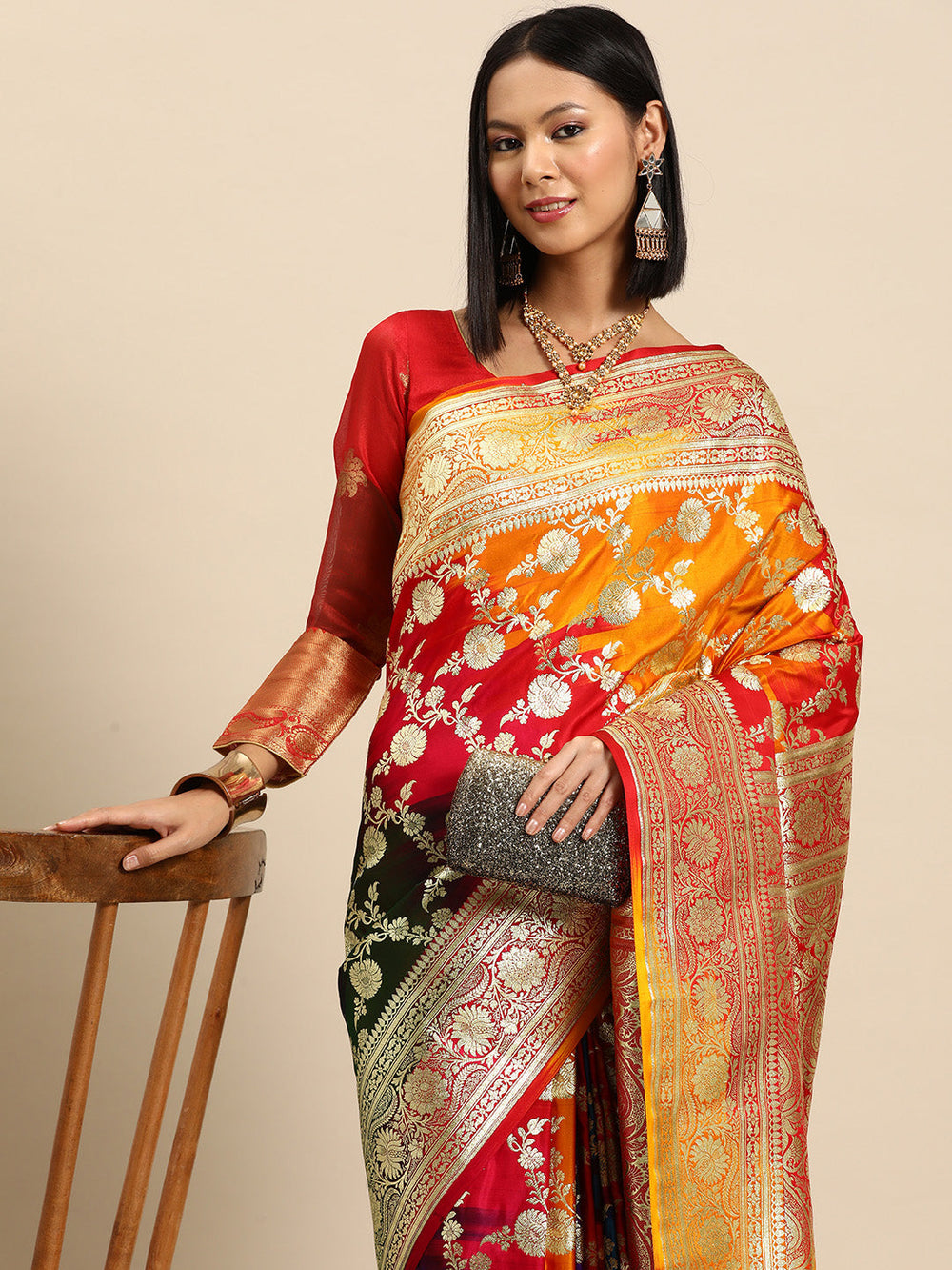 Bright MultiColor Floral Jaal Pattern Zari K…