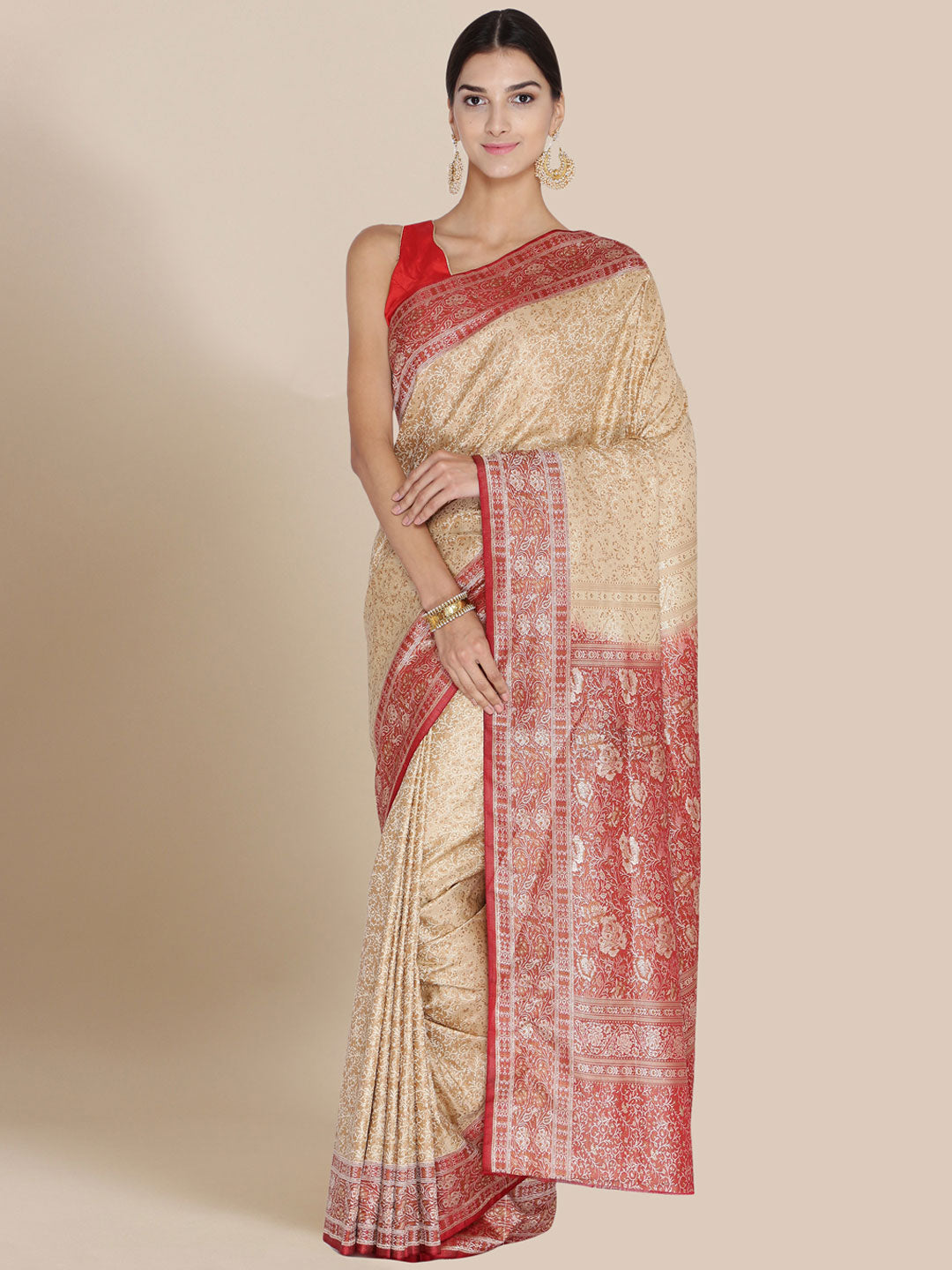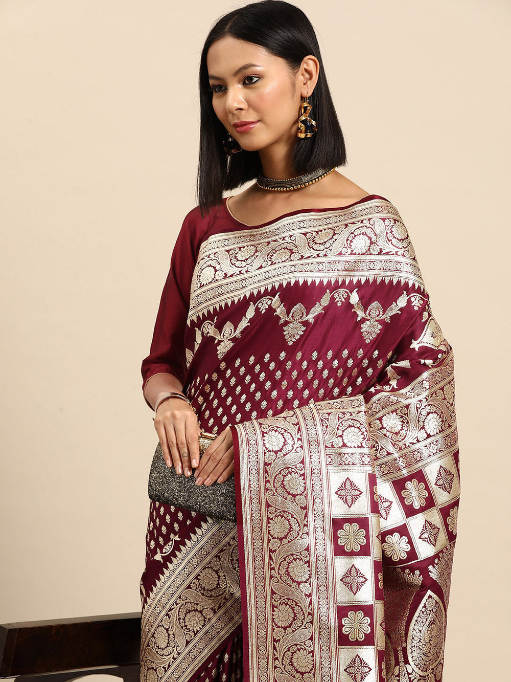 Beige & Maroon Colored Banarasi Silk Woven P…