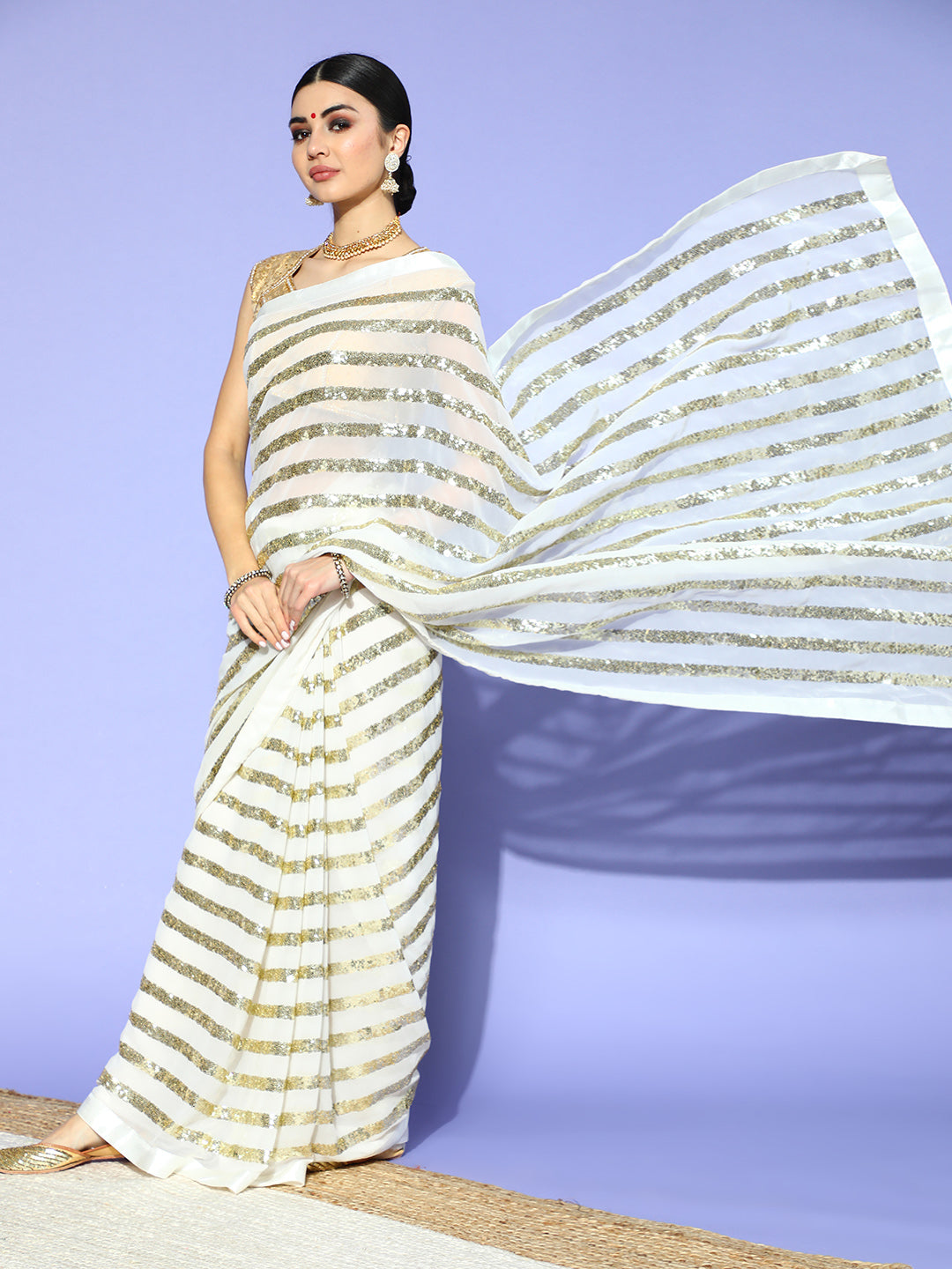 Discover the beauty and versatility of sarees with our carefully curated collection for every occasion. From luxurious silk sarees and lightweight georgette sarees to intricate embroidered sarees, printed sarees, and glamorous partywear sarees, find styles that celebrate India’s rich heritage while embracing contemporary trends.