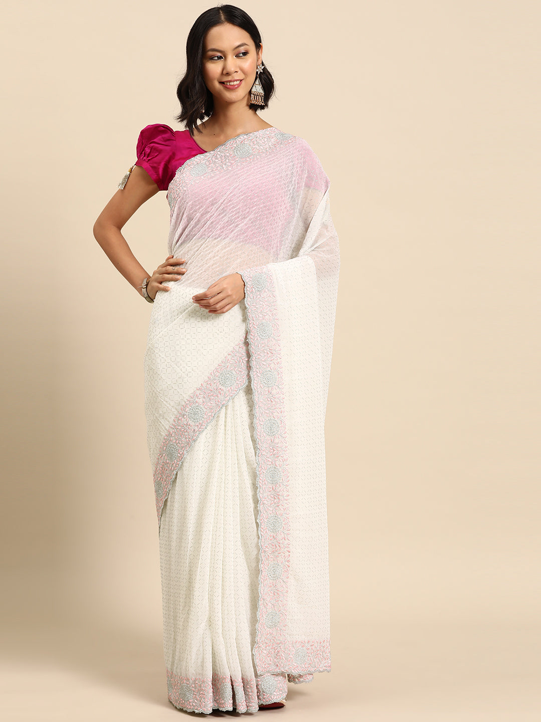 Discover the beauty and versatility of sarees with our carefully curated collection for every occasion. From luxurious silk sarees and lightweight georgette sarees to intricate embroidered sarees, printed sarees, and glamorous partywear sarees, find styles that celebrate India’s rich heritage while embracing contemporary trends.
