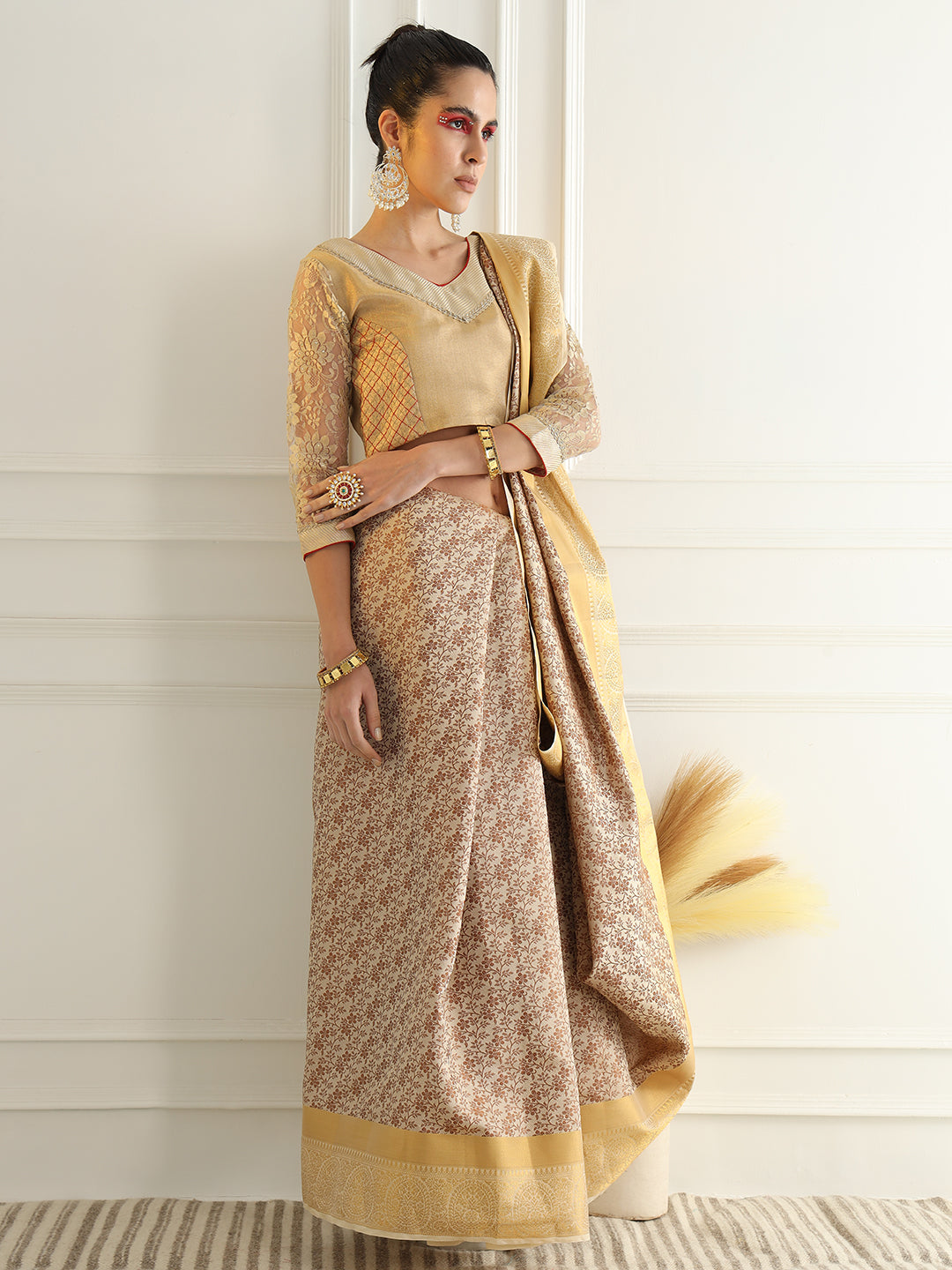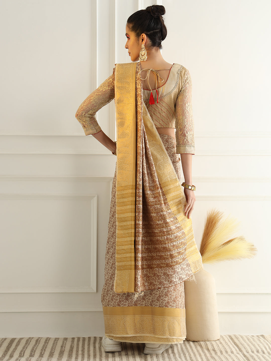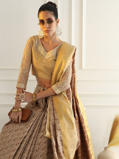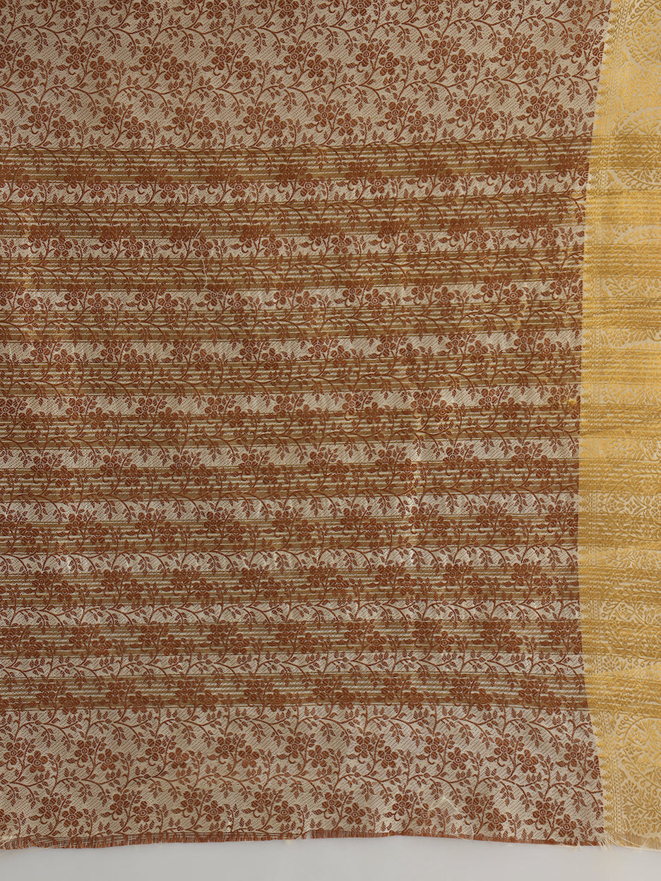 Beige Floral Jaal Pattern Khadi Silk Beautiful Traditional Saree