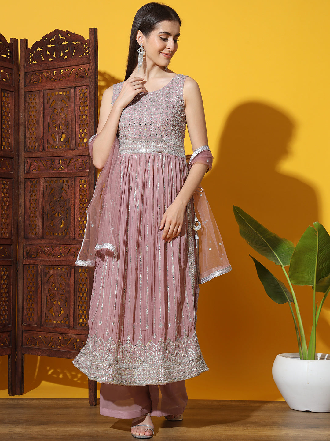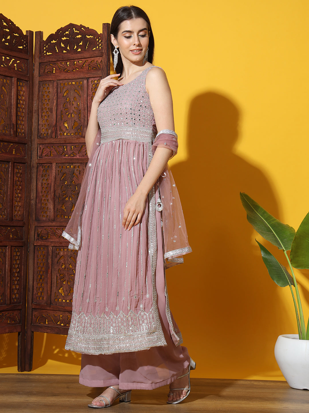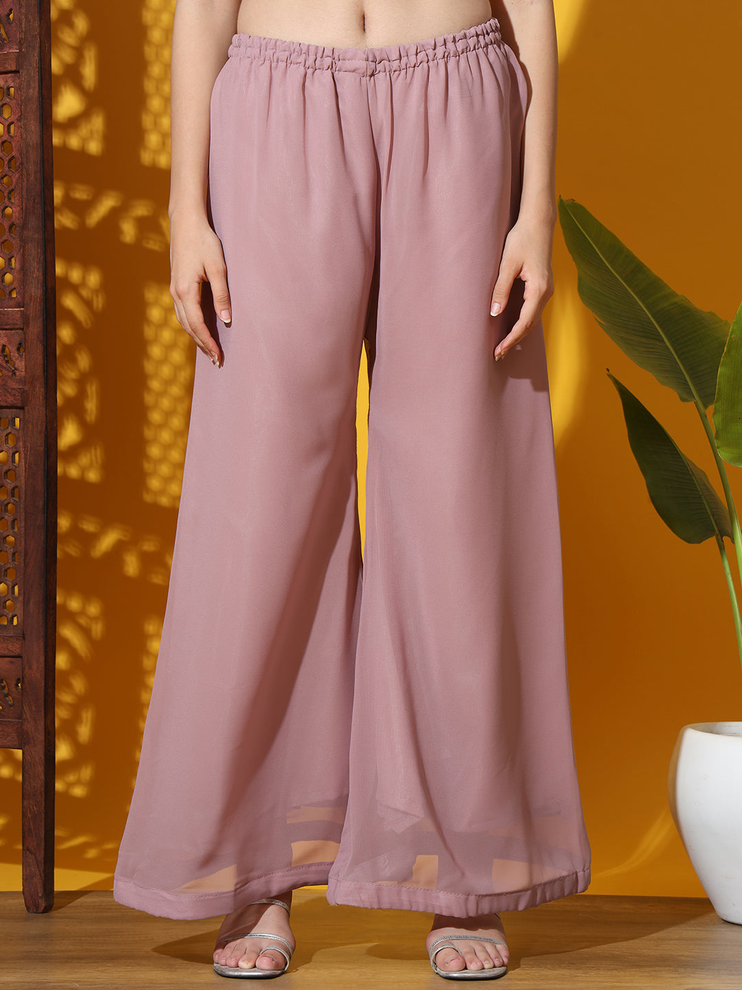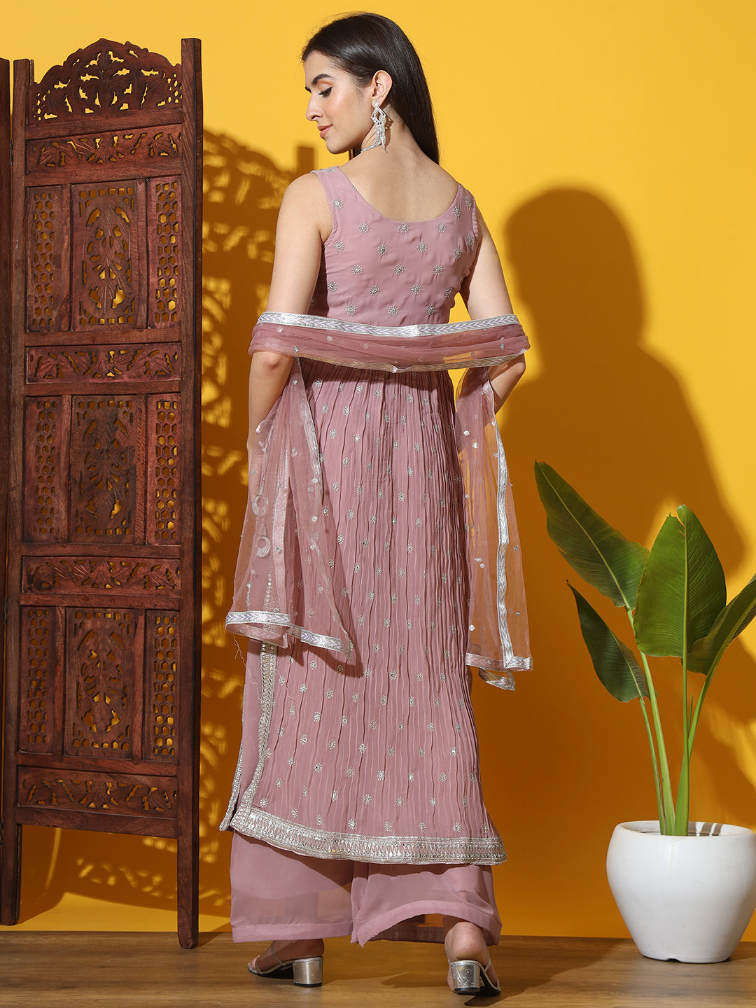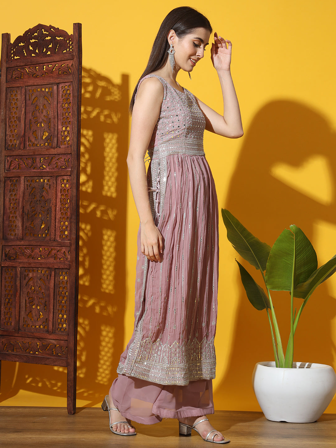 Mauve Pink Gharara Set with Zari, Sequin & Resham Embroidery and Pearl Detailing