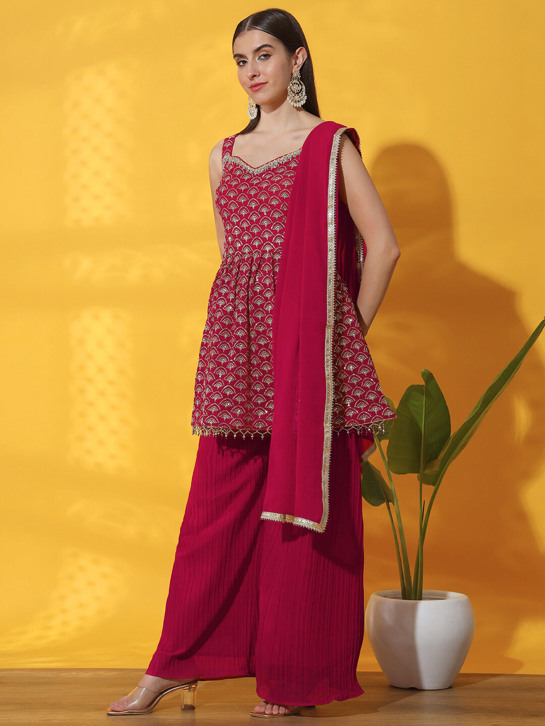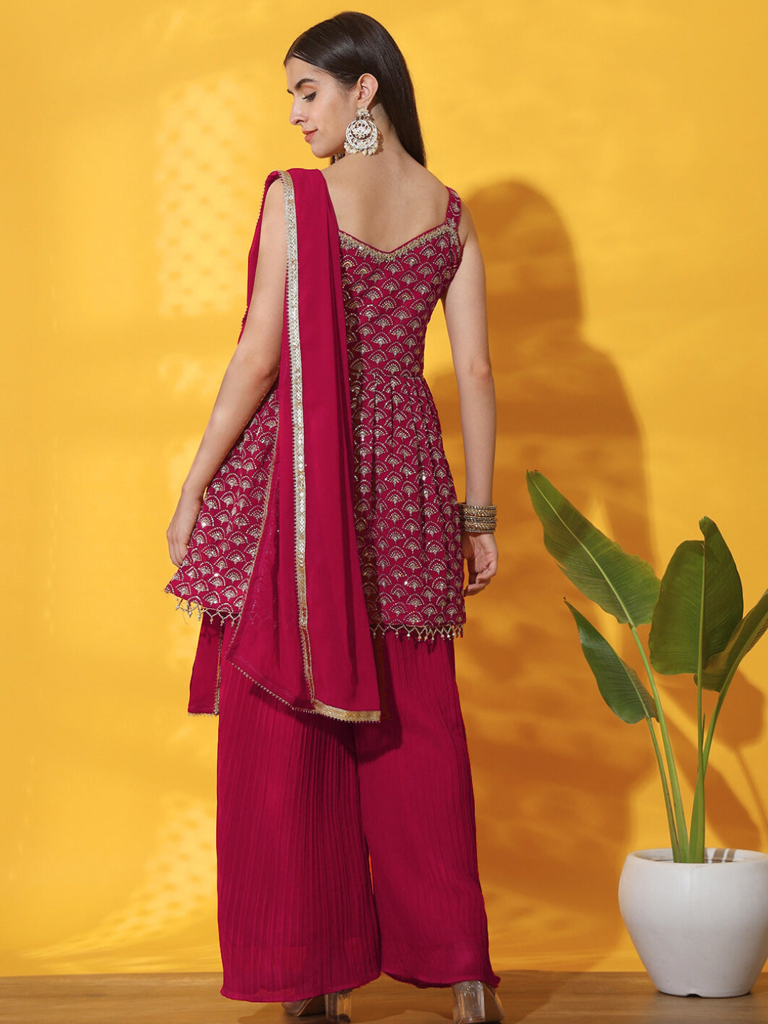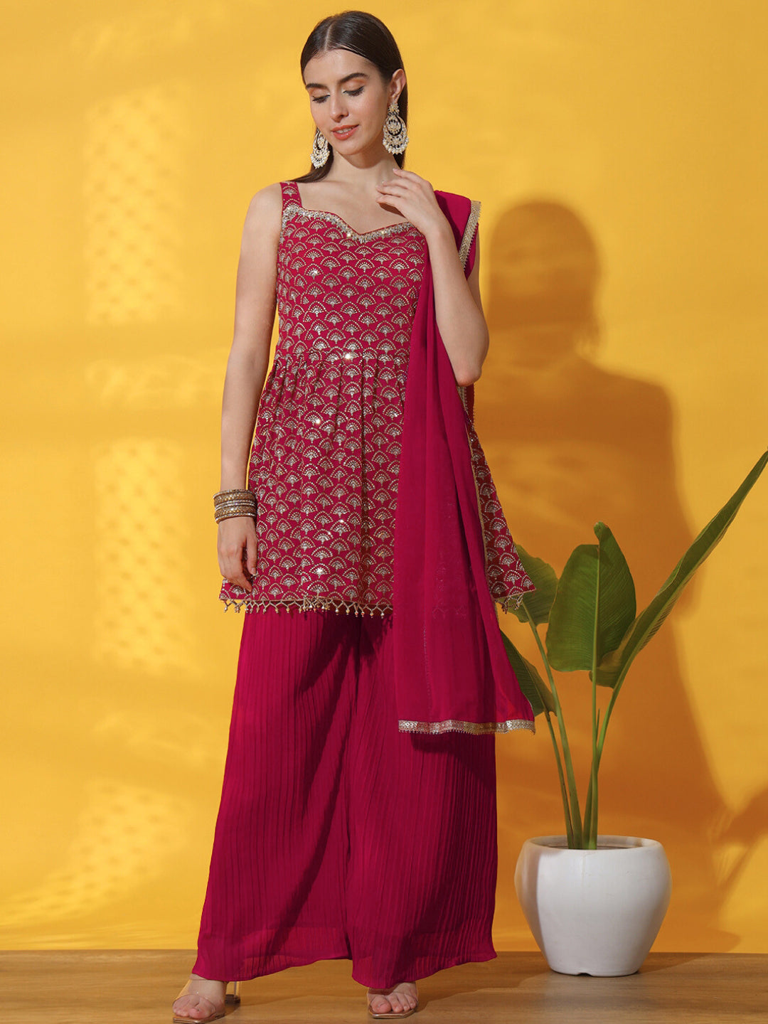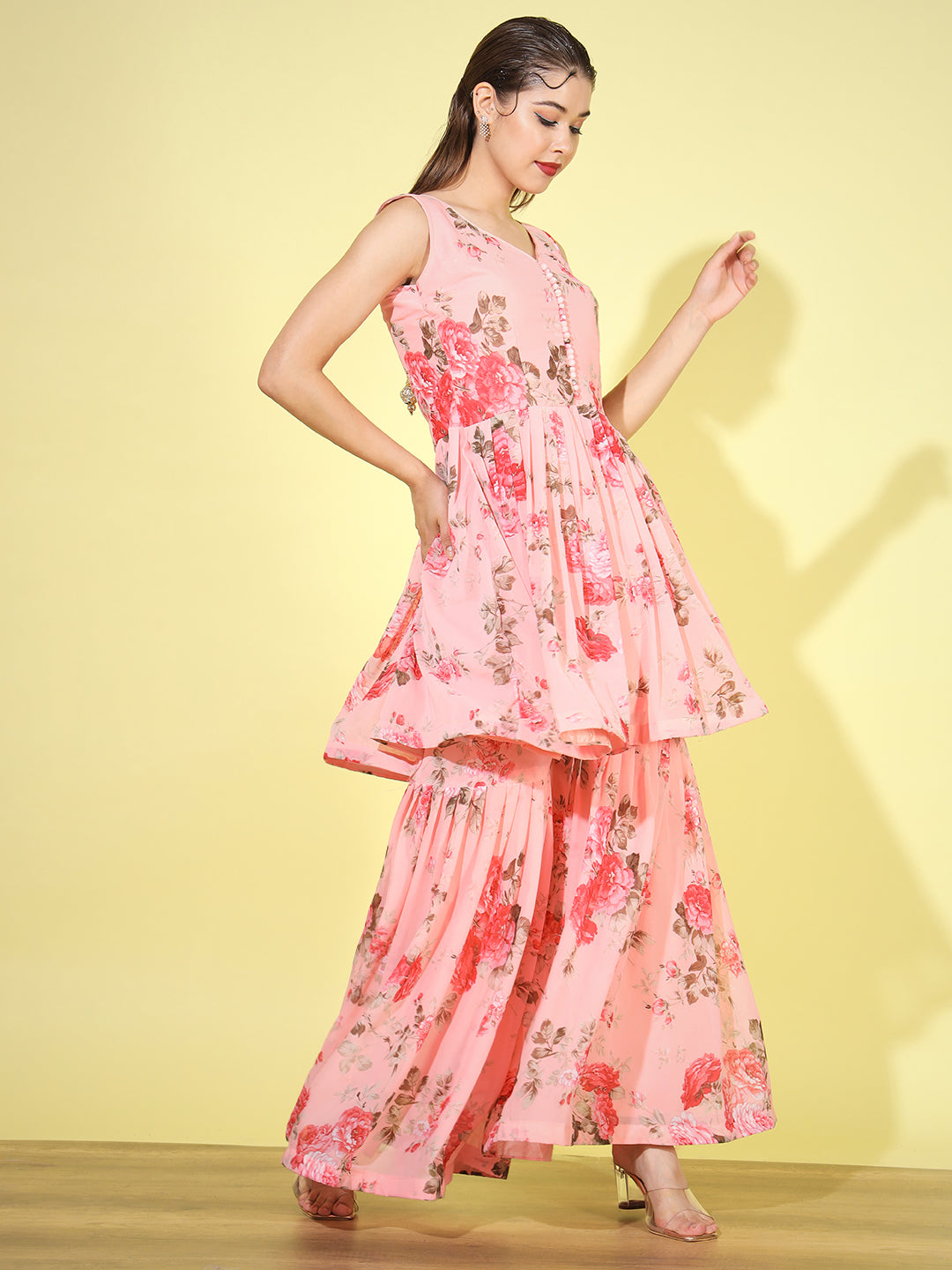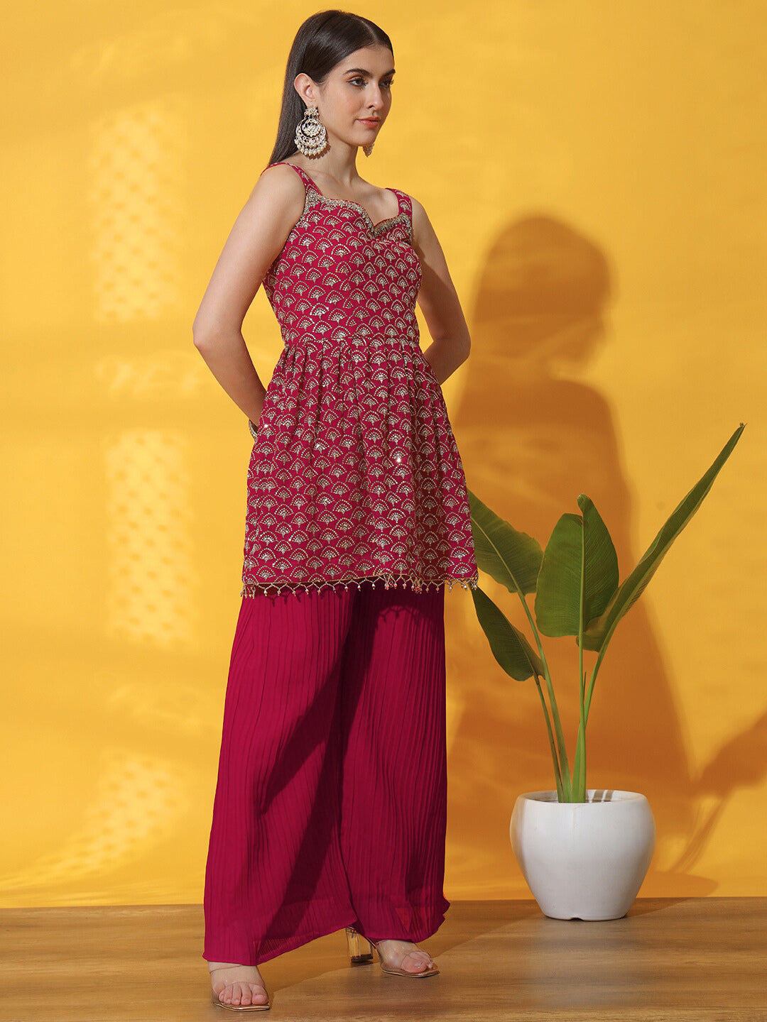 Mauve Pink Gharara Set with Zari, Sequin & Resham Embroidery and Pearl Detailing