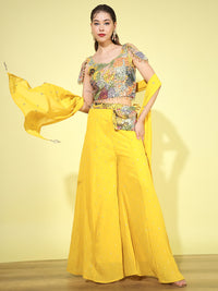 Resham & Sequin Embroidered Tassled Crop Top with Flared Pallazo Set