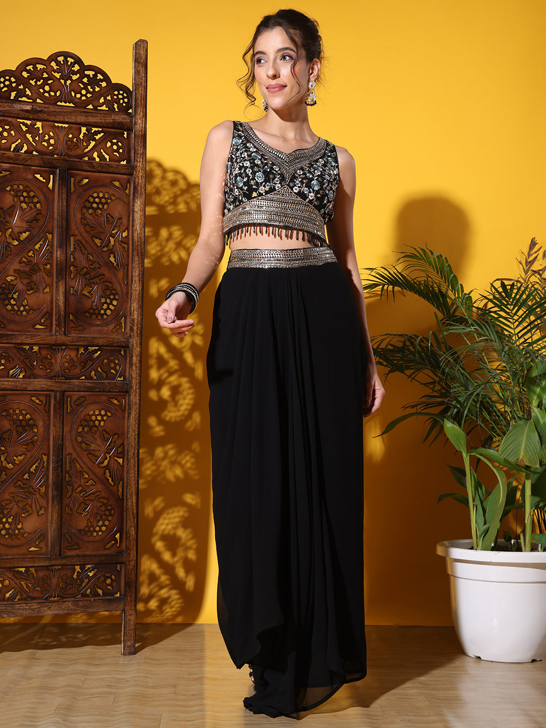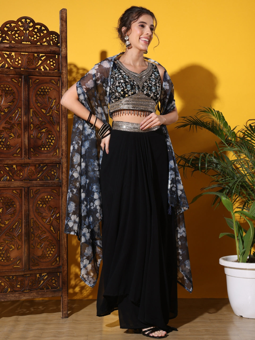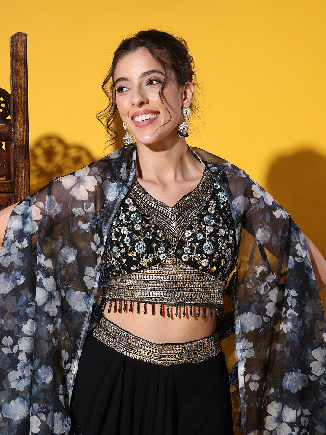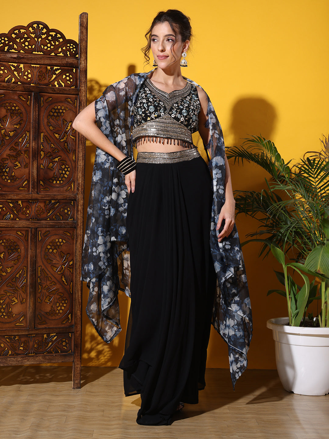 Ornamentation: Zari embroidery, resham, scattered sequins, pearl highlights, and Gota details