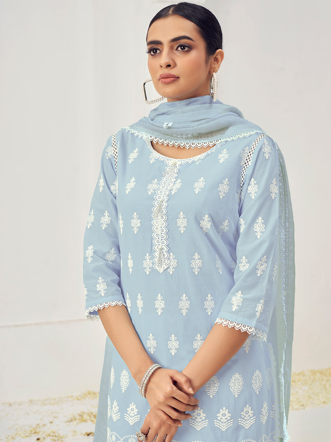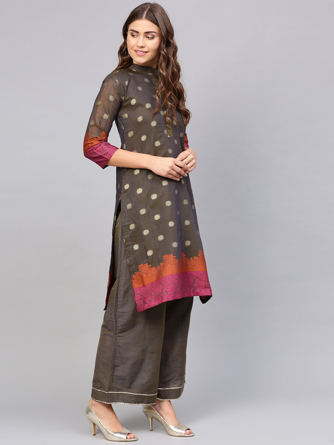 Bottom Pattern: Buti motifs all over, broad embroidered
