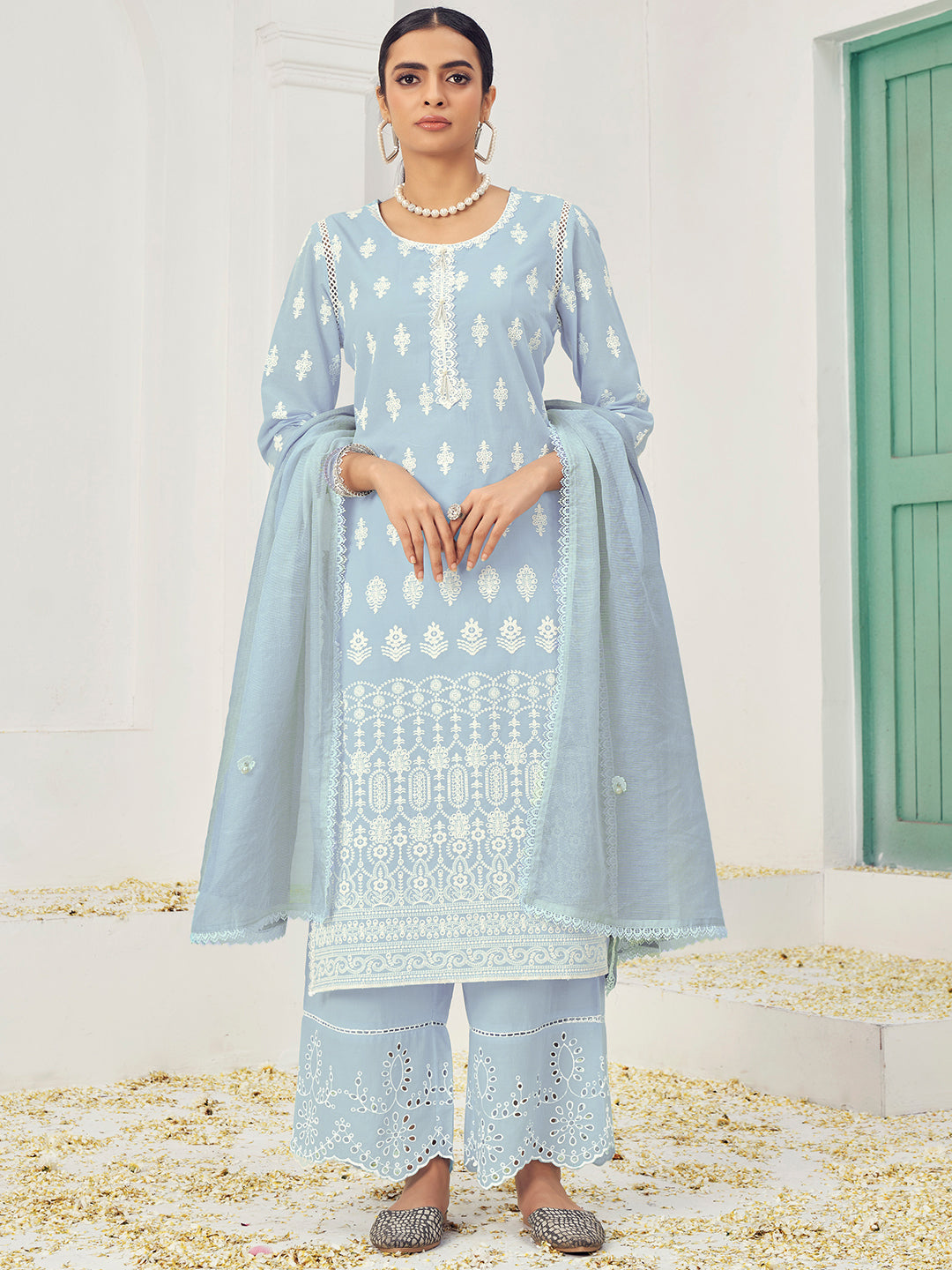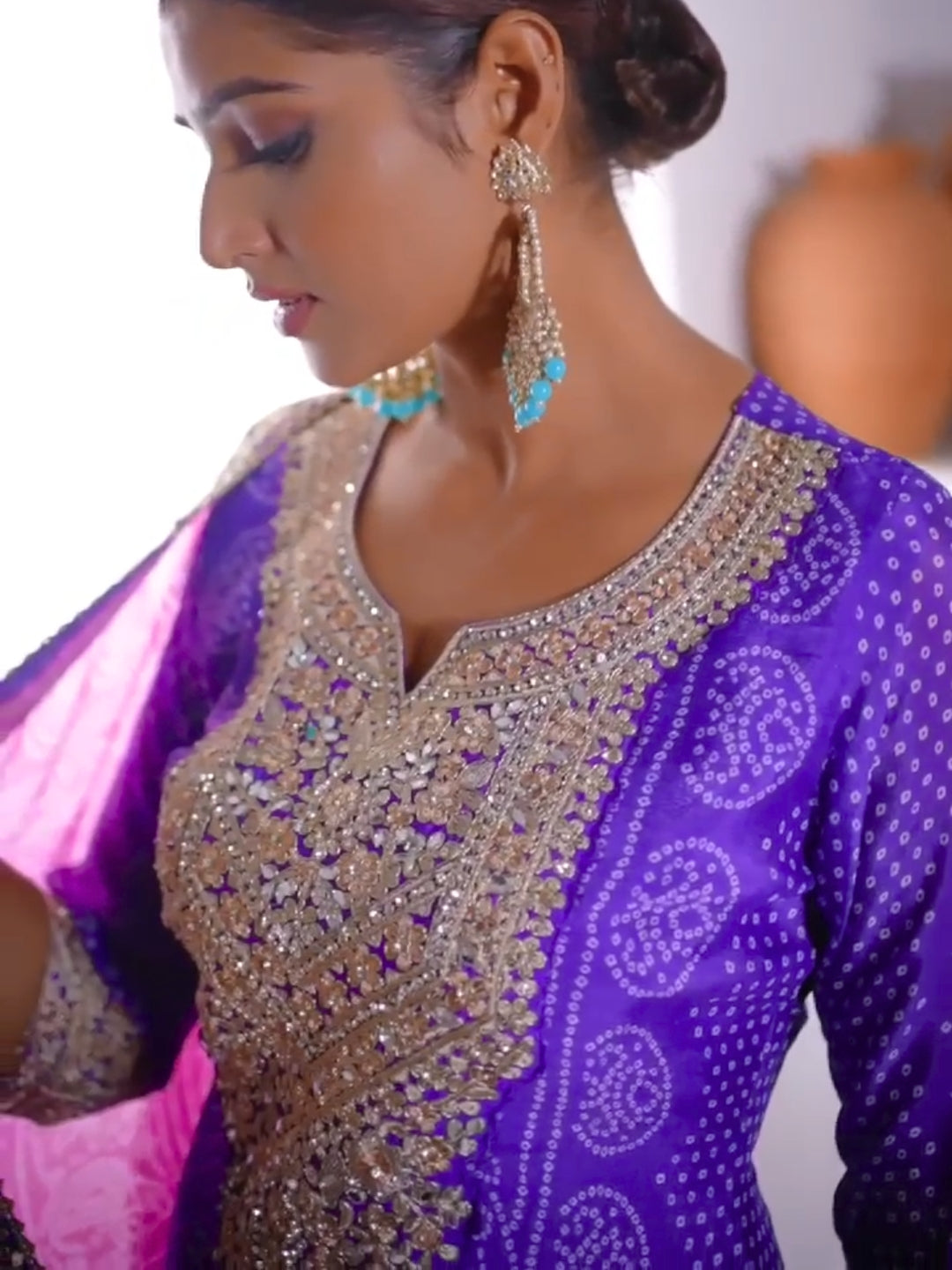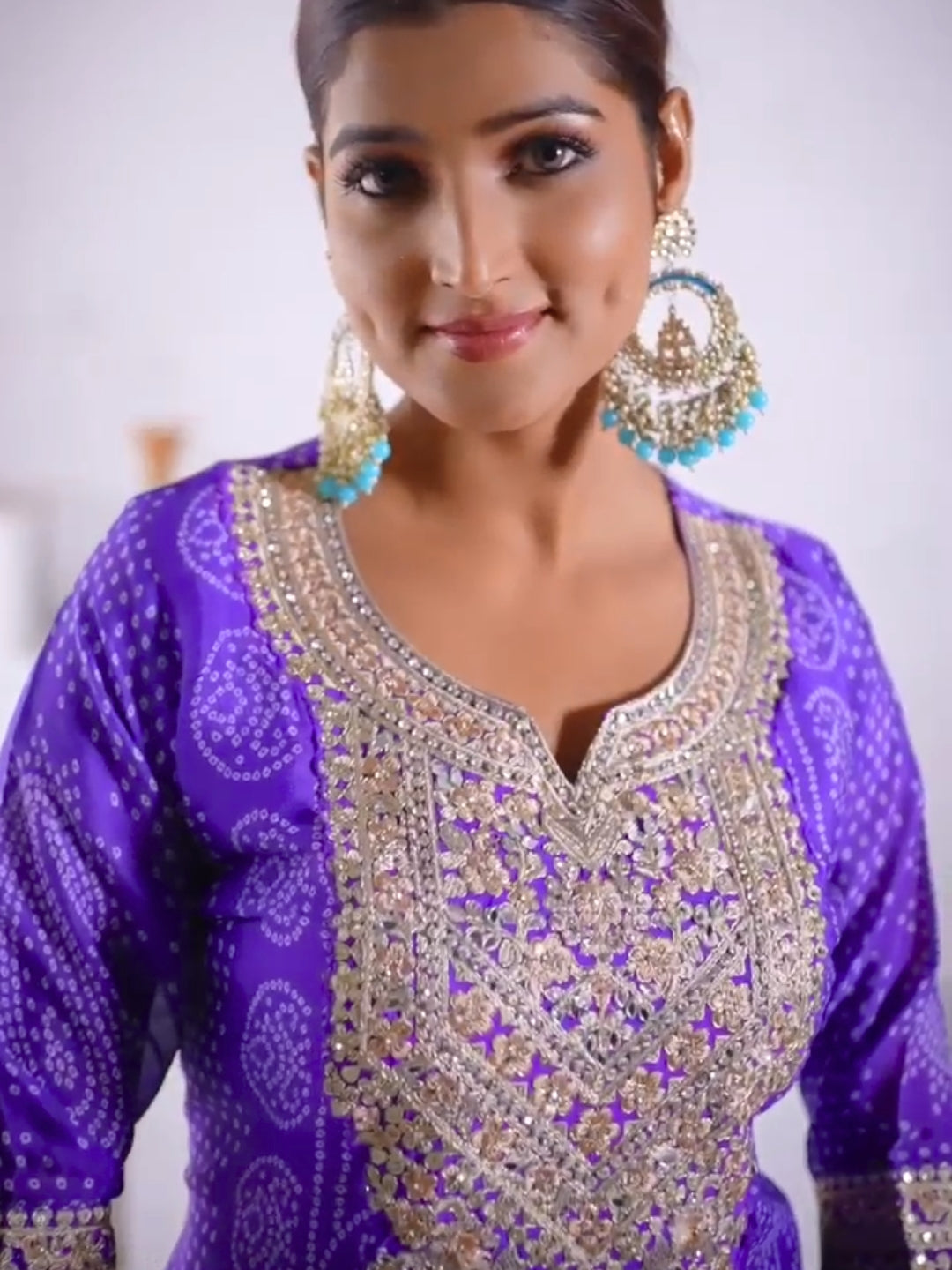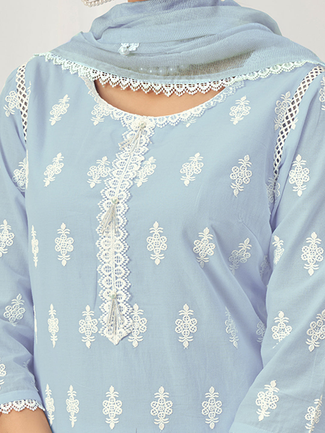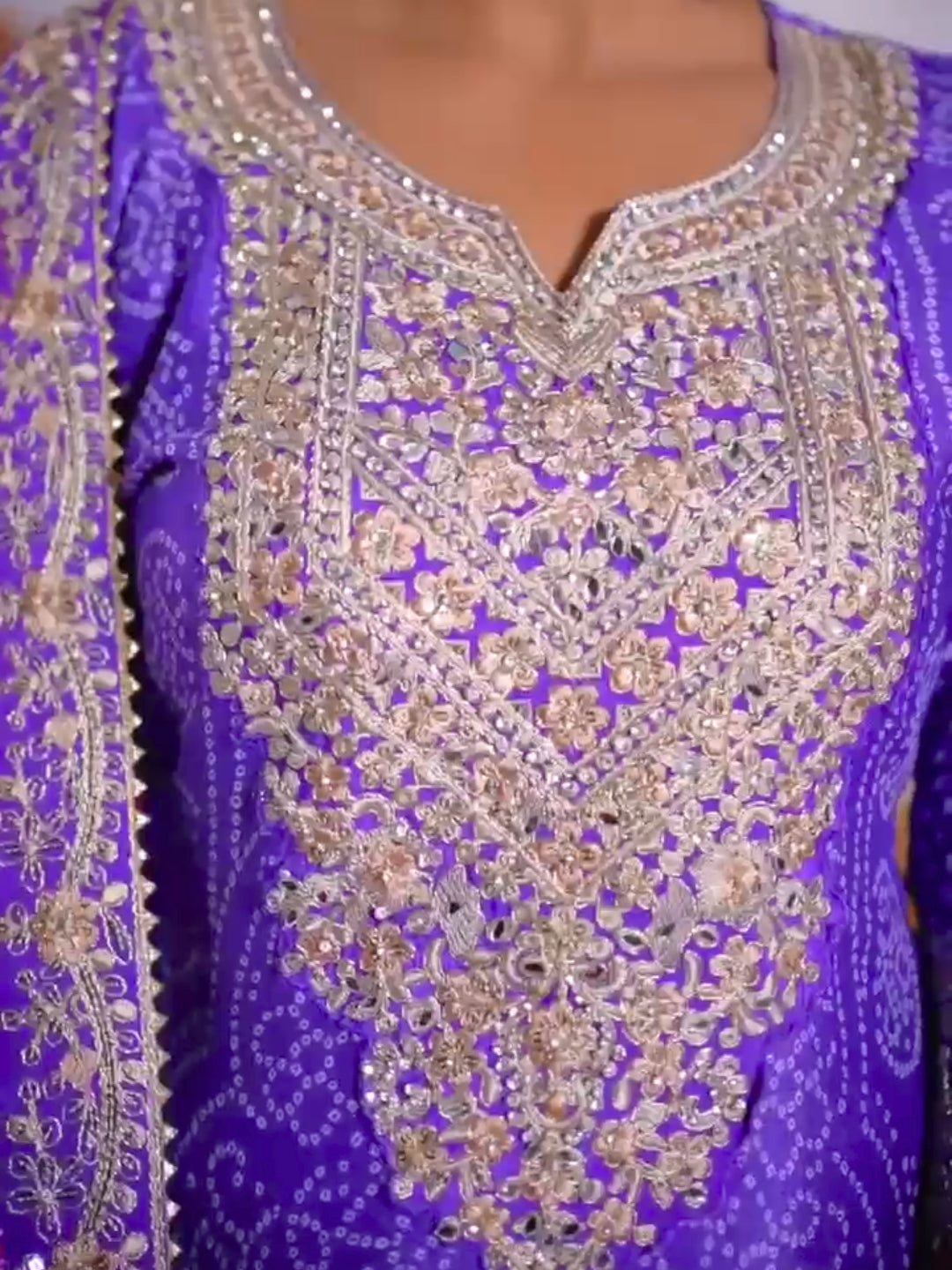 Top Styling: Straight-cut, side slits heavy yoke and hem embroidery