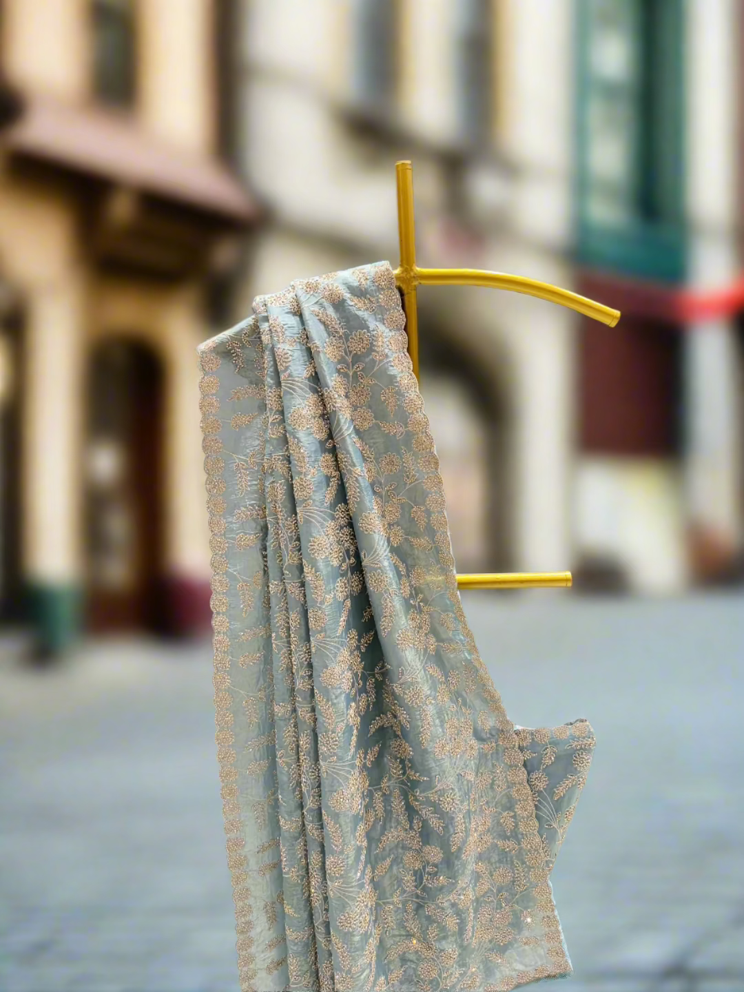 Ornamentation: Printed Motifs with Embellished Blouse (Sequins, Beads, and Mirror Work)