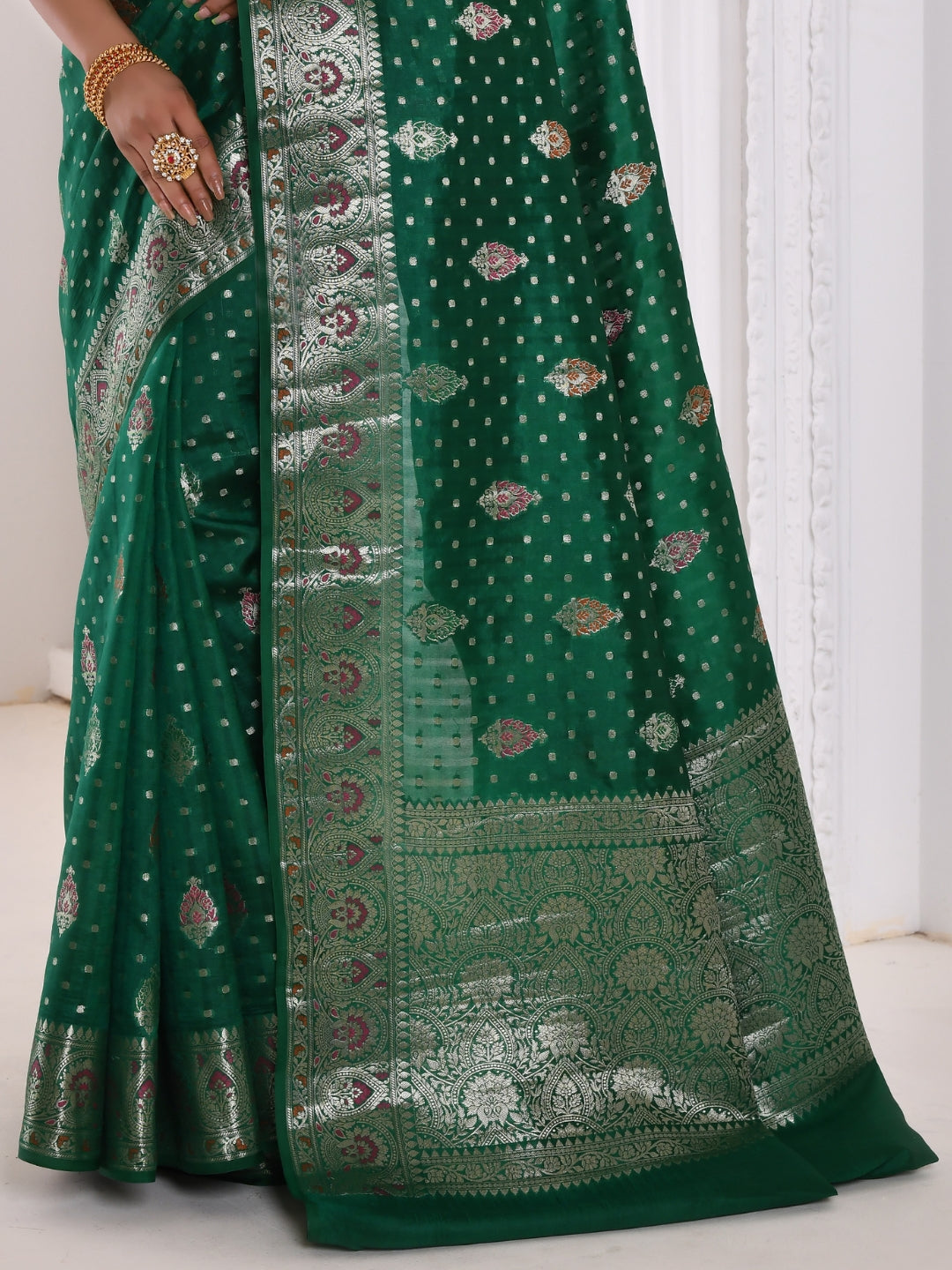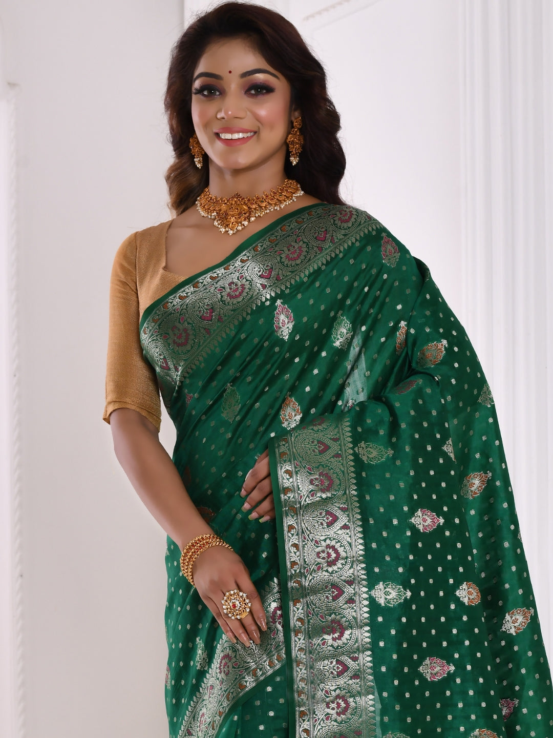 Green Zari Woven Embellished Brocade Banarasi Silk Saree