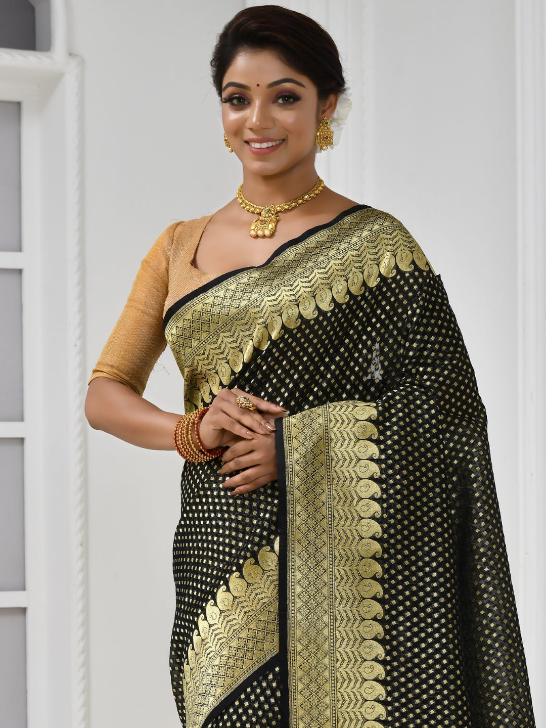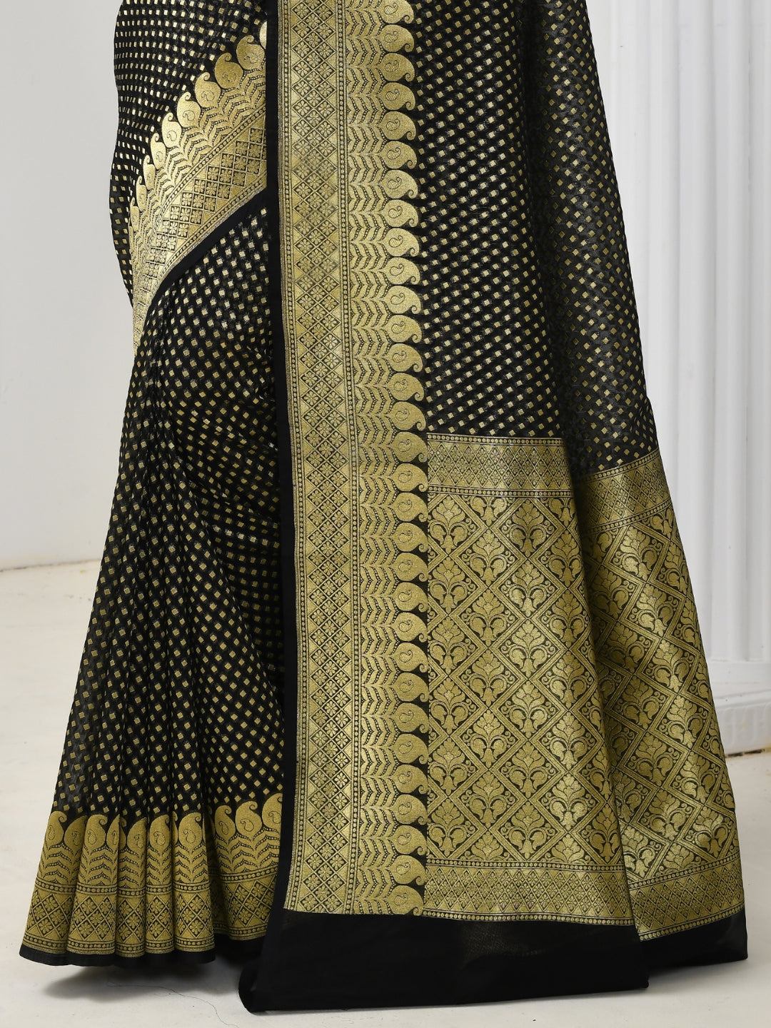 Black Golden Zari Woven Embellished Brocade Silk Saree