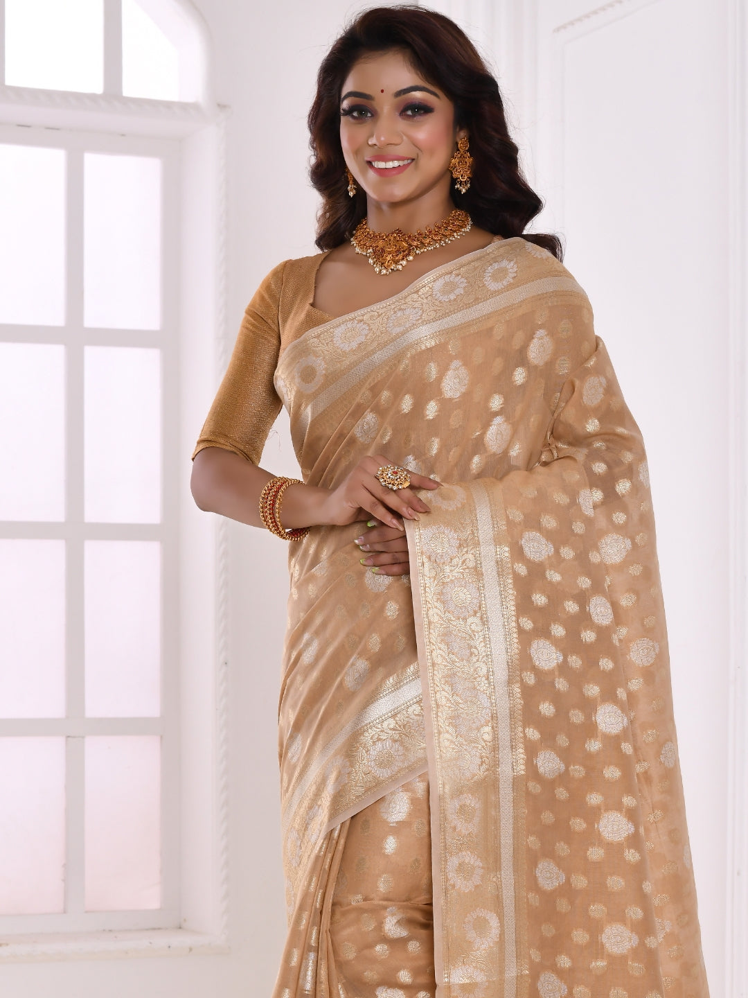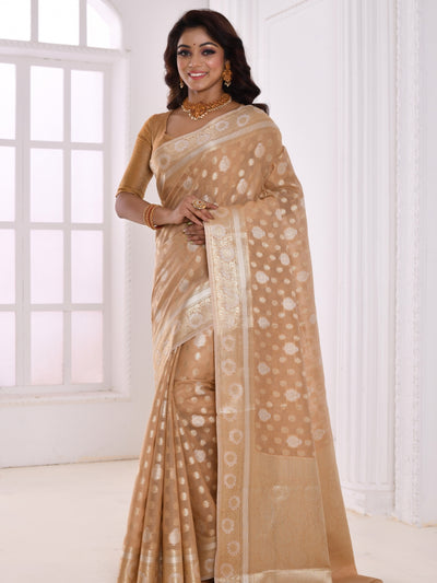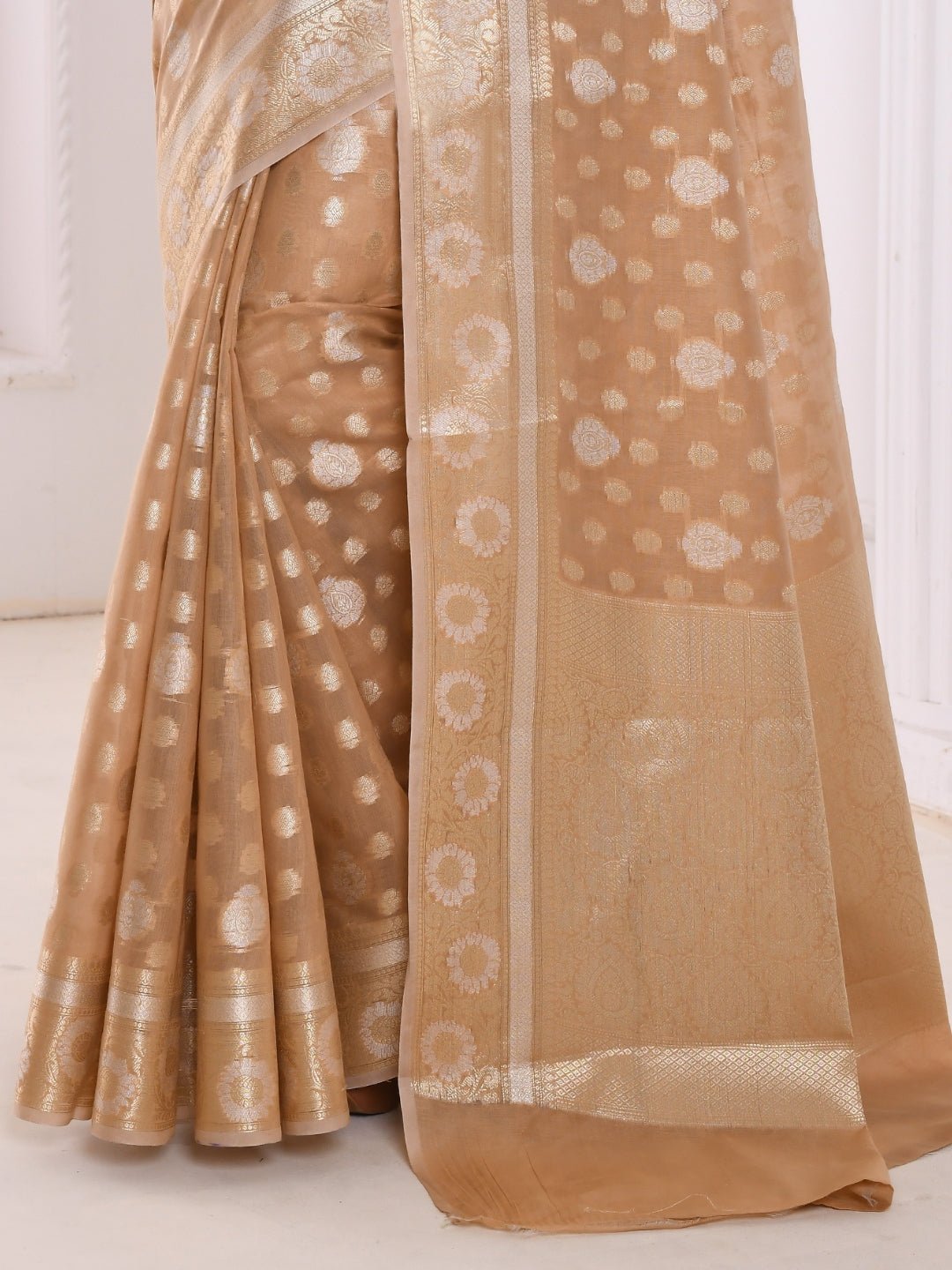 Cream Silver Zari Embroidered Traditional Chanderi Saree