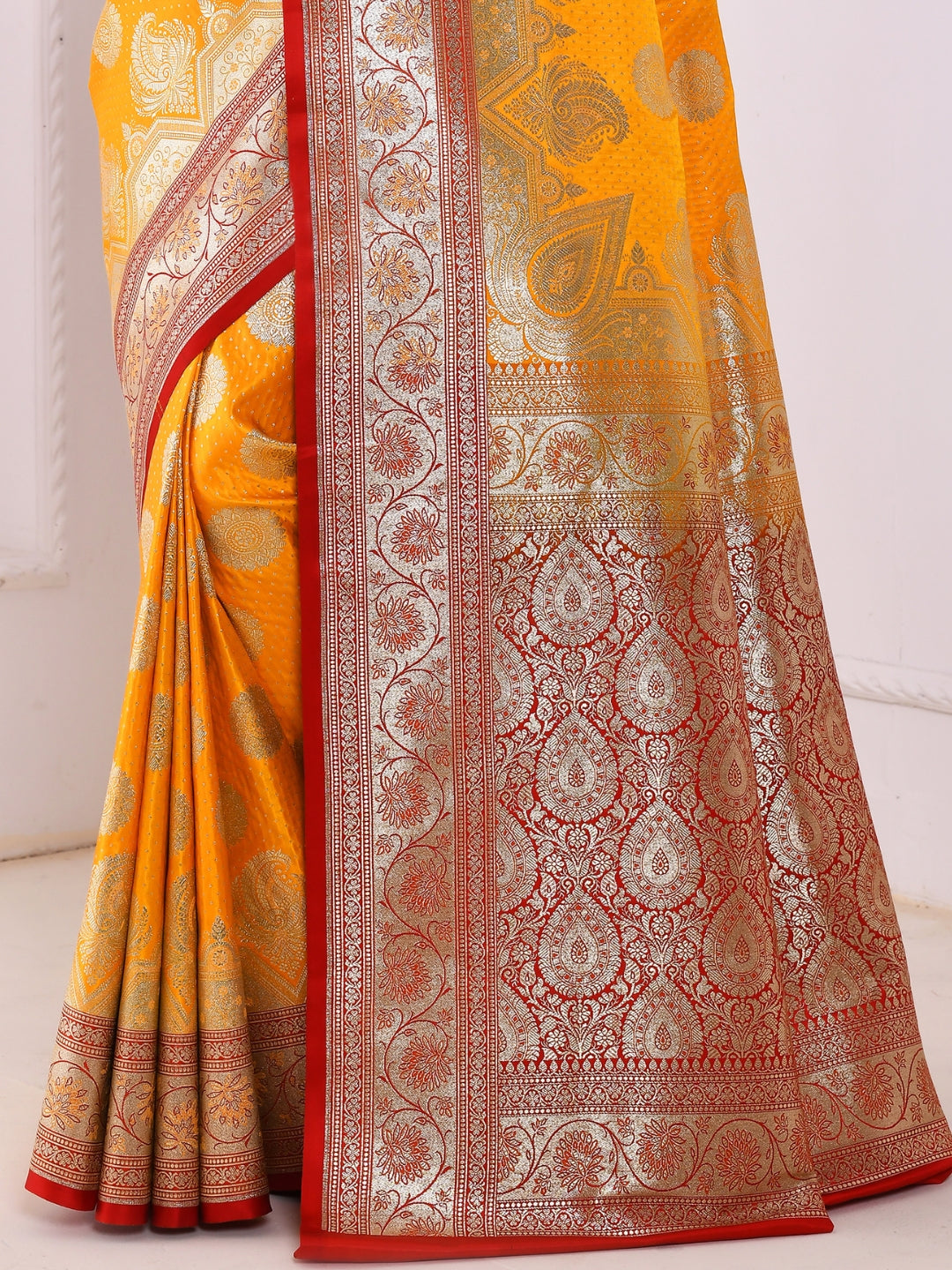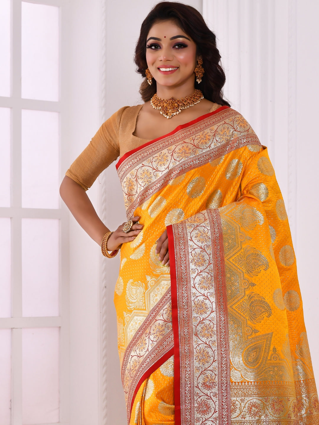 Bright Mustard Yellow Banarasi brocade Silk saree