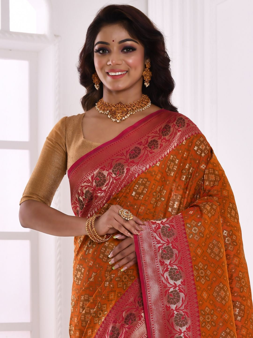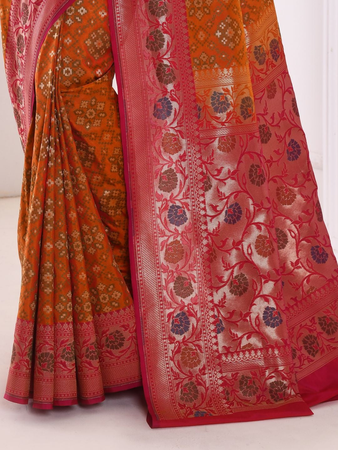 Mustard Zari Woven Embellished Banarasi Silk Saree
