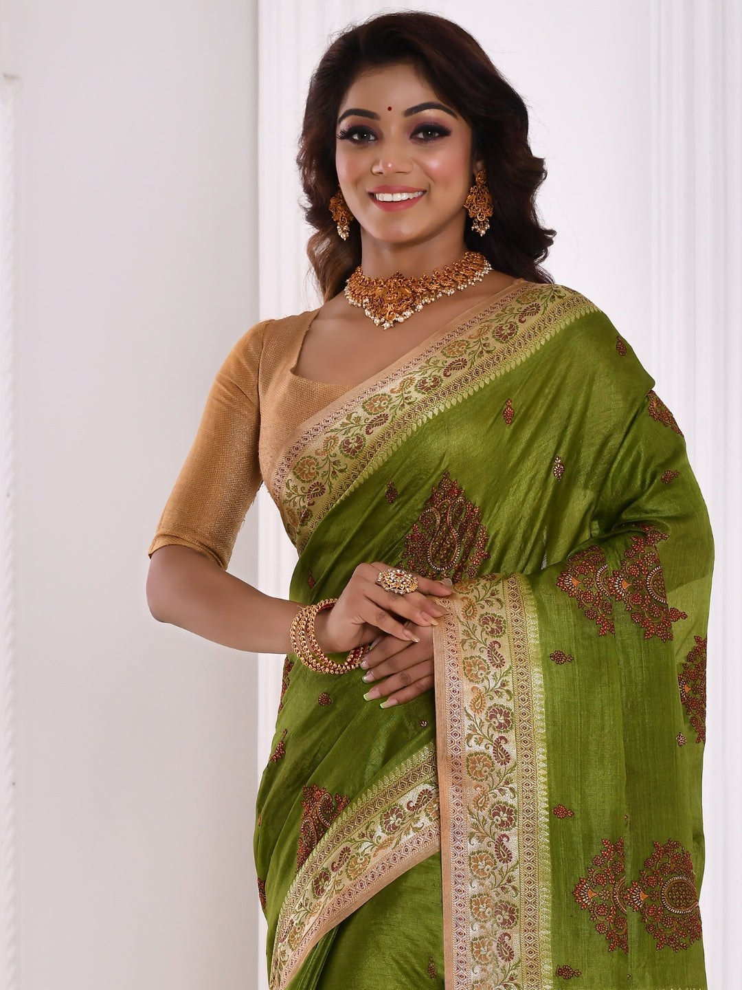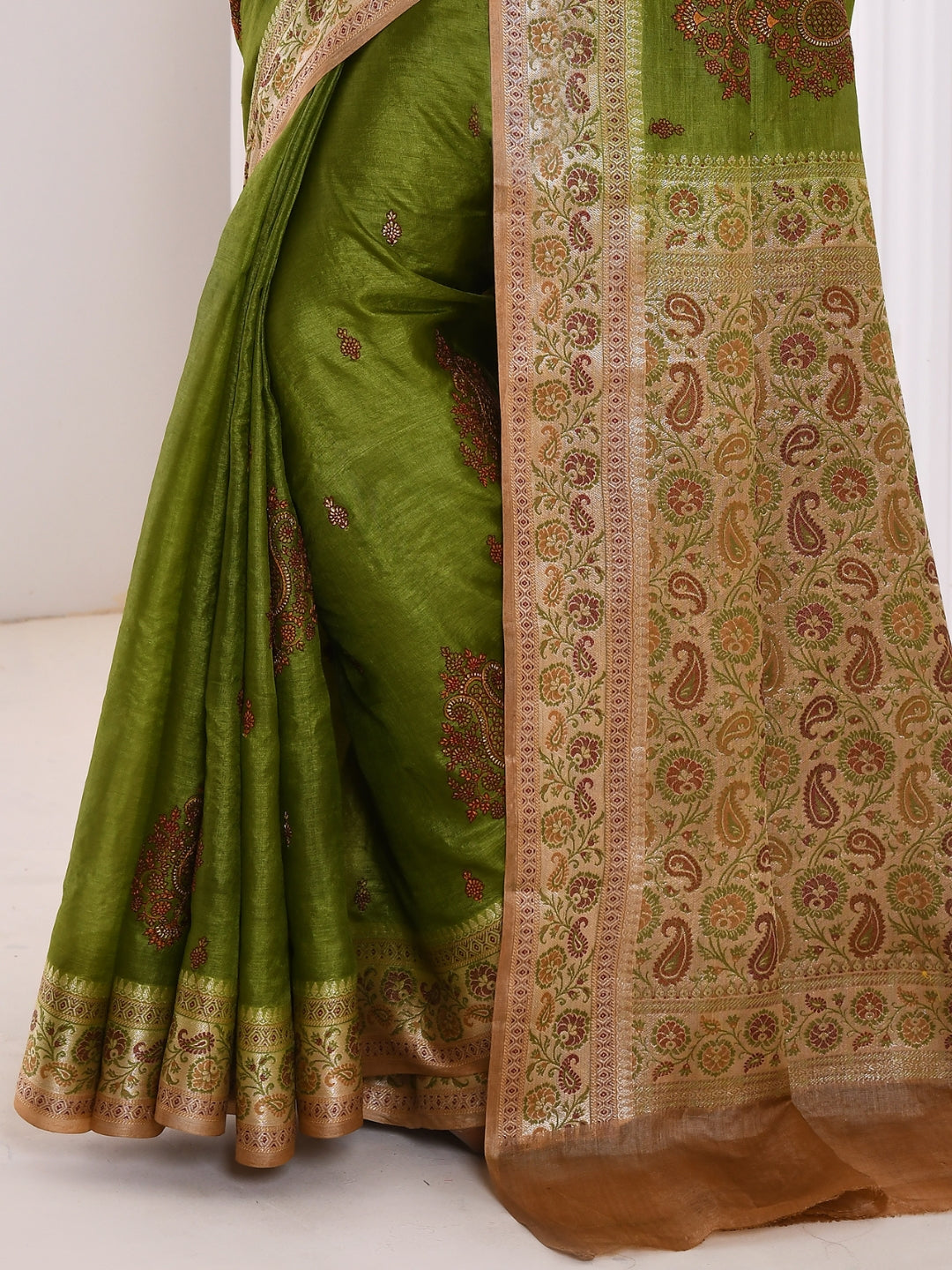 Green Resham Embroidered Embellished Silk Saree