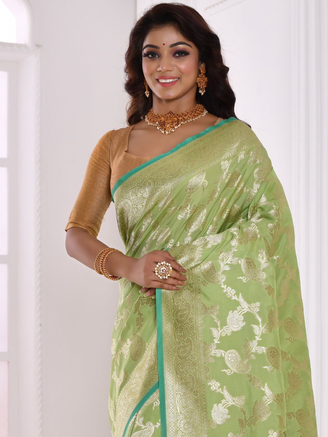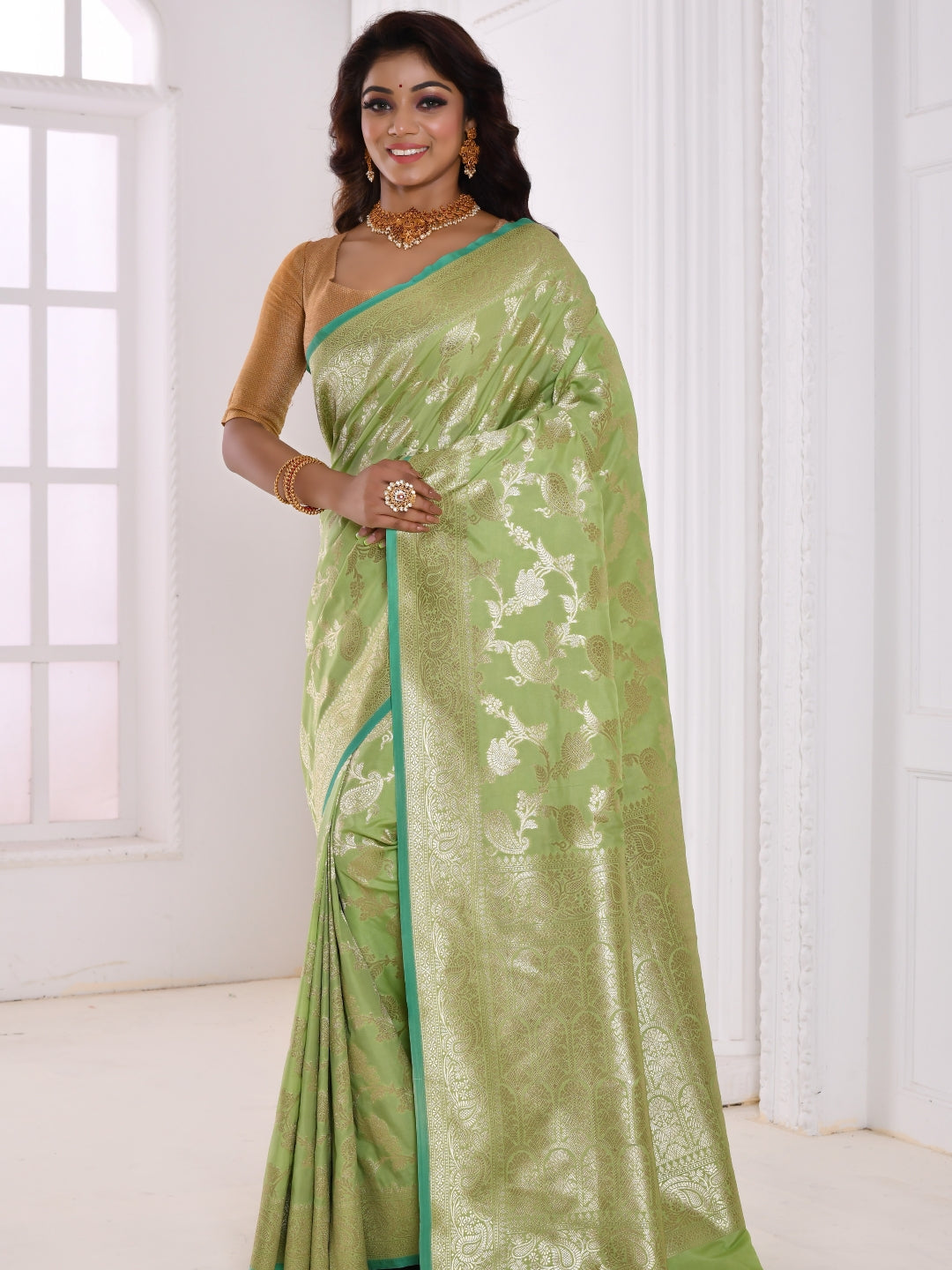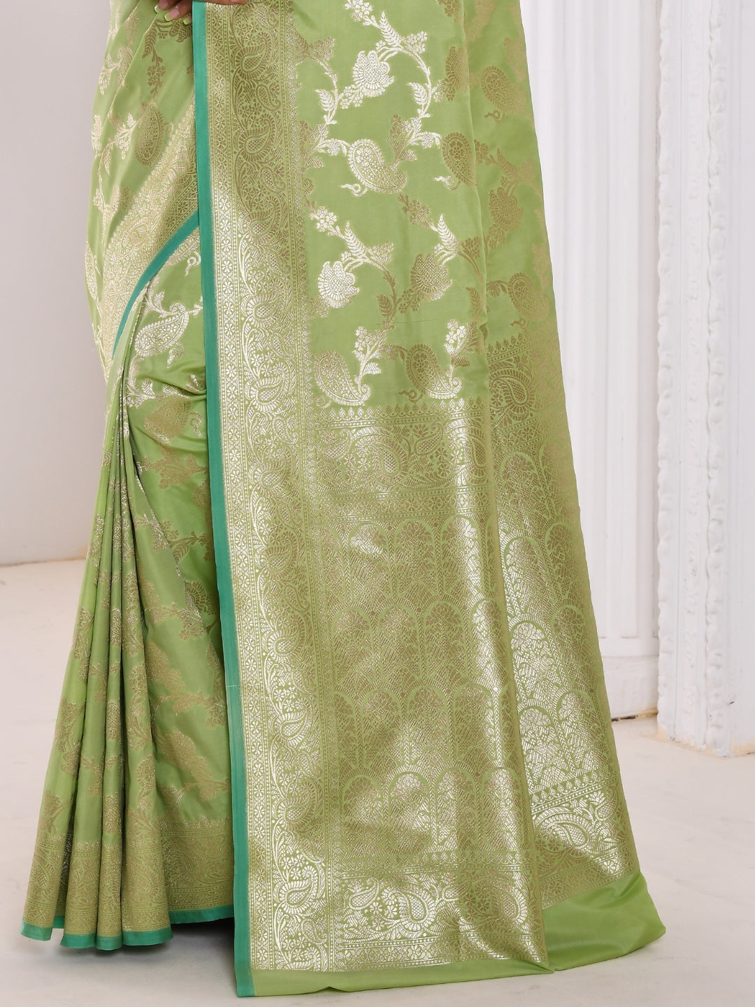 Green Silver Jaal Zari Woven Embellished Banarasi Silk Saree