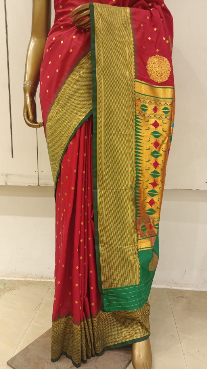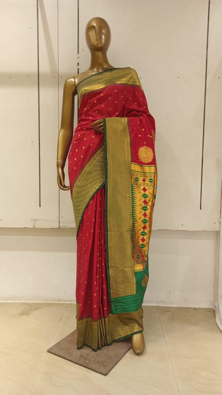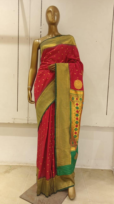 Chhabra 555 Red Banarasi Silk Traditional Saree With Contrast Pallu