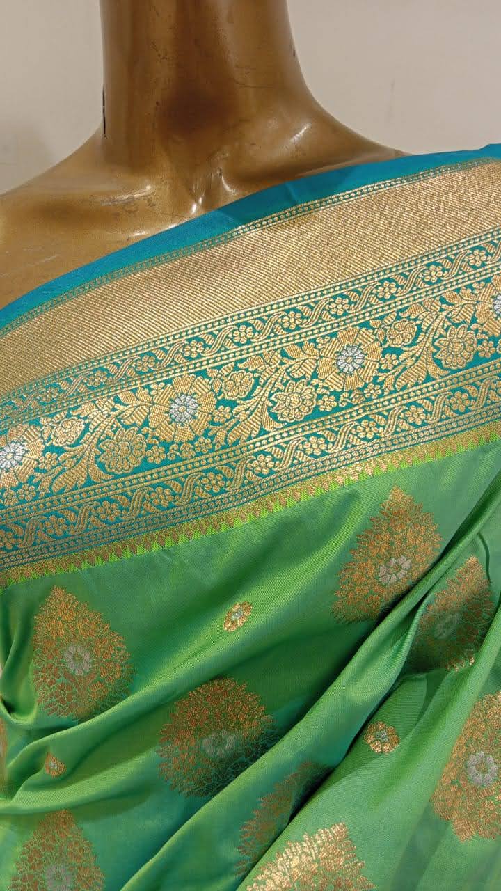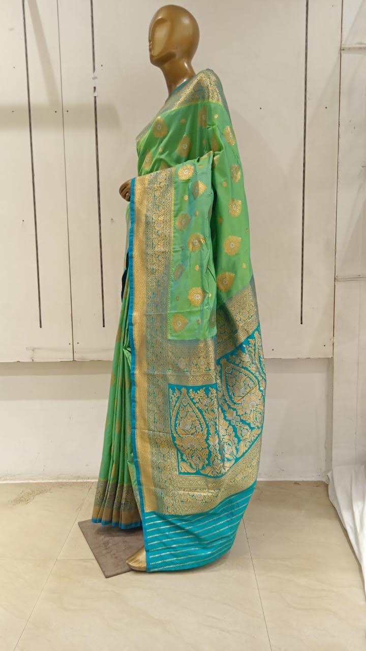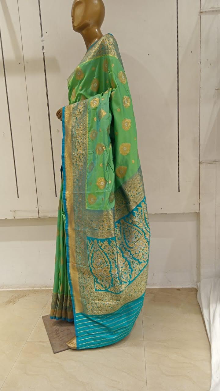 Chhabra 555 Sea Green Banarasi Silk Traditional Saree Embellished With Contrast Pallu & Border