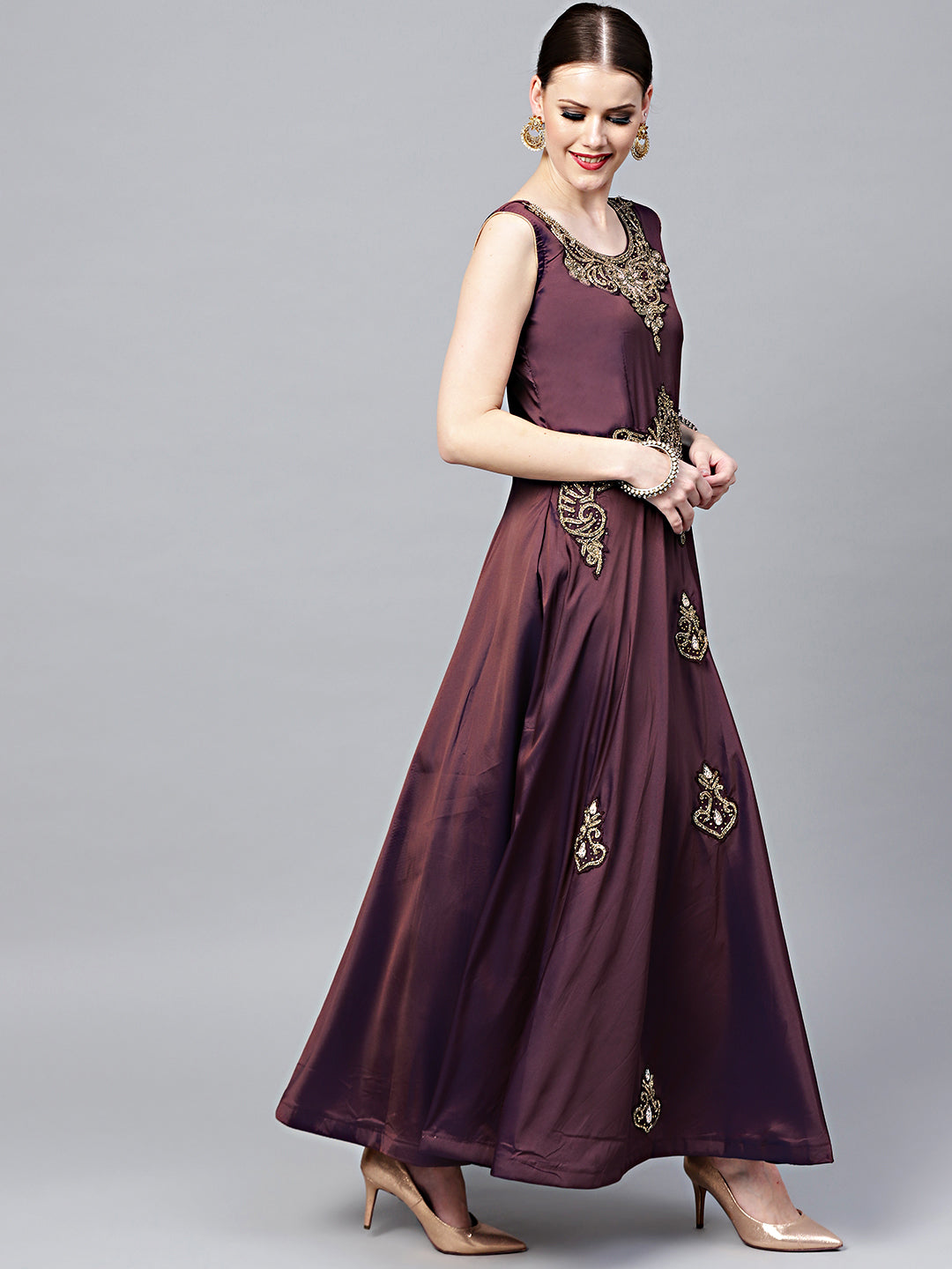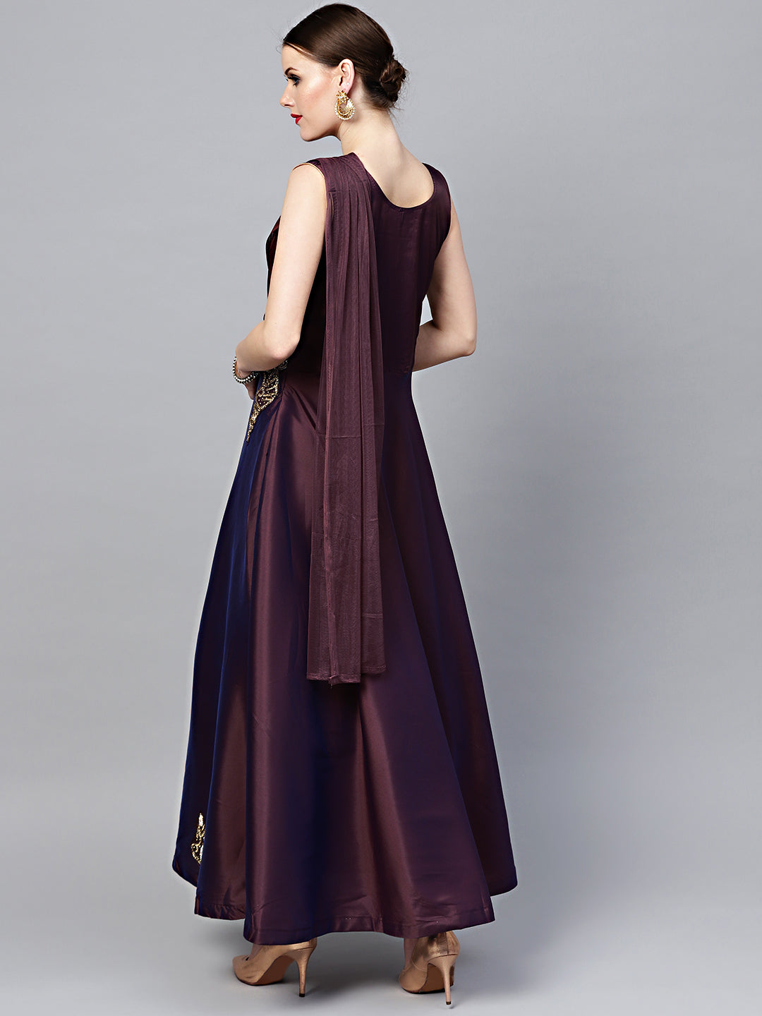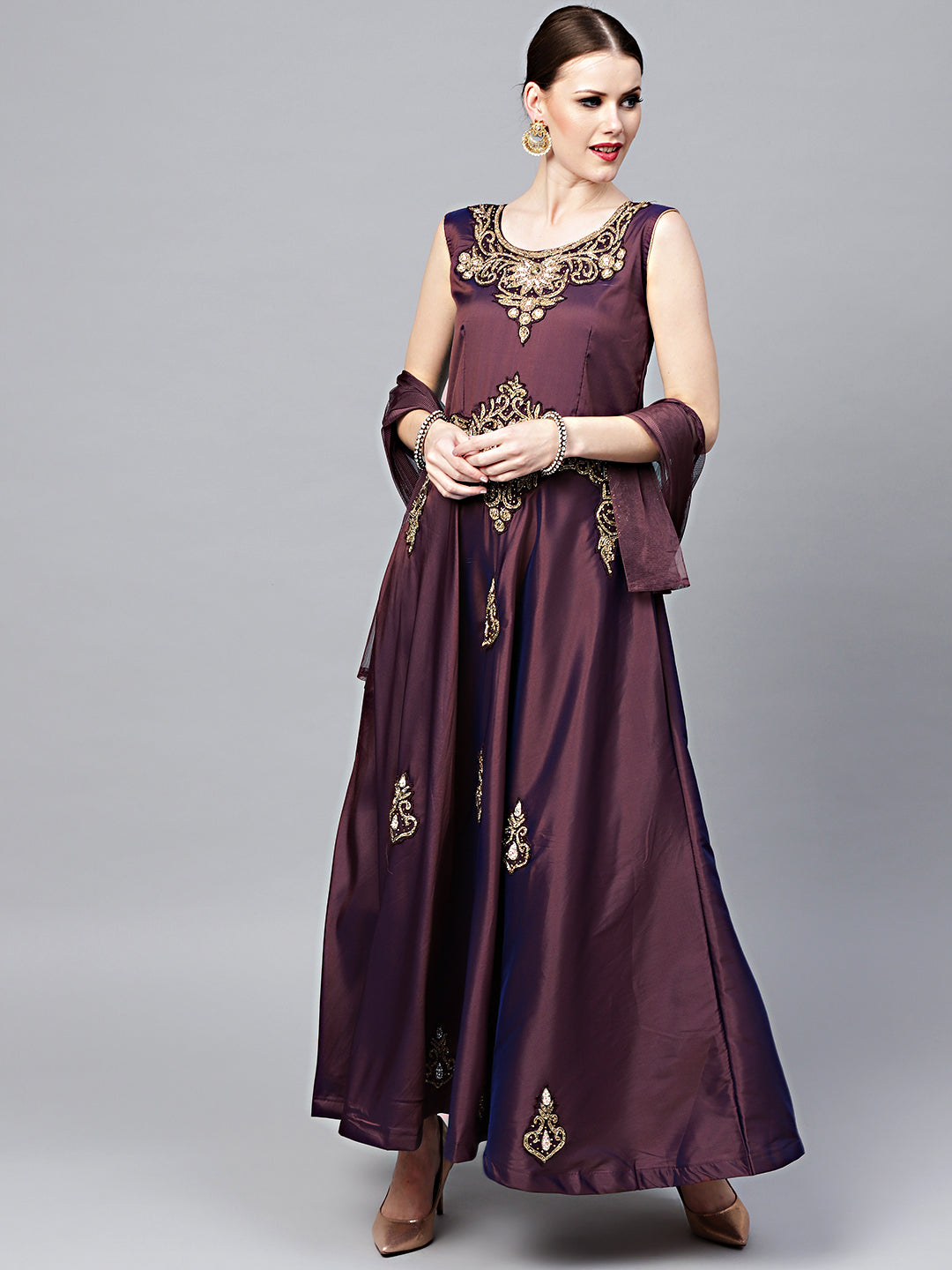 Kundan Embroidered Silk Floor Length Flared Suit