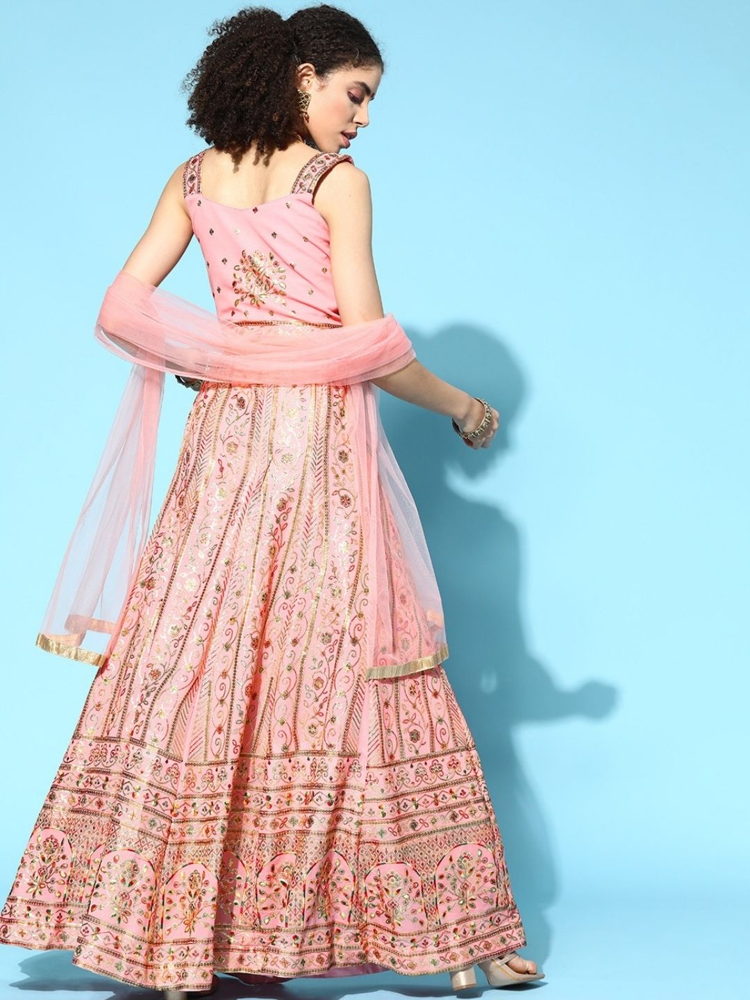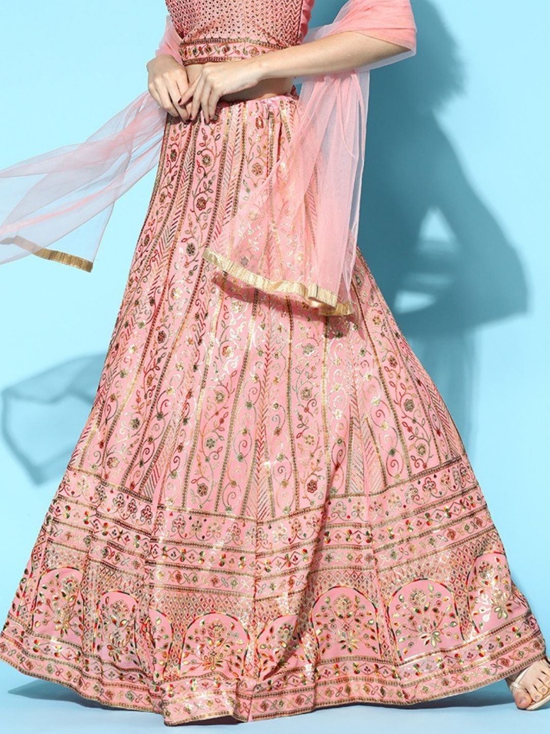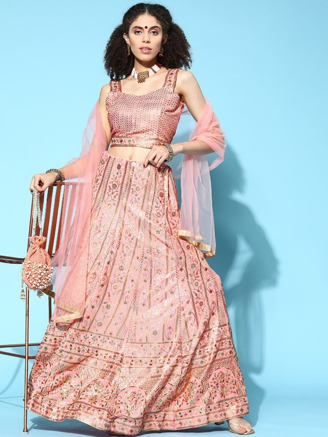 Made to Measure Pastel Rose Gold Sequence & Resham Embroidery Georgette Lehanga Set