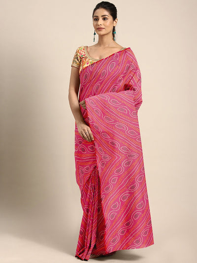 Pink Jaipuri Tie & Dye Bandhej Printed Traditional Chiffon Saree