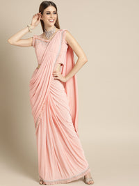 Ruffled Pre-Draped Lycra Cocktail Saree with Net Frills and Cutdana Tassled Border