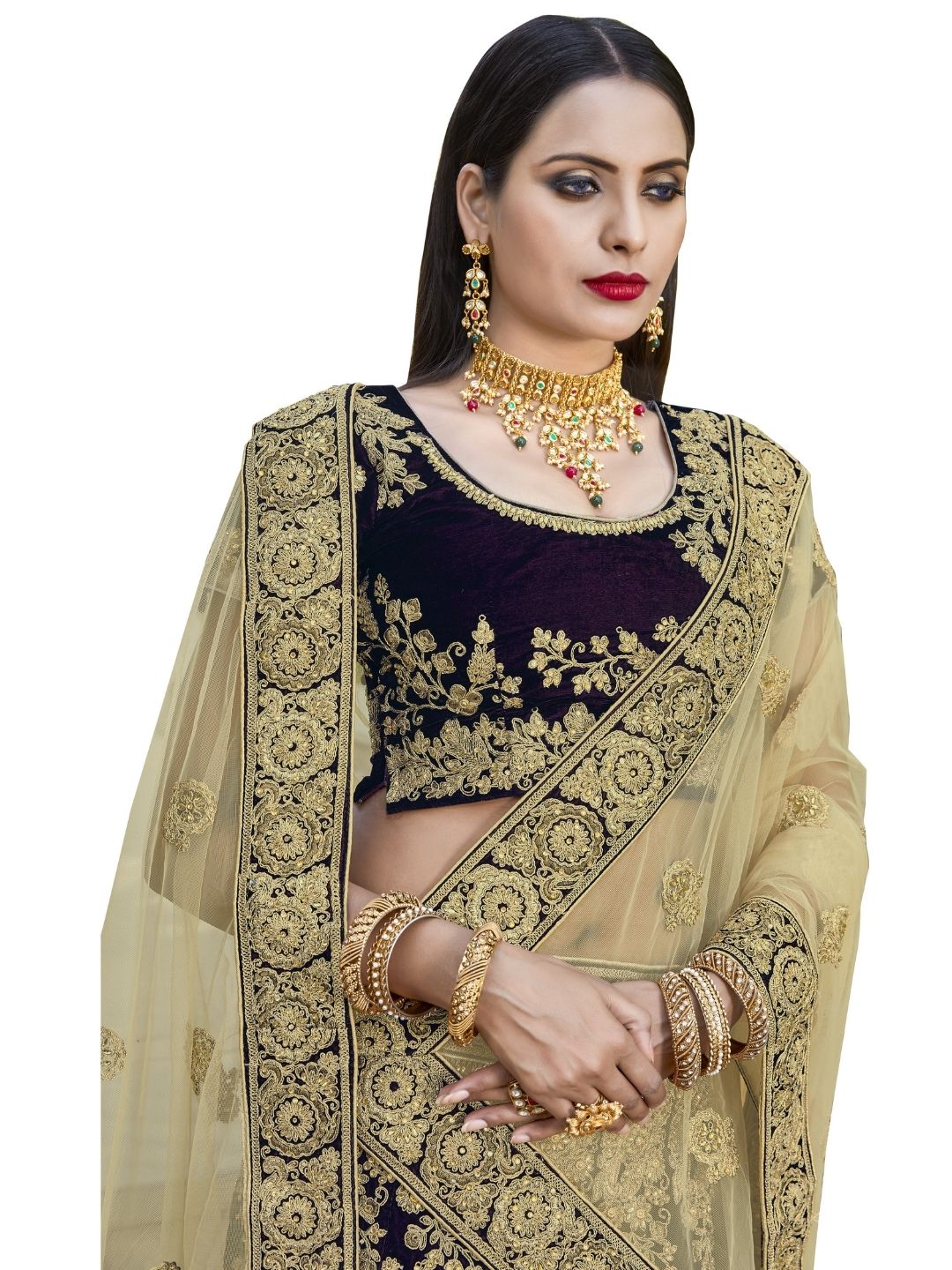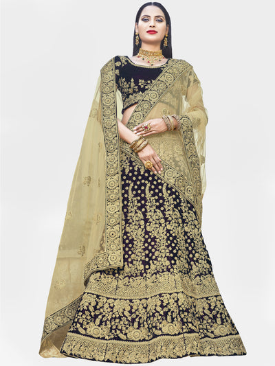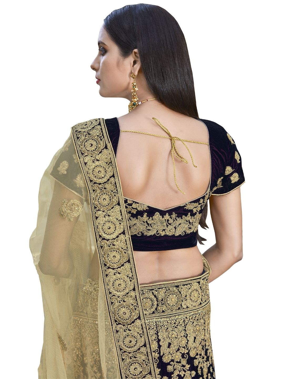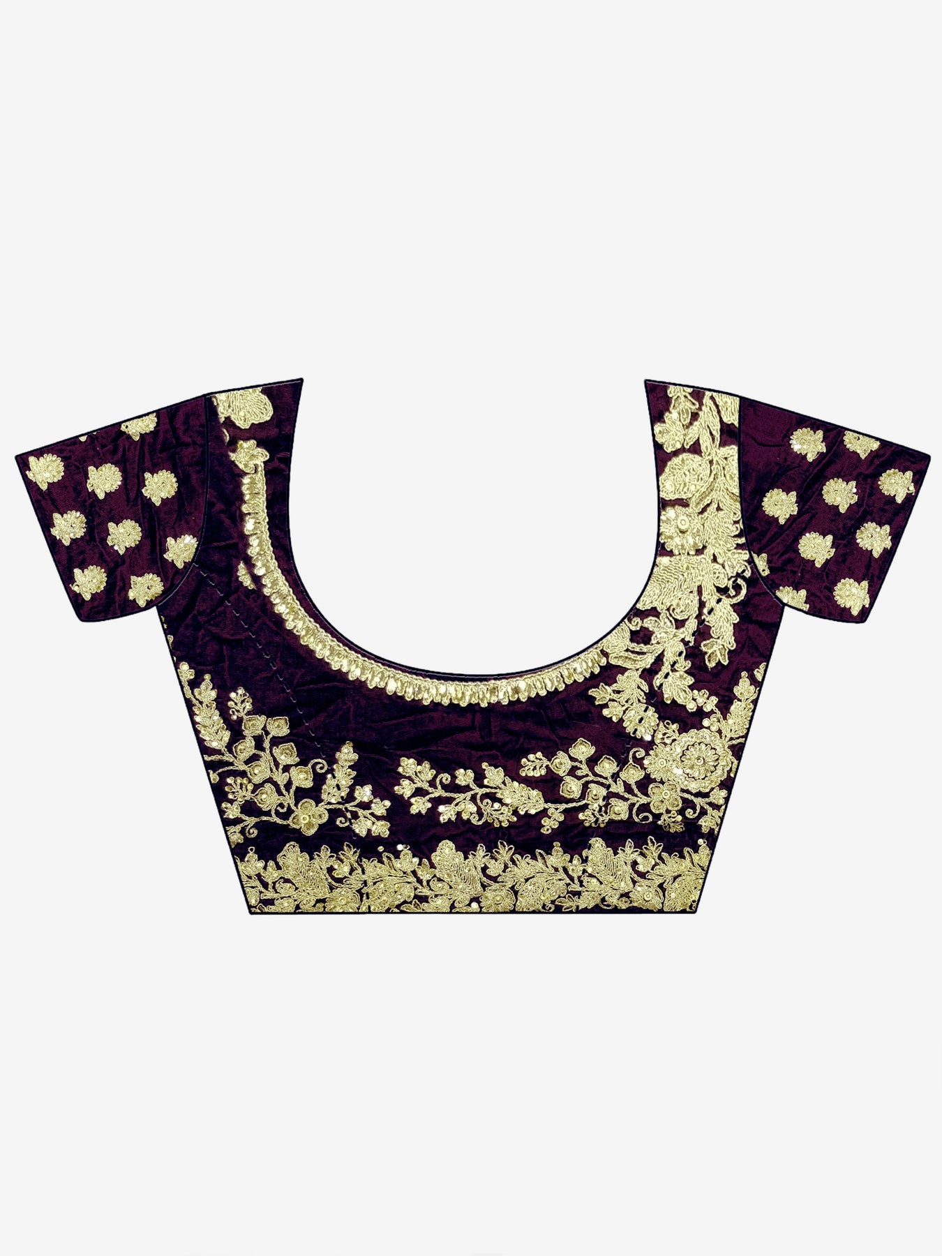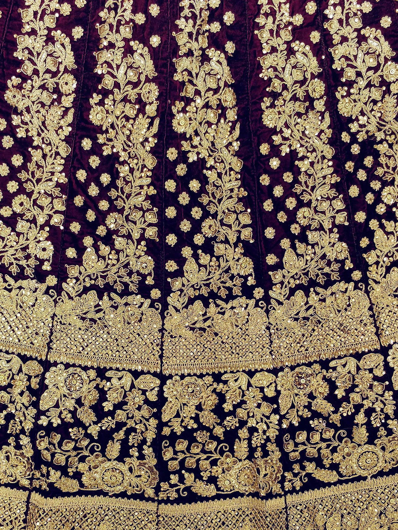 Maroon Velvet Heavy Zari Embroidery Semi Stitched Lehenga Choli with Gold Dupatta