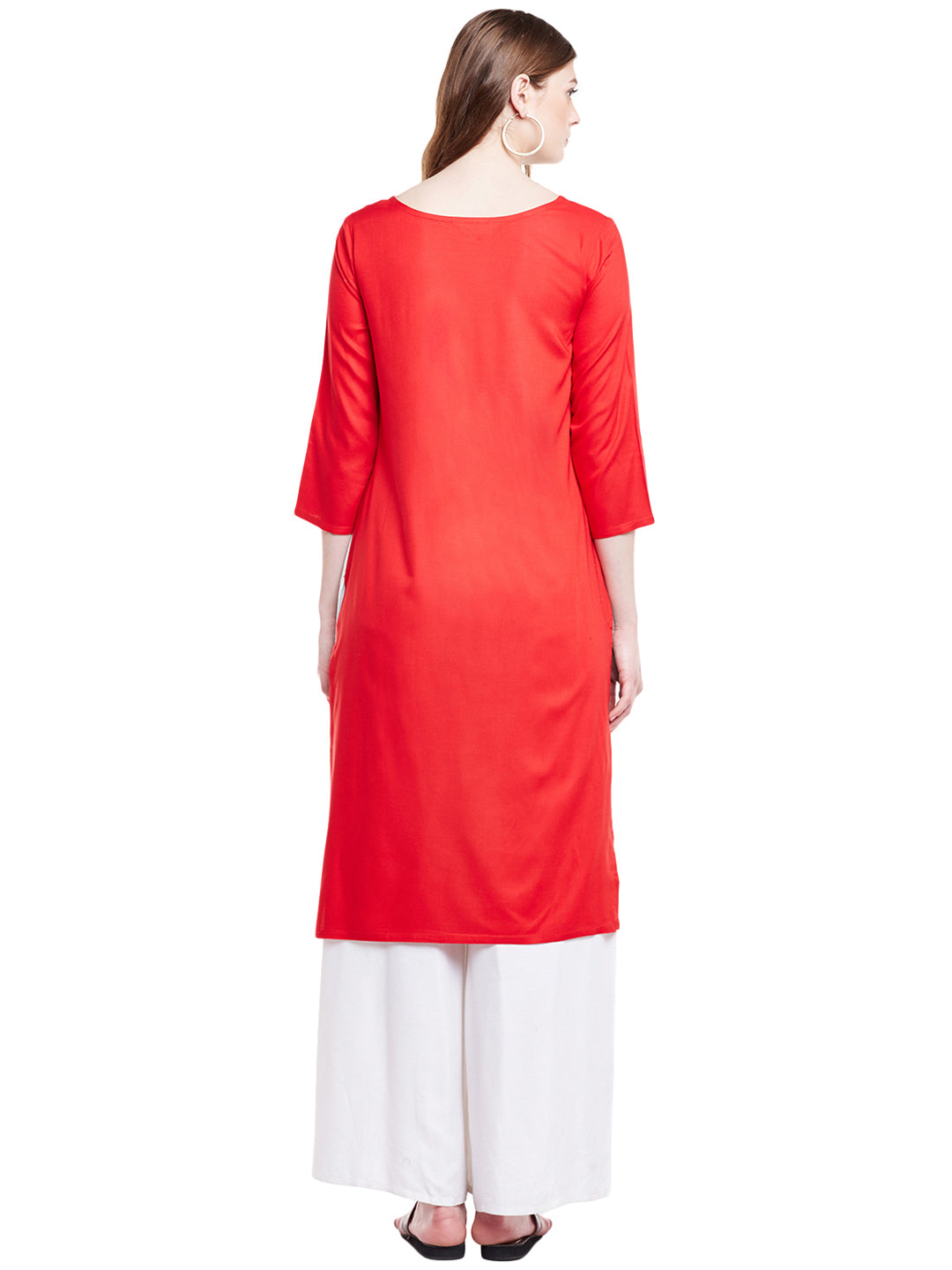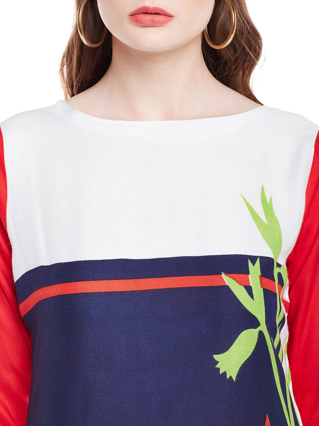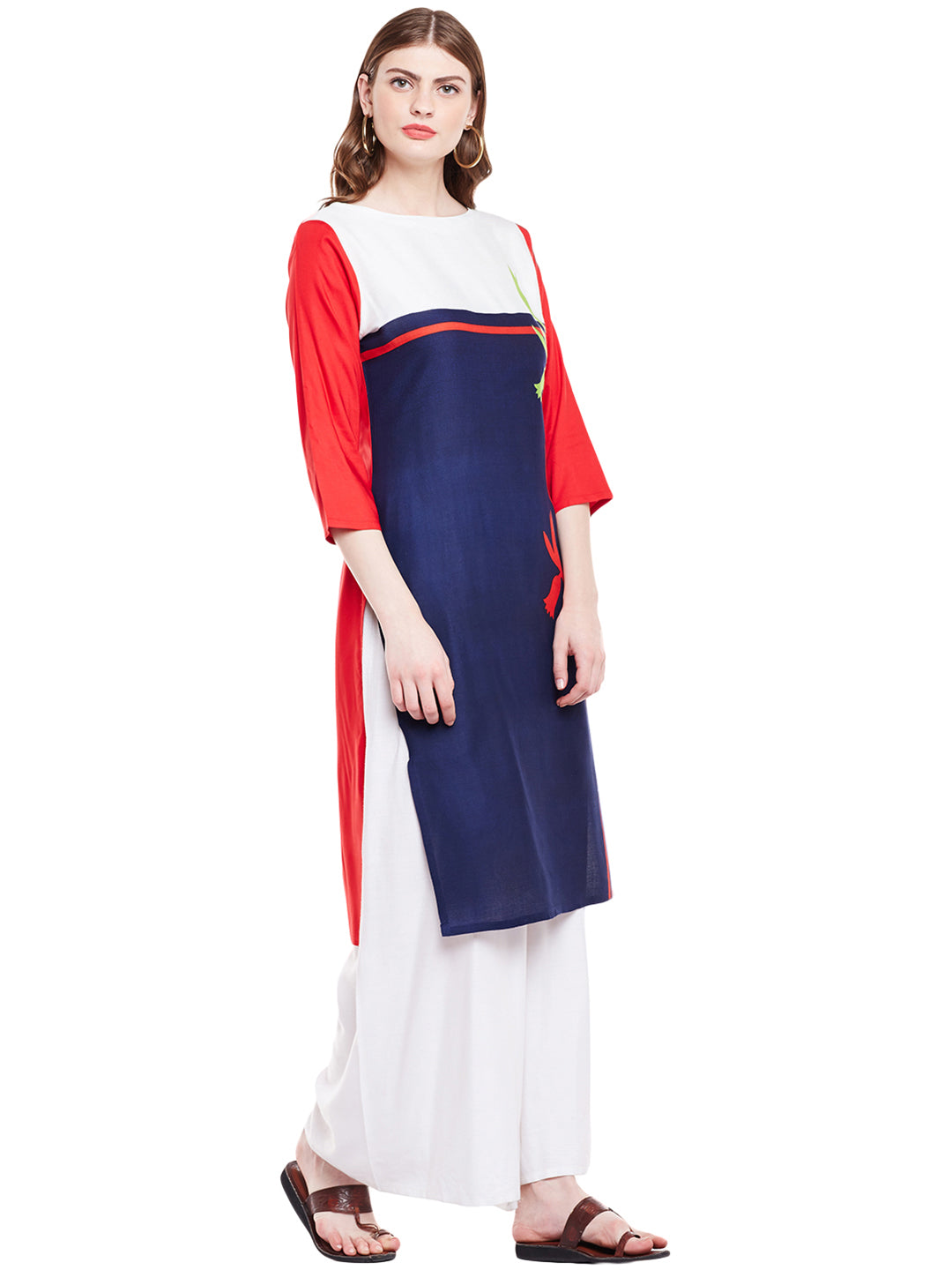 Blue & Red Cotton Casual Straight Readymade Kurti