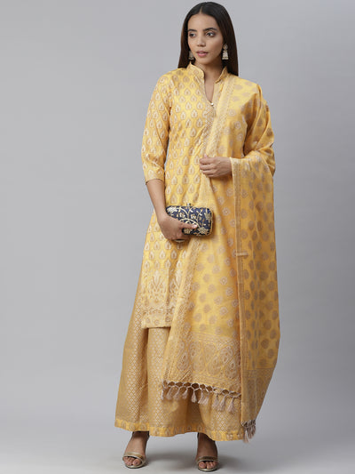 Handloom Chanderi Kurta Set with Resham Weave Paisley Pattern & Banarasi Dupatta