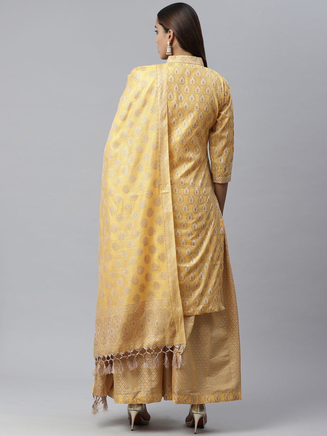 Chhabra 555 Handloom Chanderi Kurta Set with Resham Weave Paisley Pattern & Banarasi Dupatta