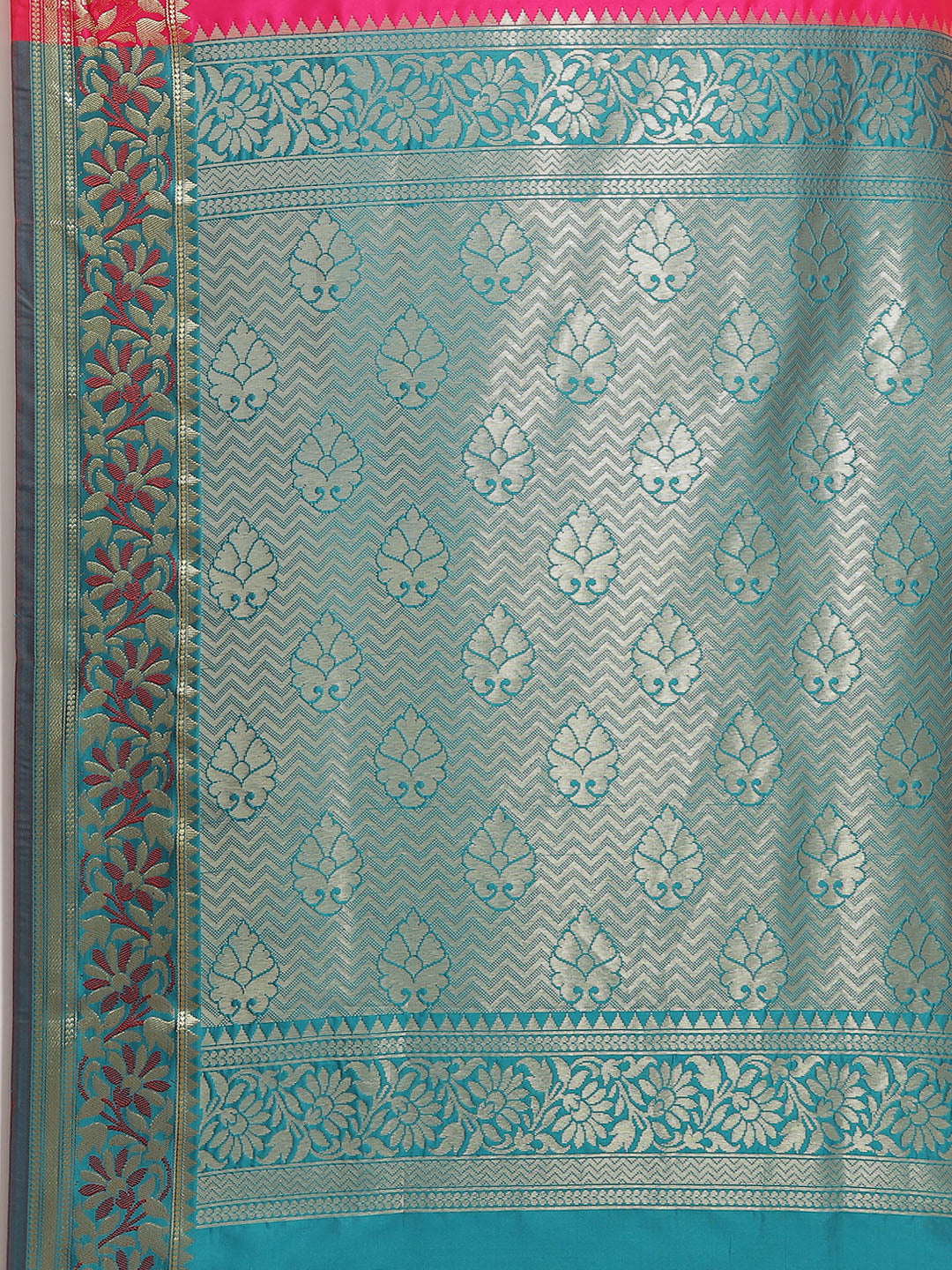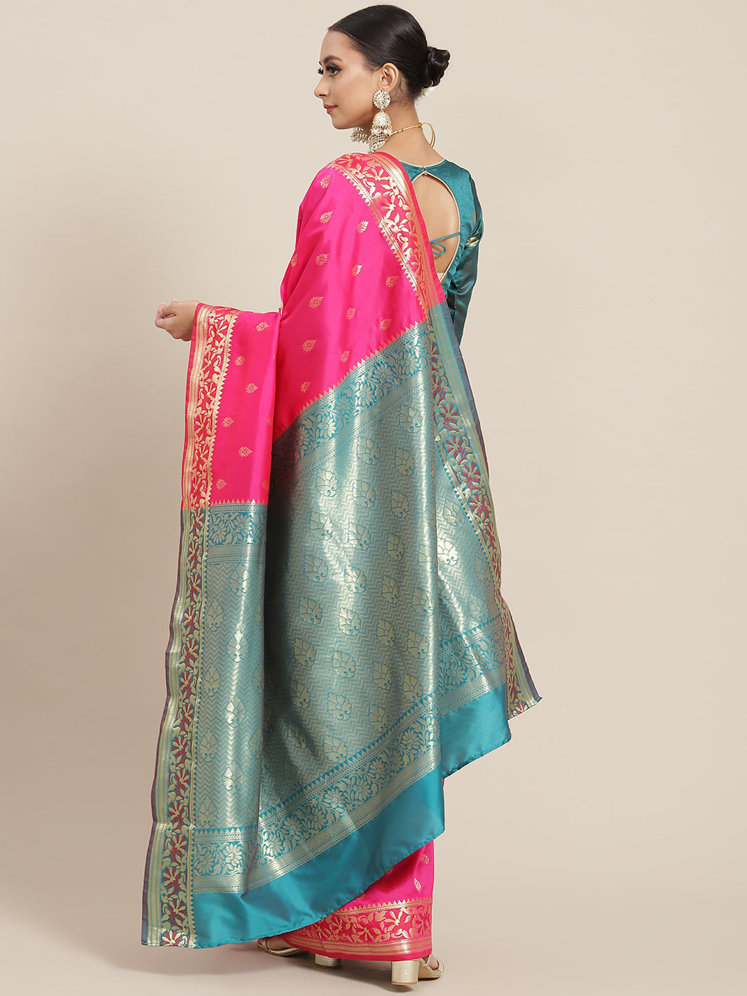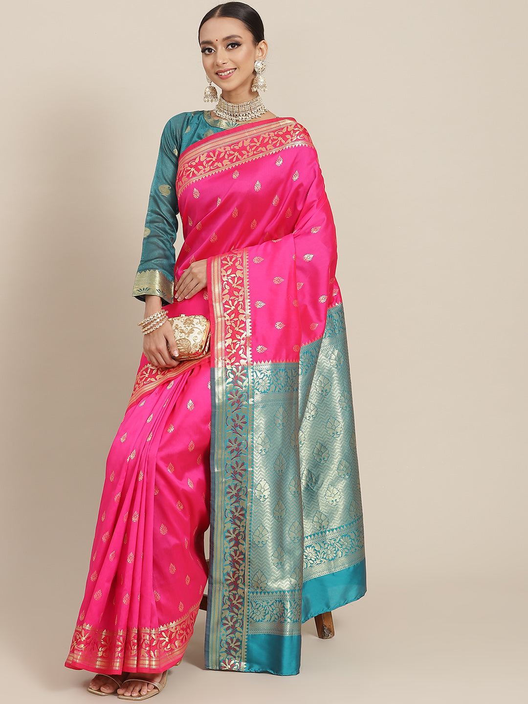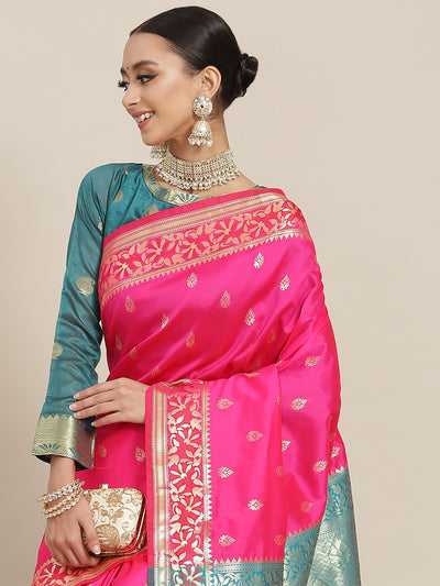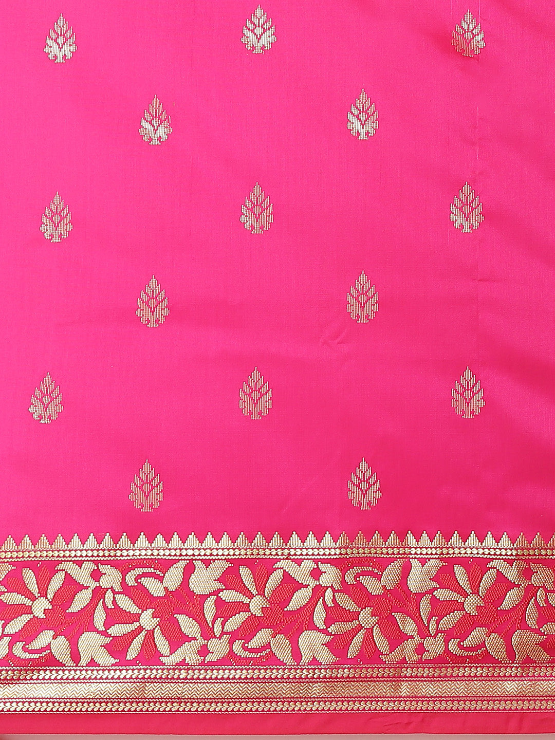 Fuchsia Pink Floral Motifs Banarasi Silk Saree with Contrast Pallu