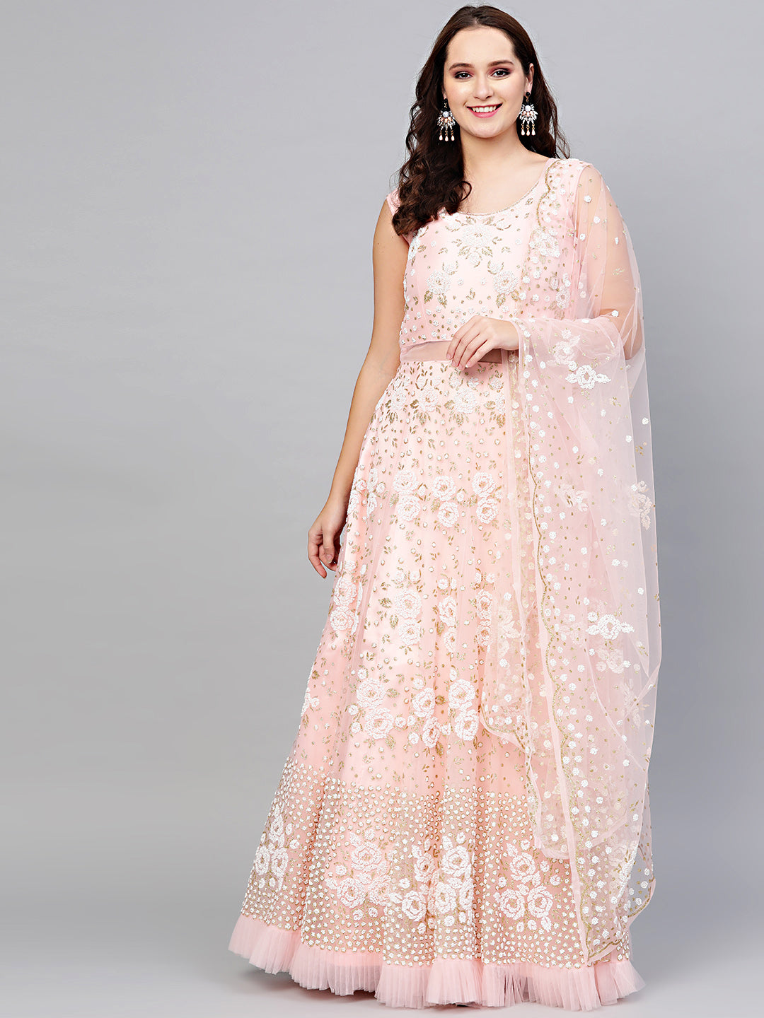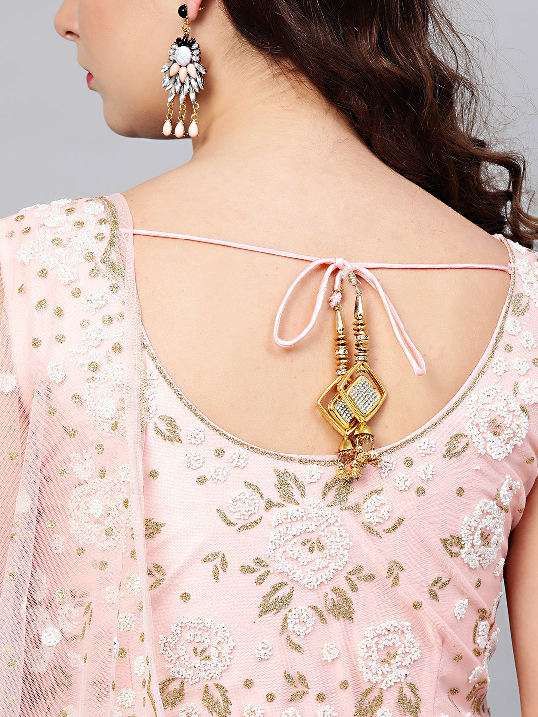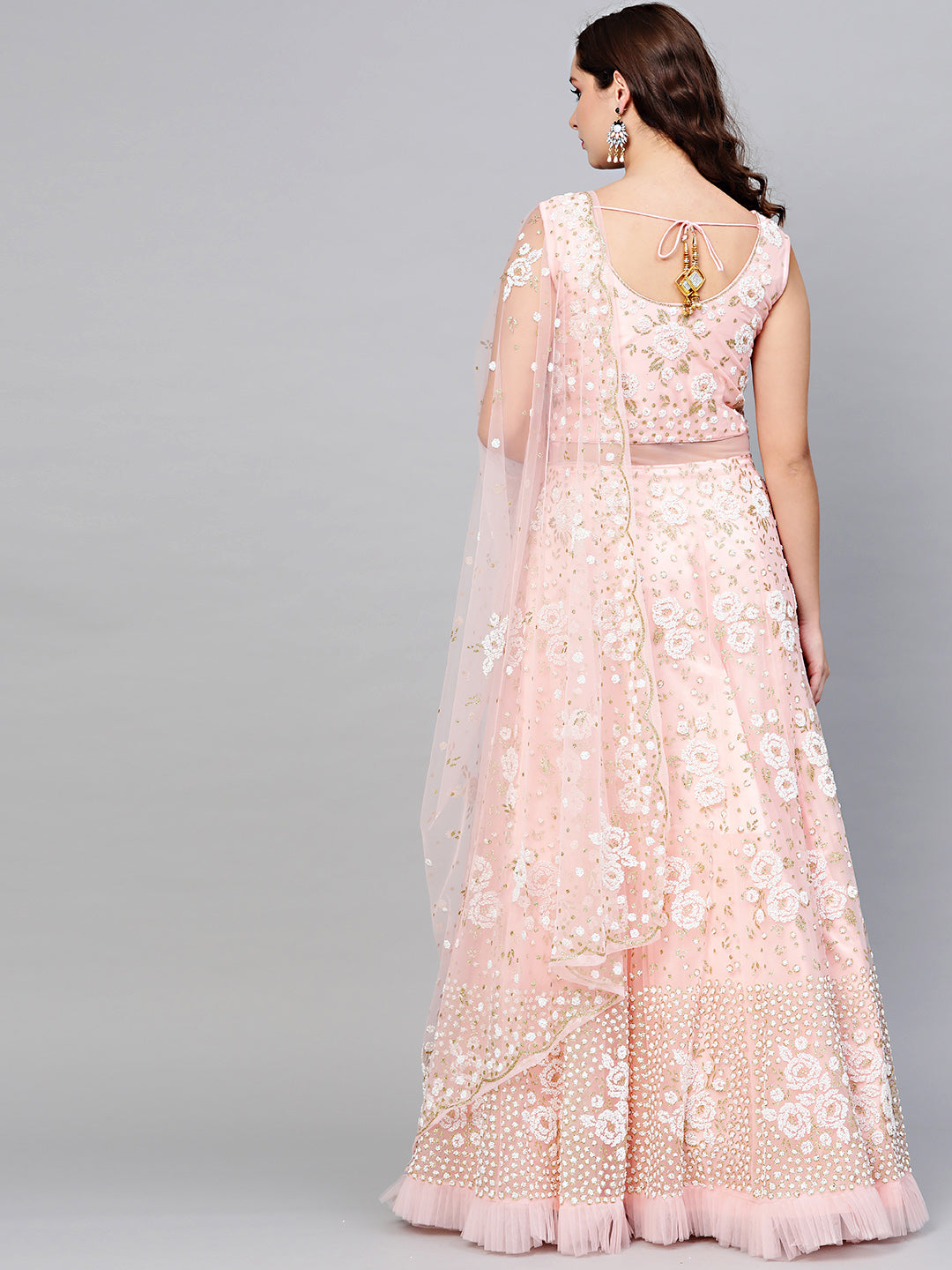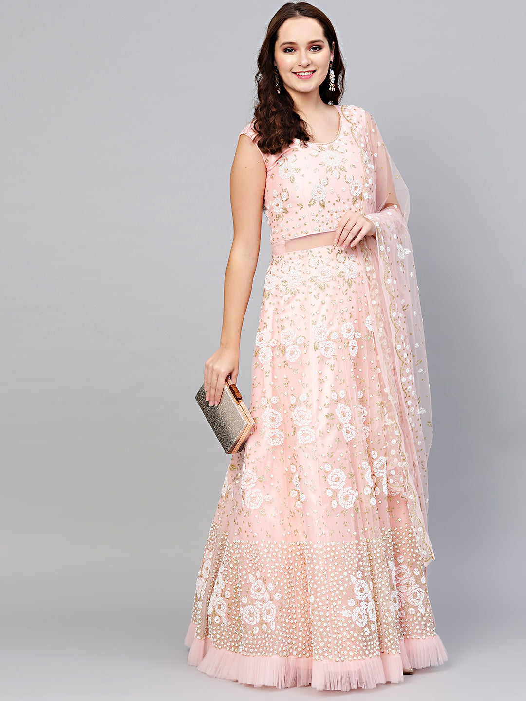 Pearl embellished Cocktail Gown with Ruffled Hemline