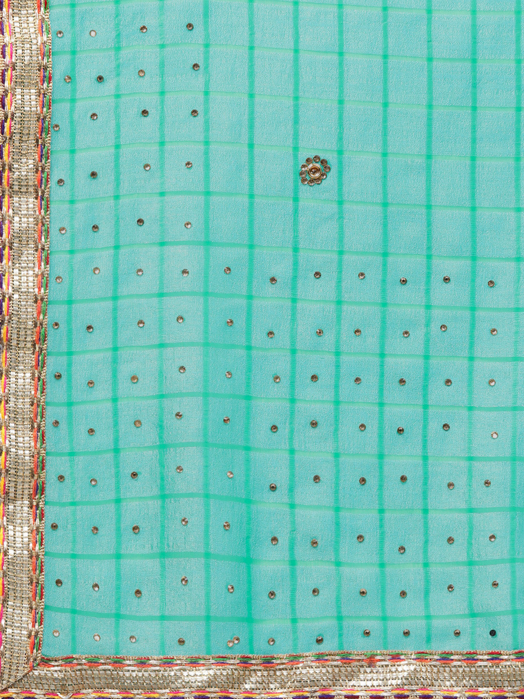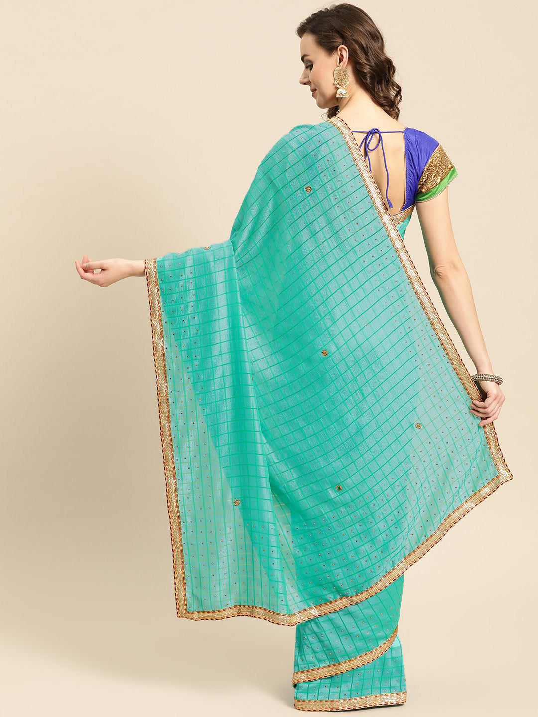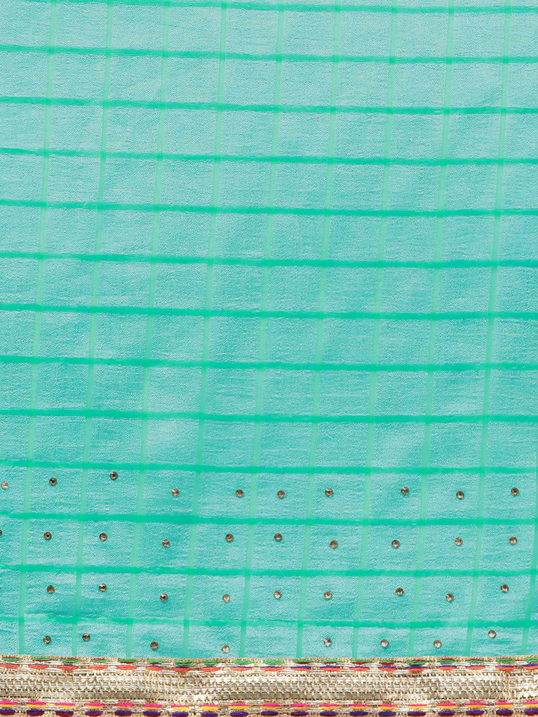 Chhabra 555 Crepe Checked Saree with Gharchola Weaving, Multicolor border and Crystal embellishments