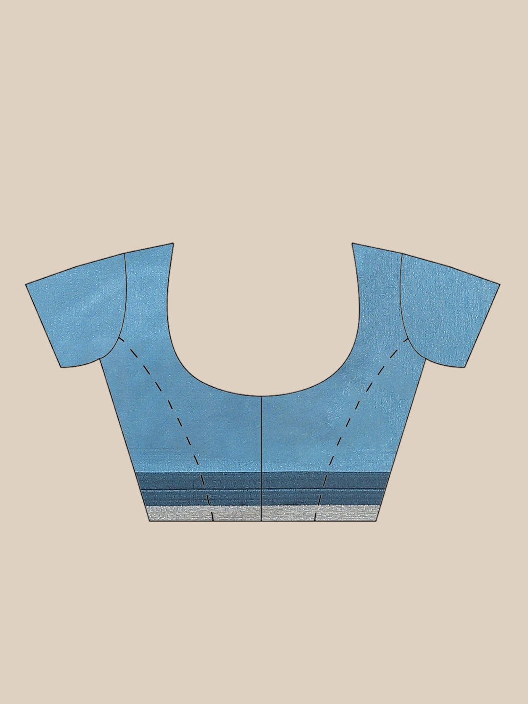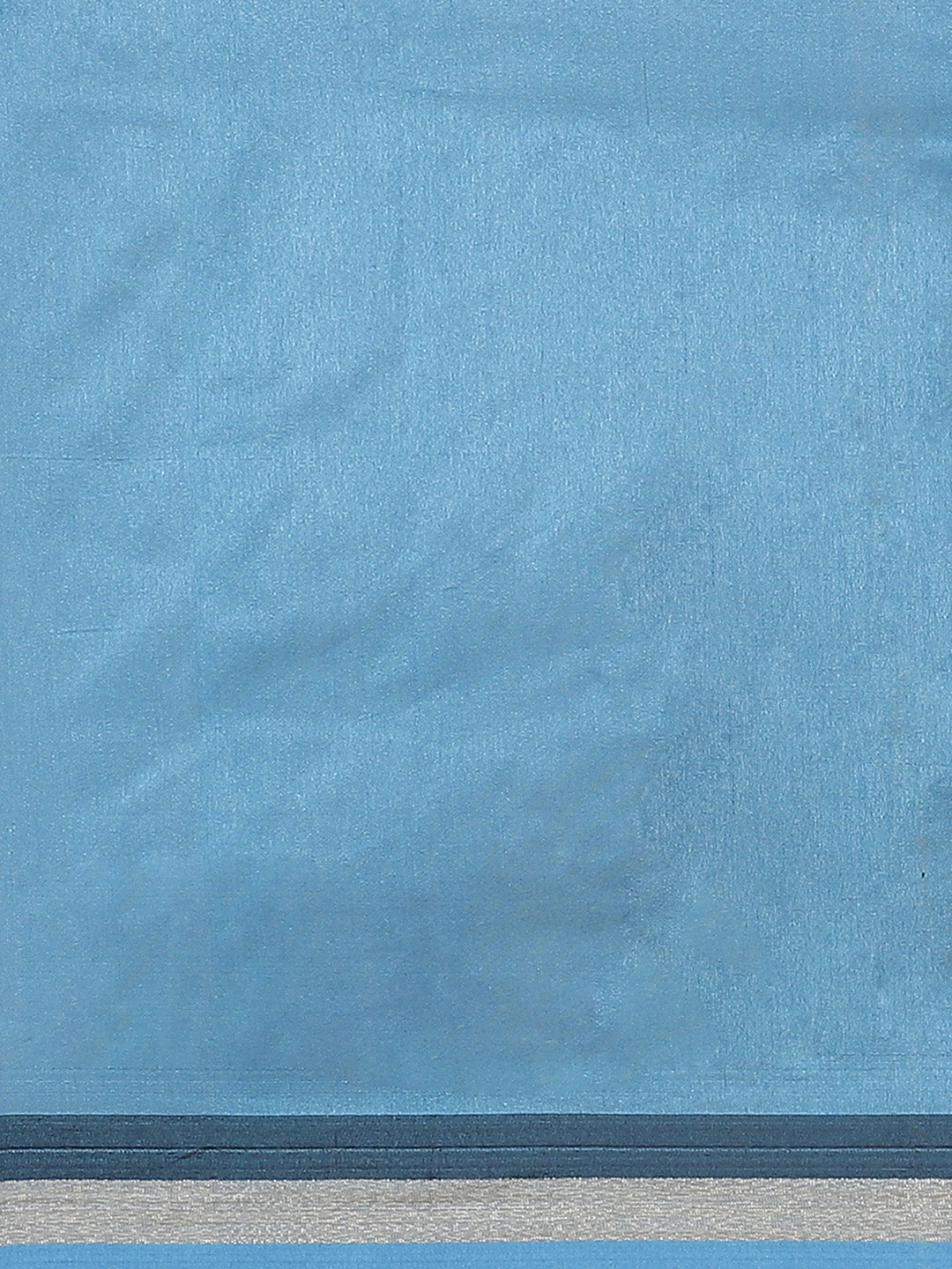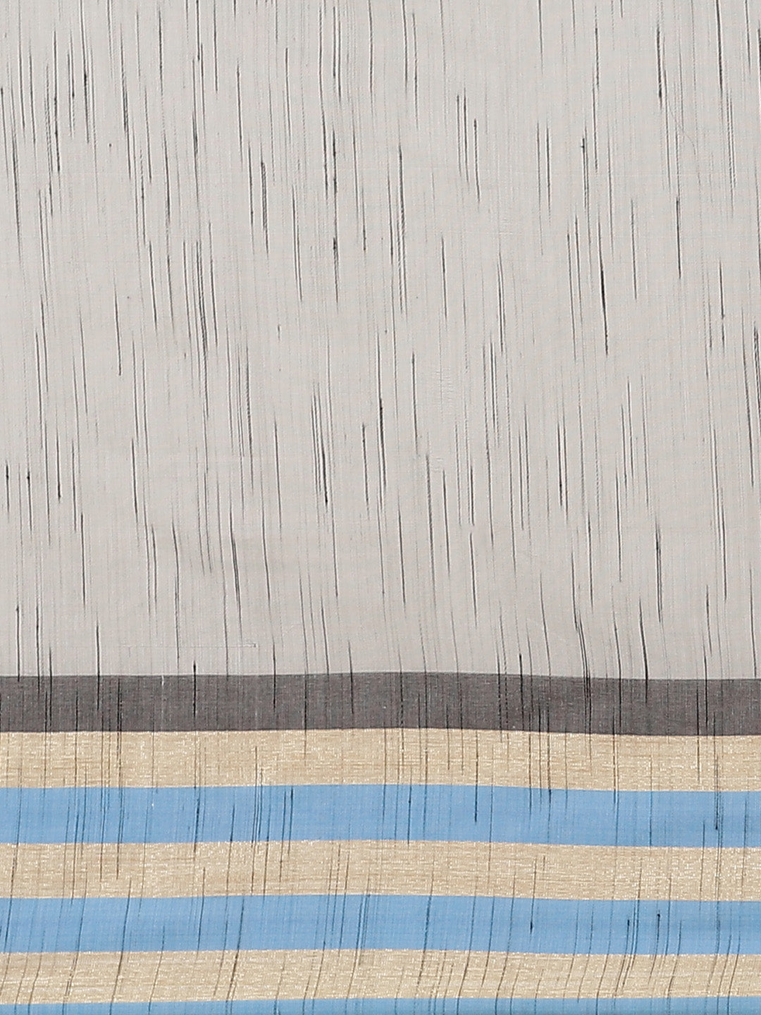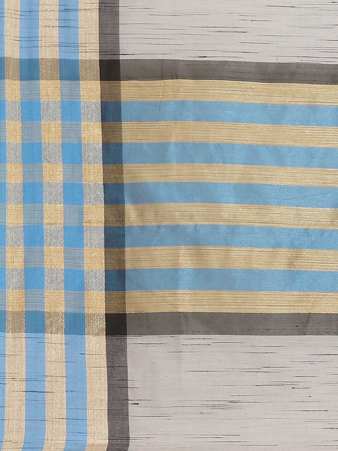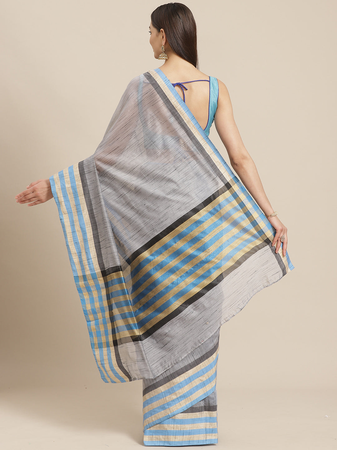 Grey Mangalagiri Jute Silk Saree with Colorblocked Contrast Color Striped Border & Pallu