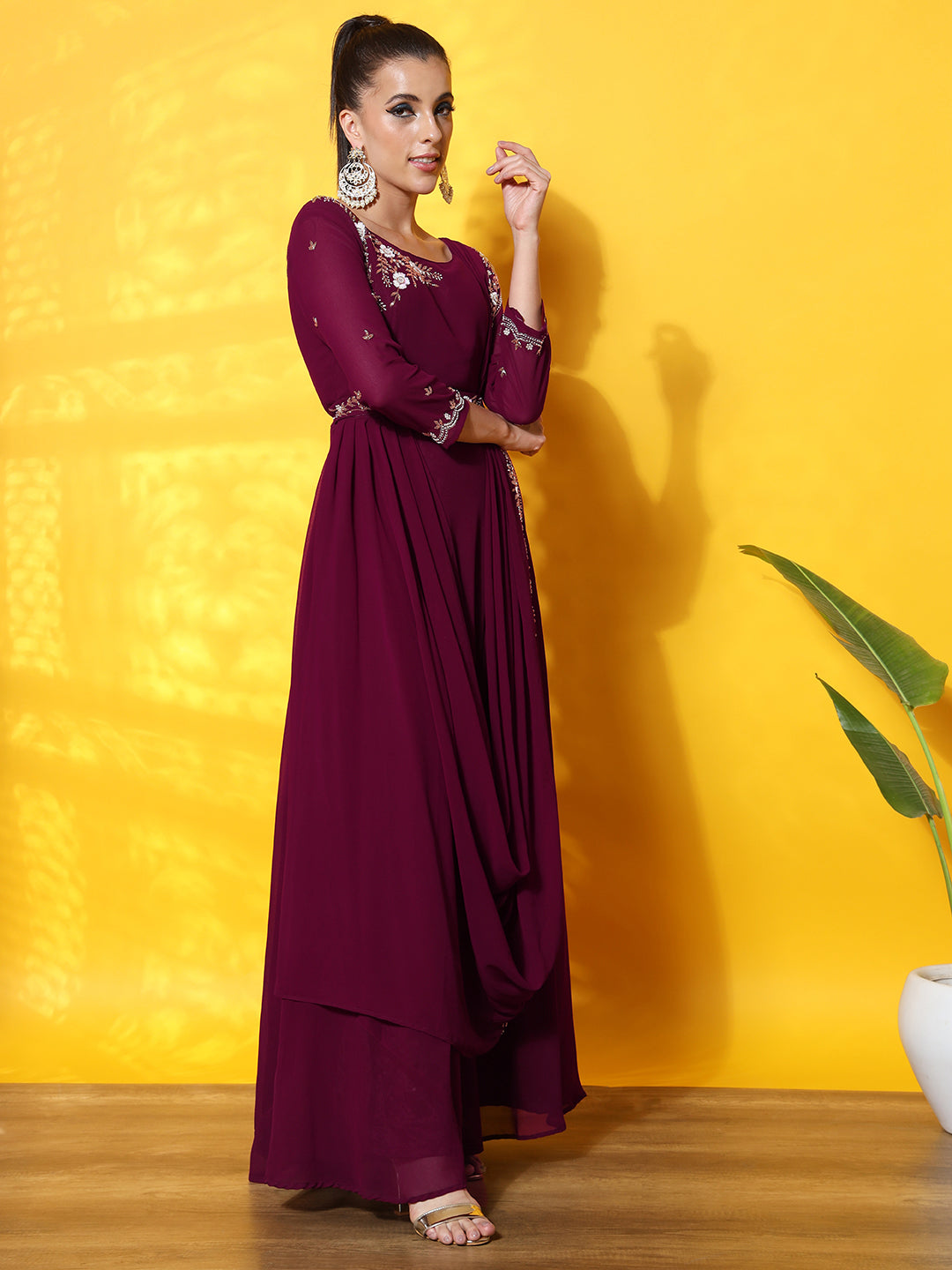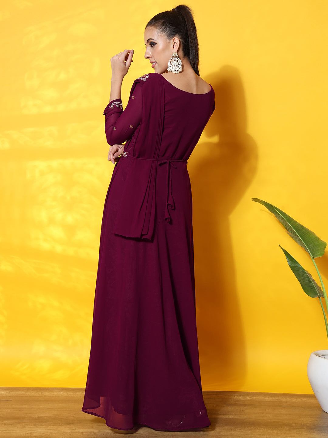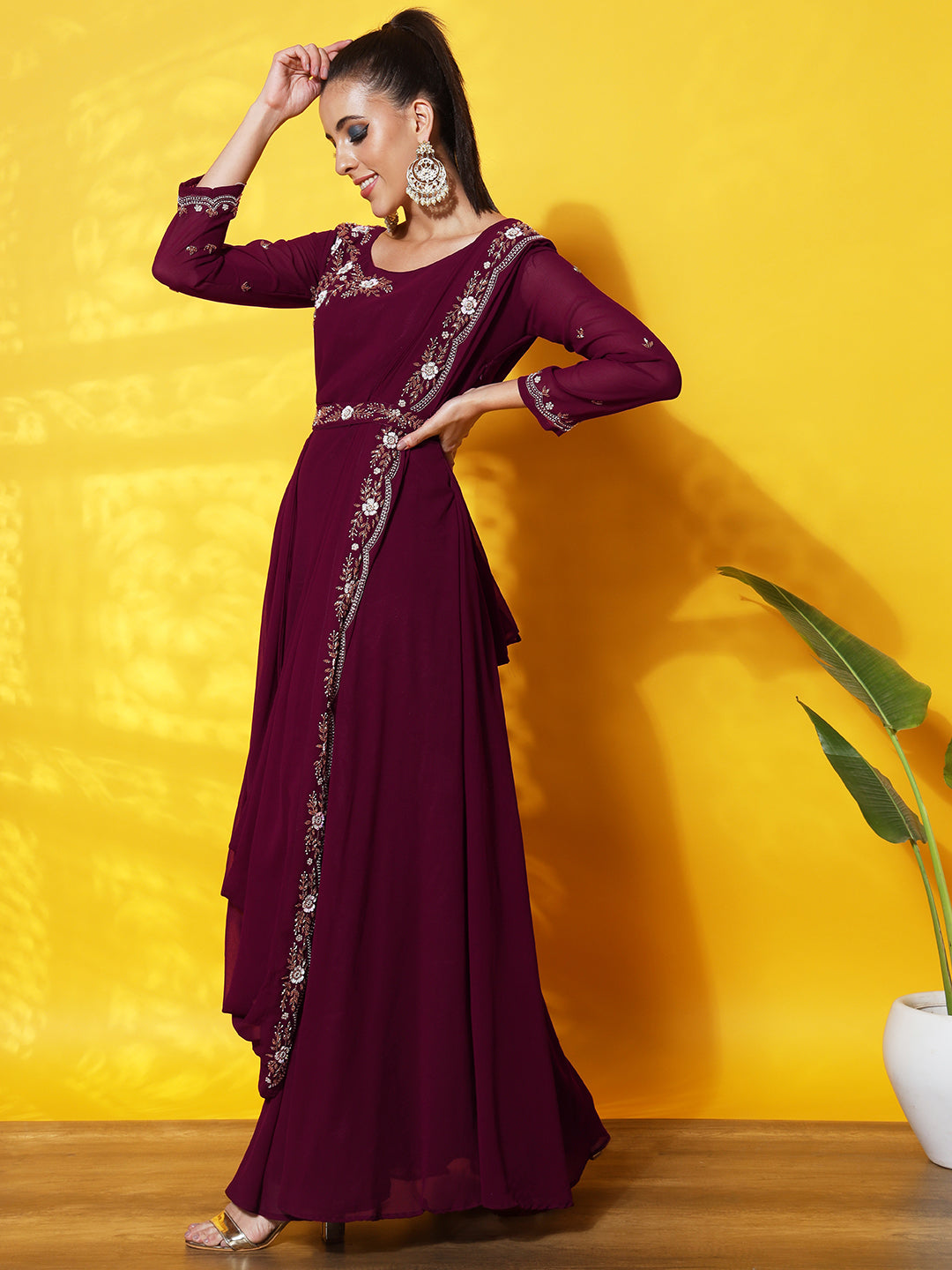 Pre Draped Saree Style Dress with Attached dupatta & Belt