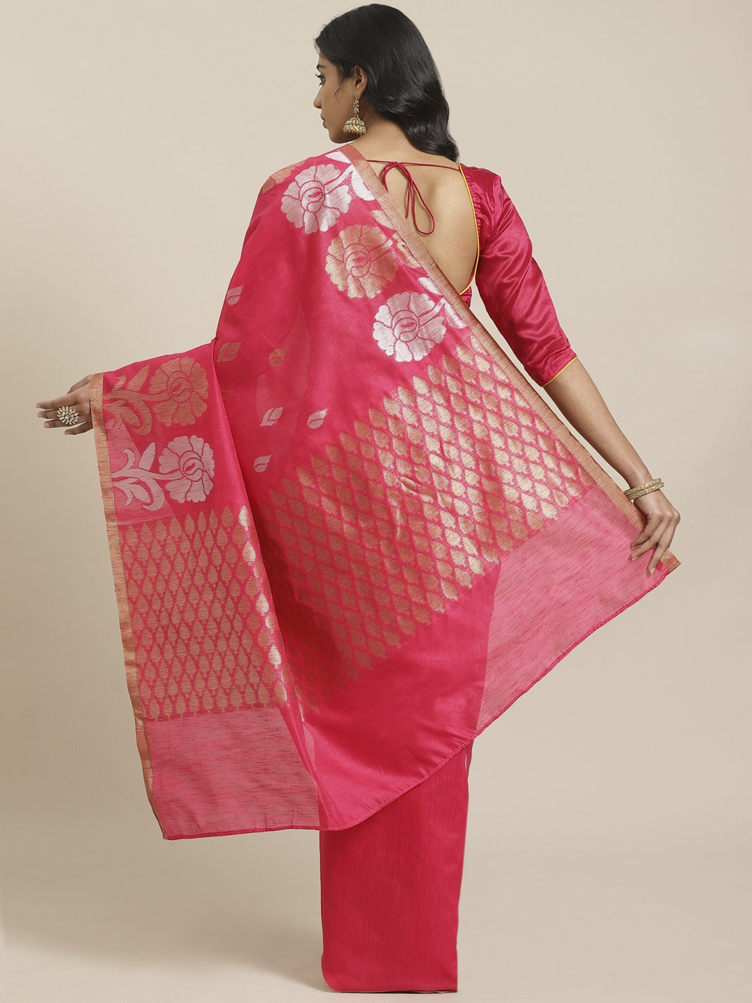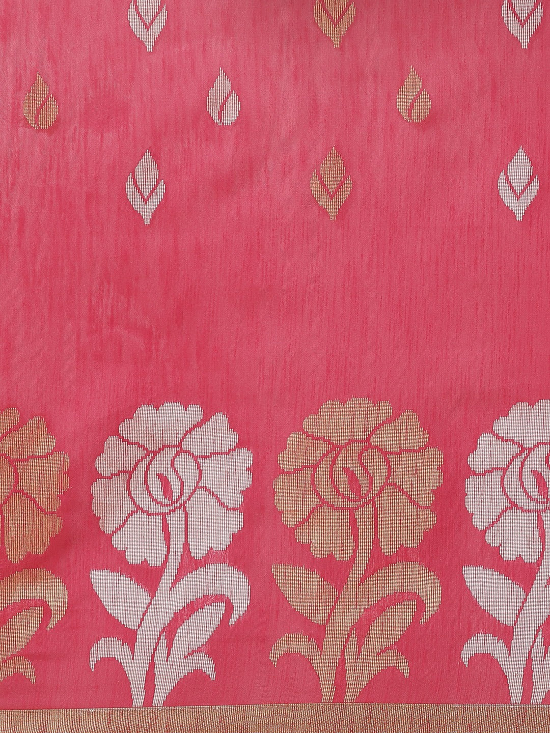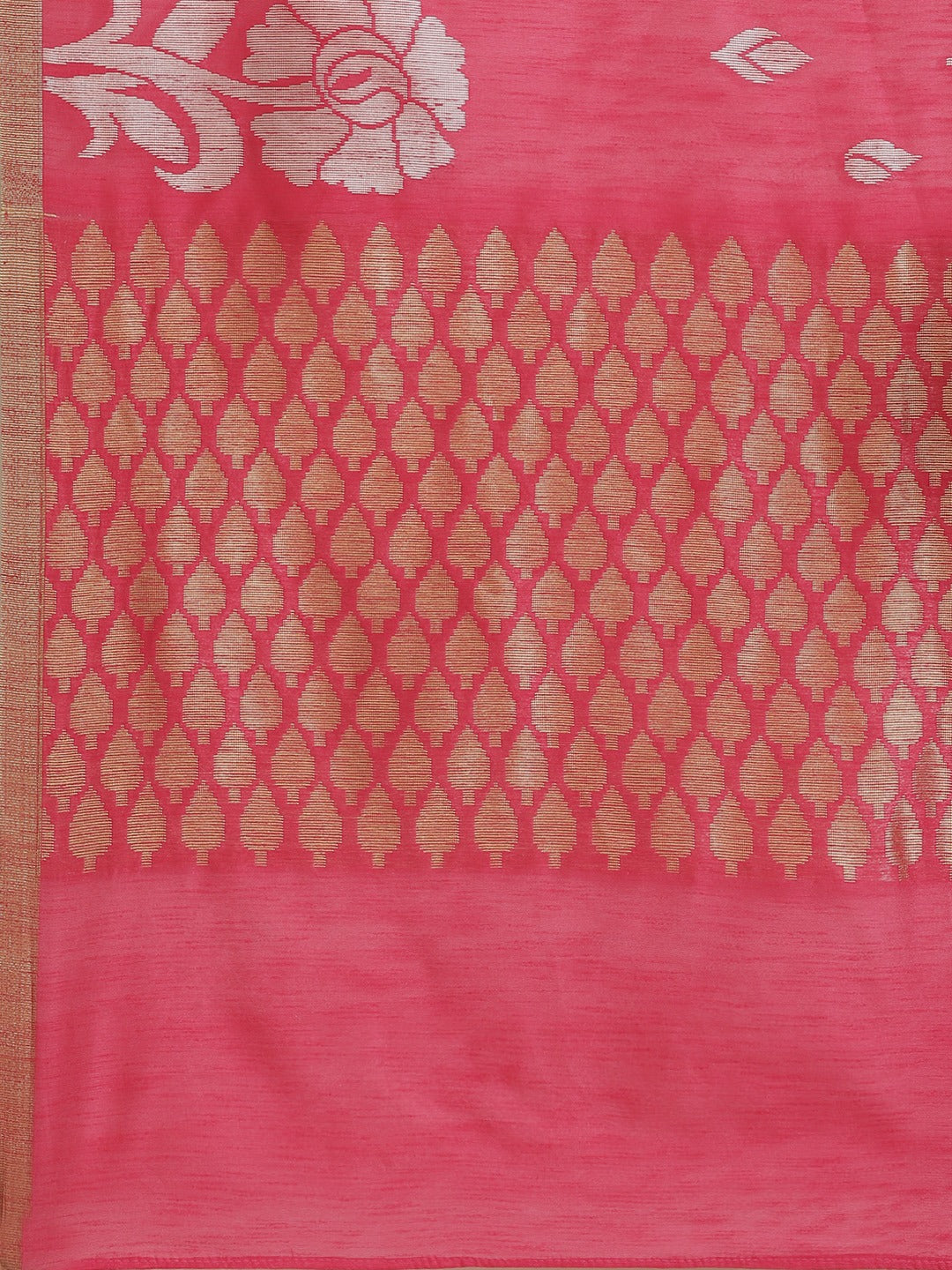 Banarasi Heritage Jute Silk Saree with Gold, Silver Floral Motifs And matching Gold Belt
