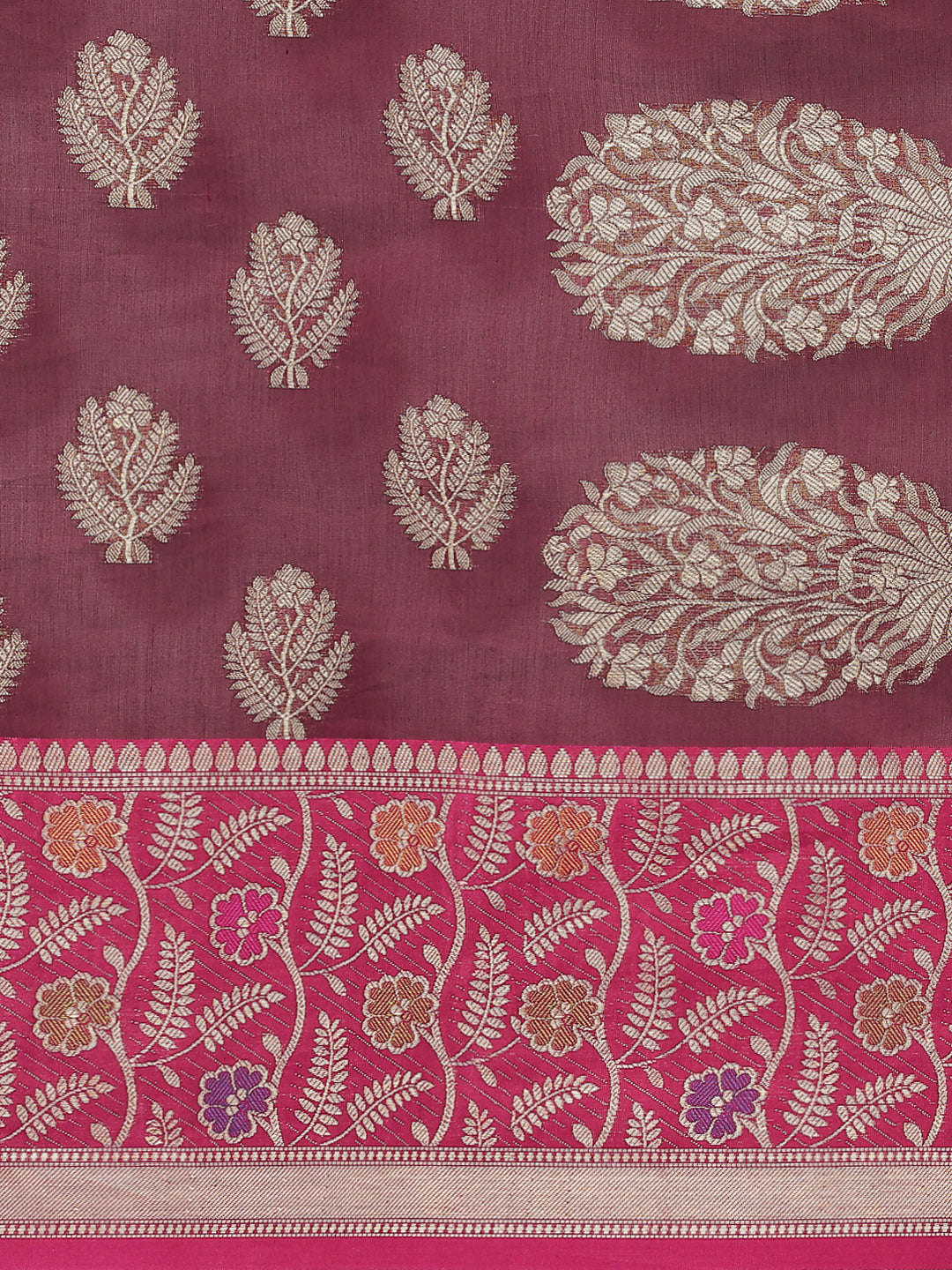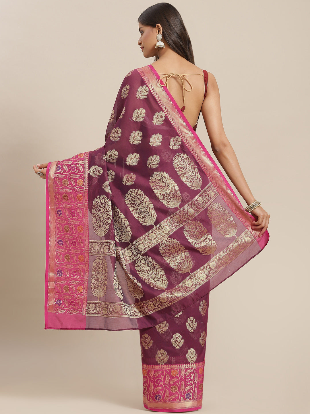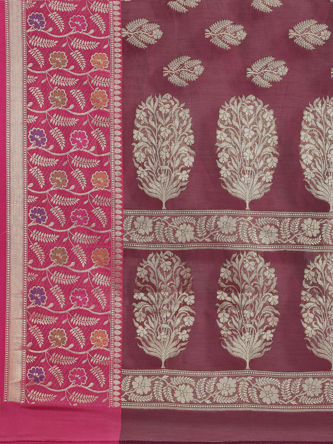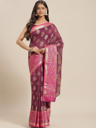 Burgundy Panelled Resham & Zari handloon weaving saree with meenakari