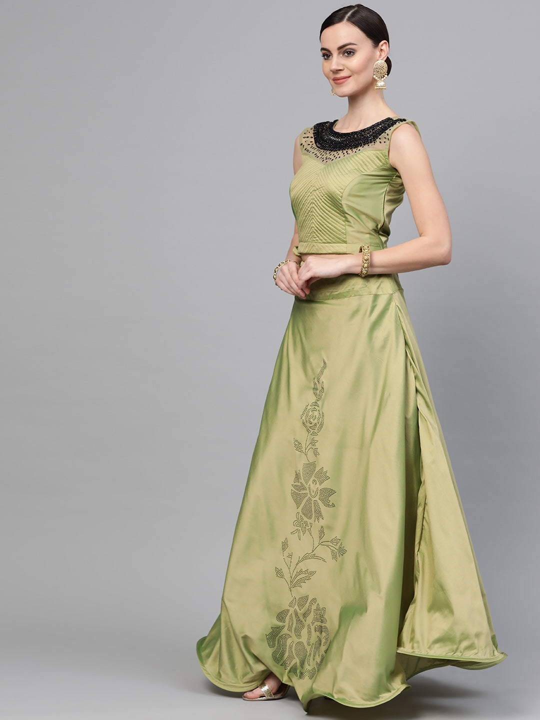 Embellished Lehenga Choli with Embossed Black Crystals and Pearls