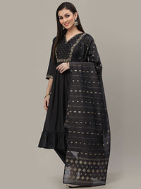 Steel Grey Embellished Ruffled Flare Kurta Pant Set with Dupatta